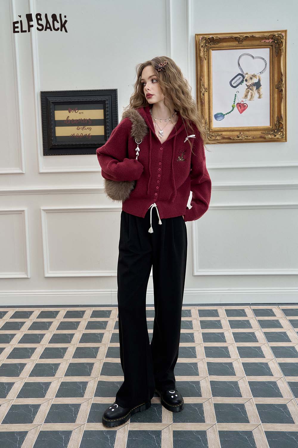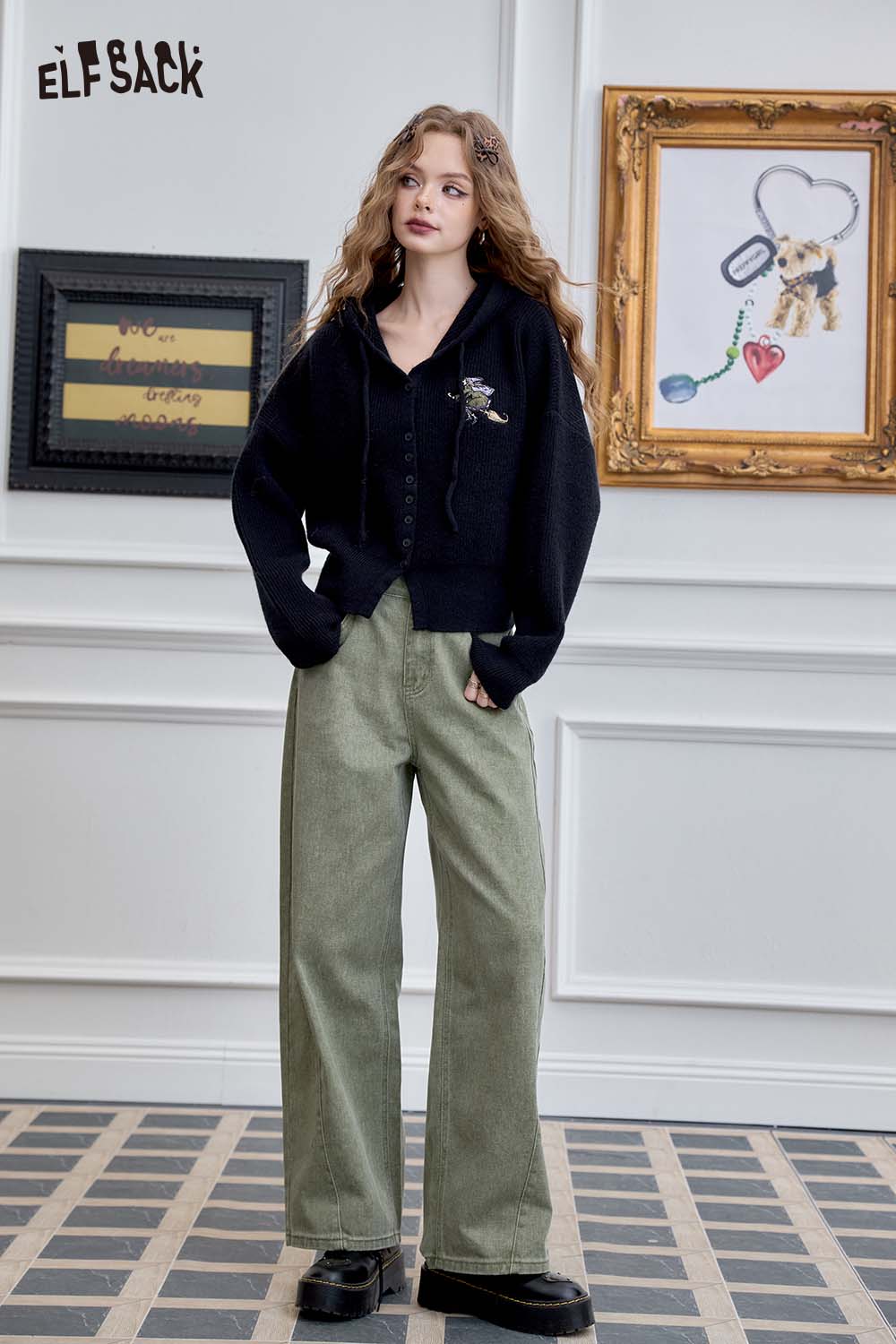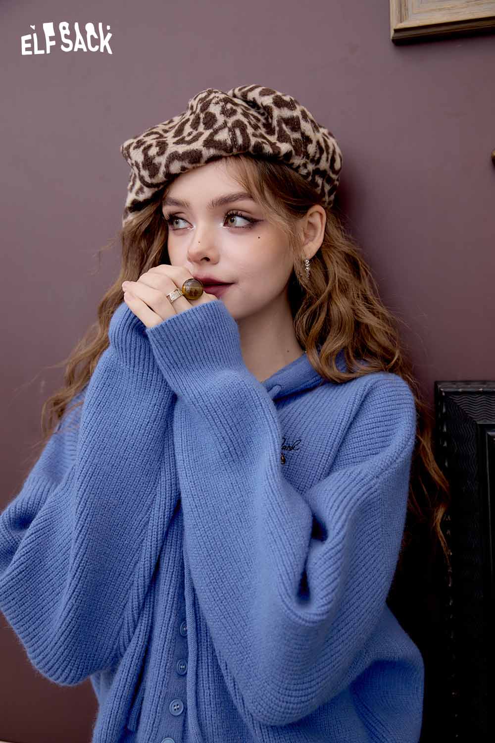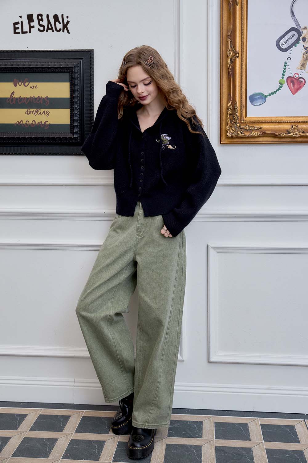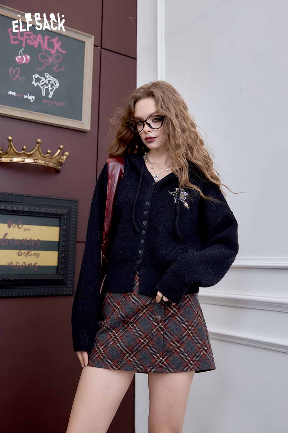 Preppy Soft Embroidery Cropped Hooded Knit Cardigan