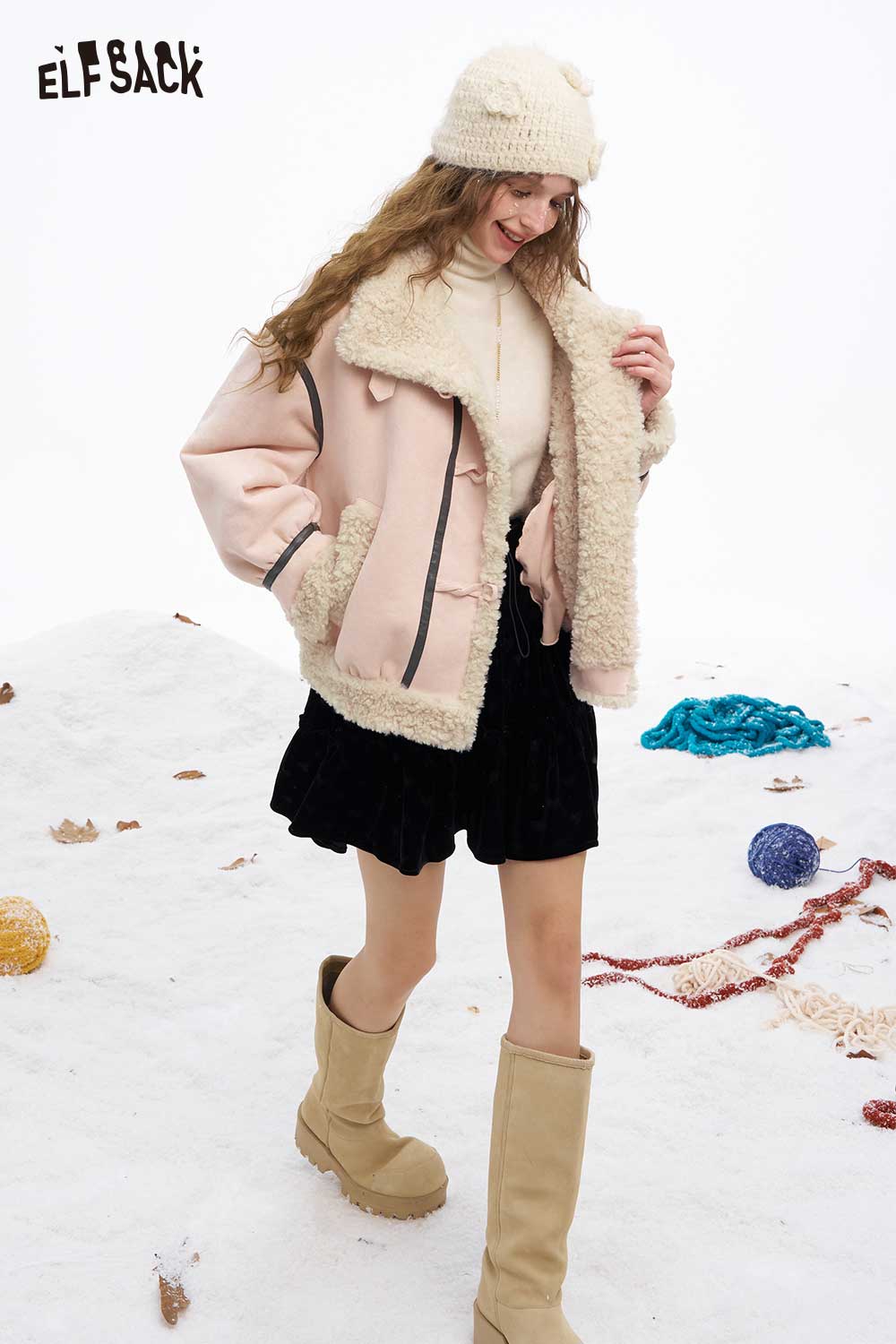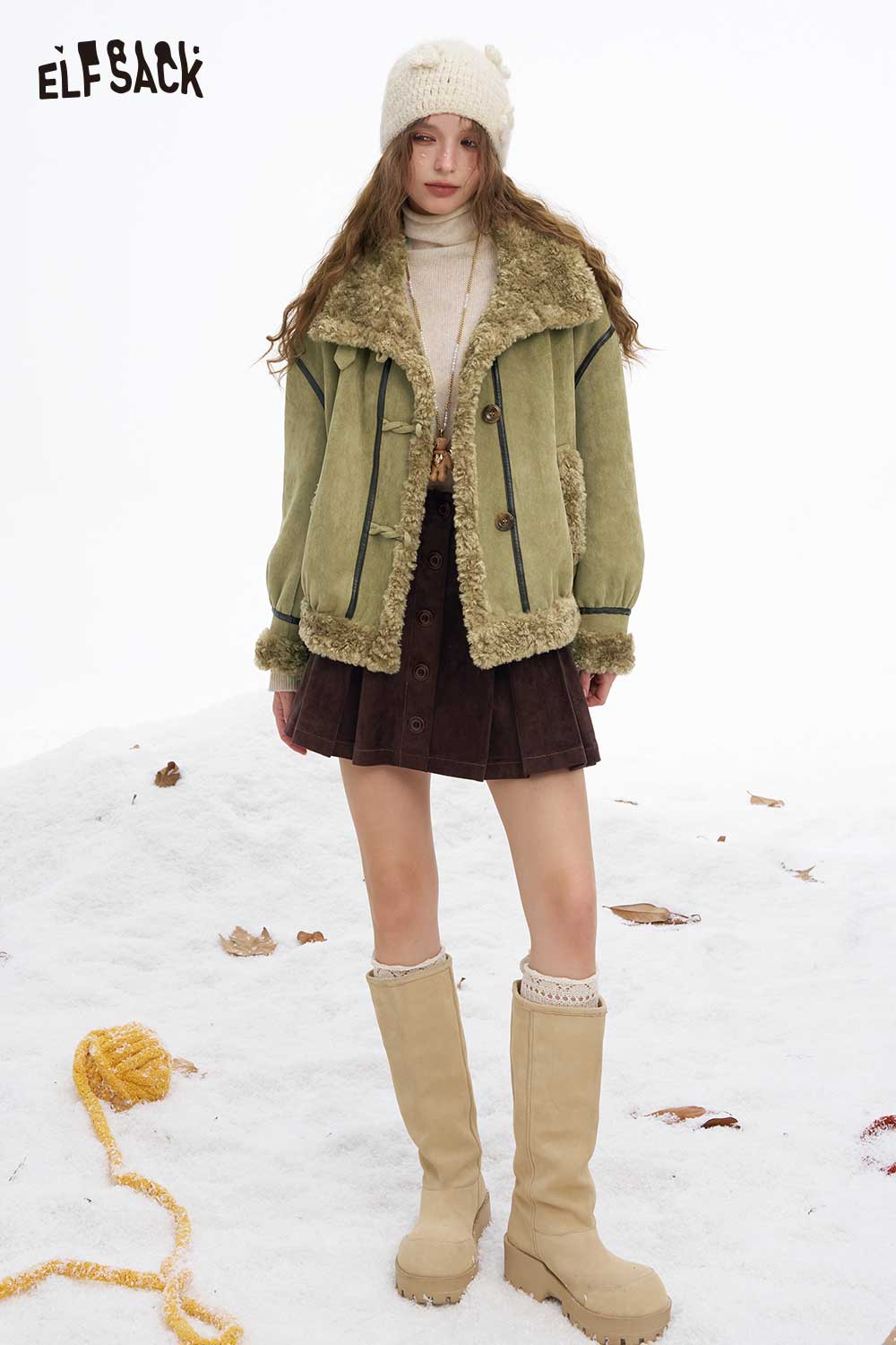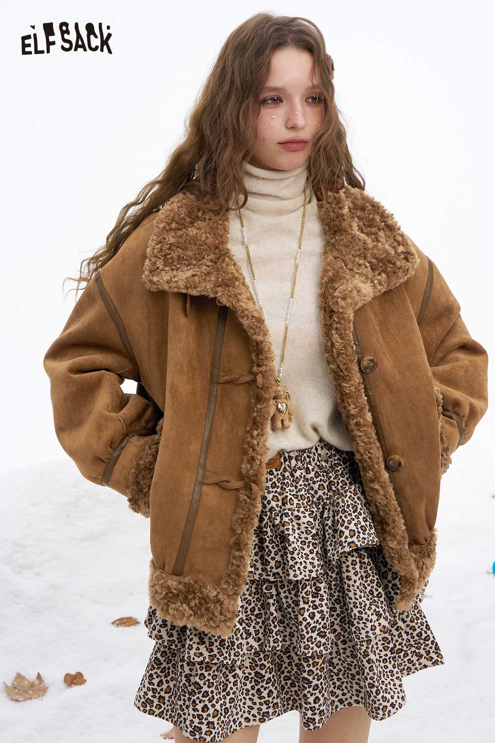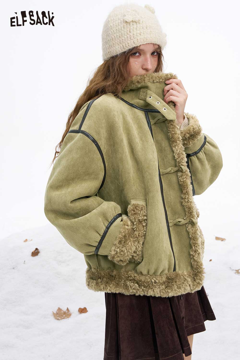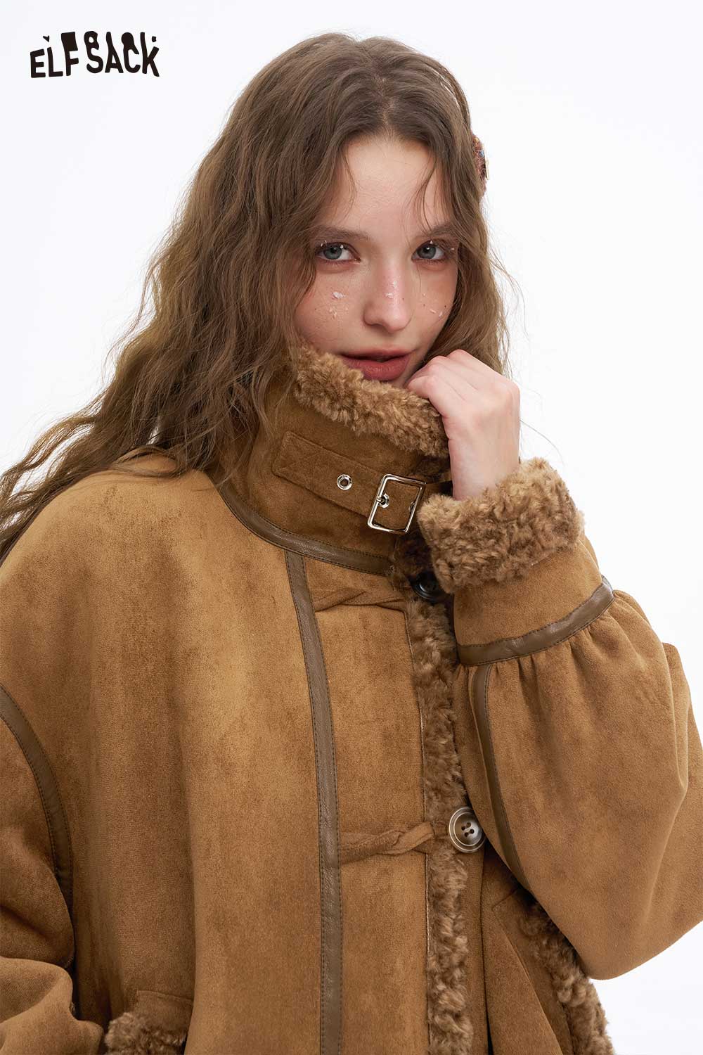 Soft Loose Plush Convertible Lapel High Neck Wool Blend Coat