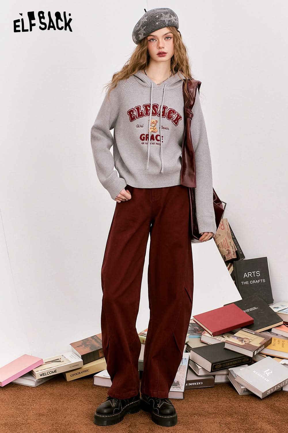 Loose retro trendy red wide leg jeans
