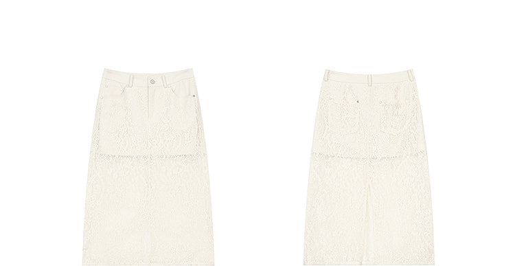 White Lace Patchwork Long Skirts Women Elegant High Waist Slim Skirts