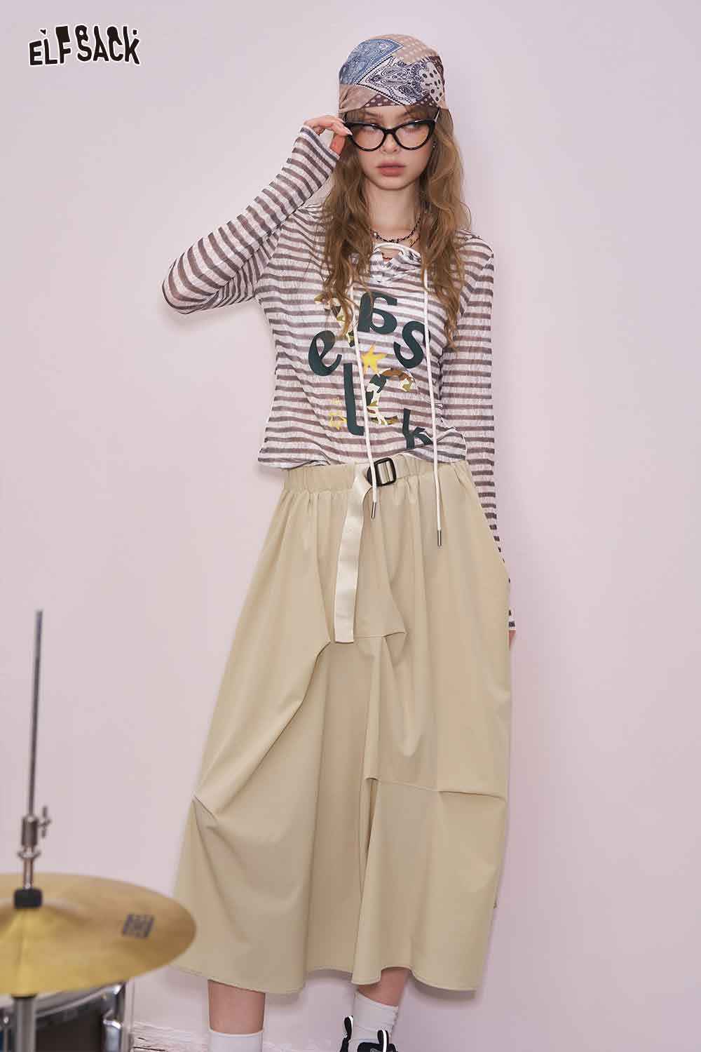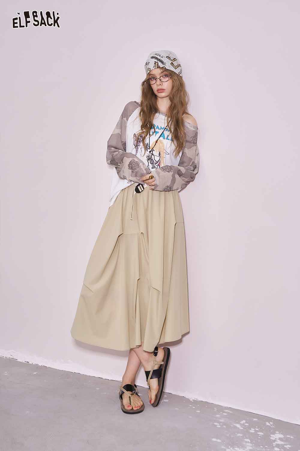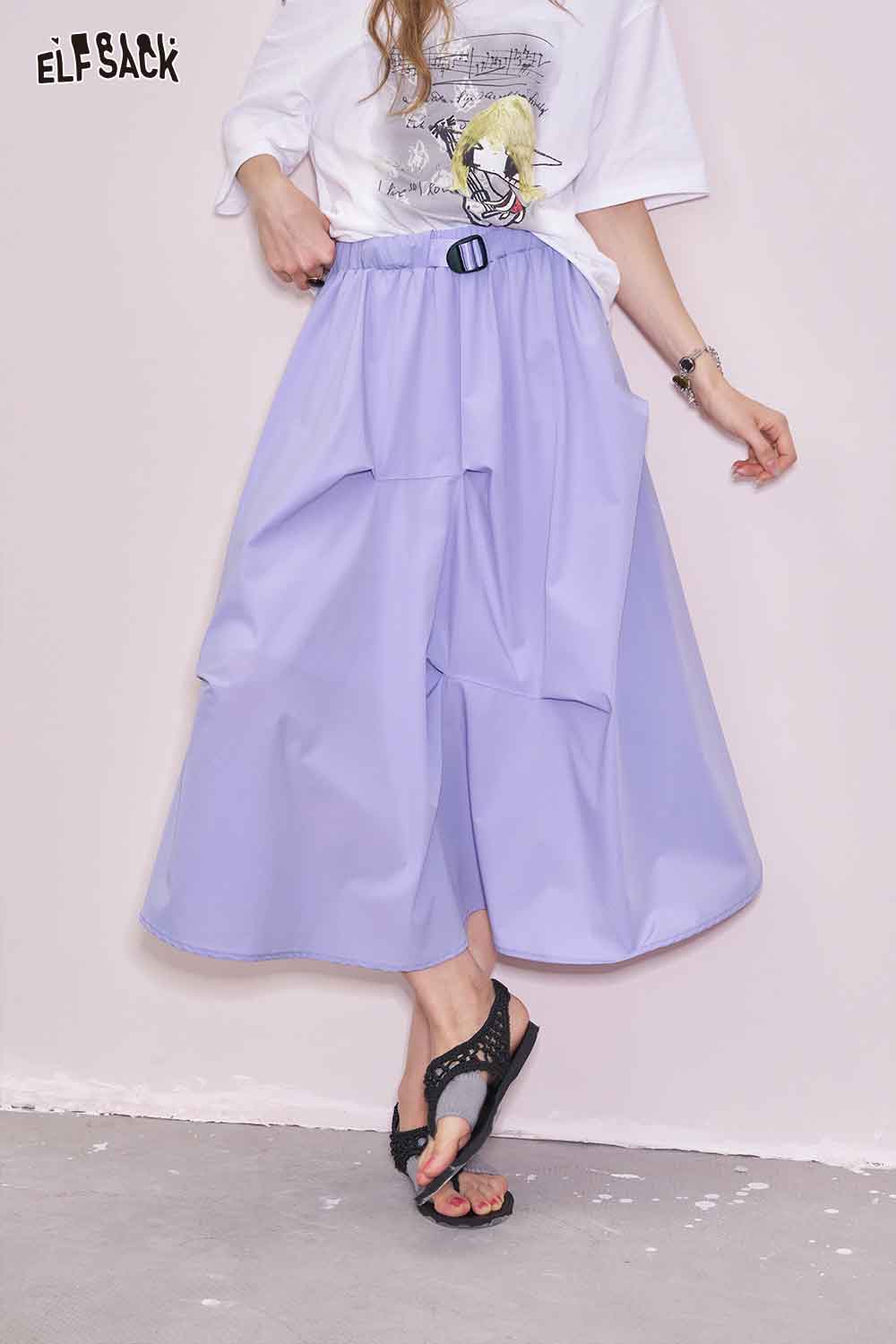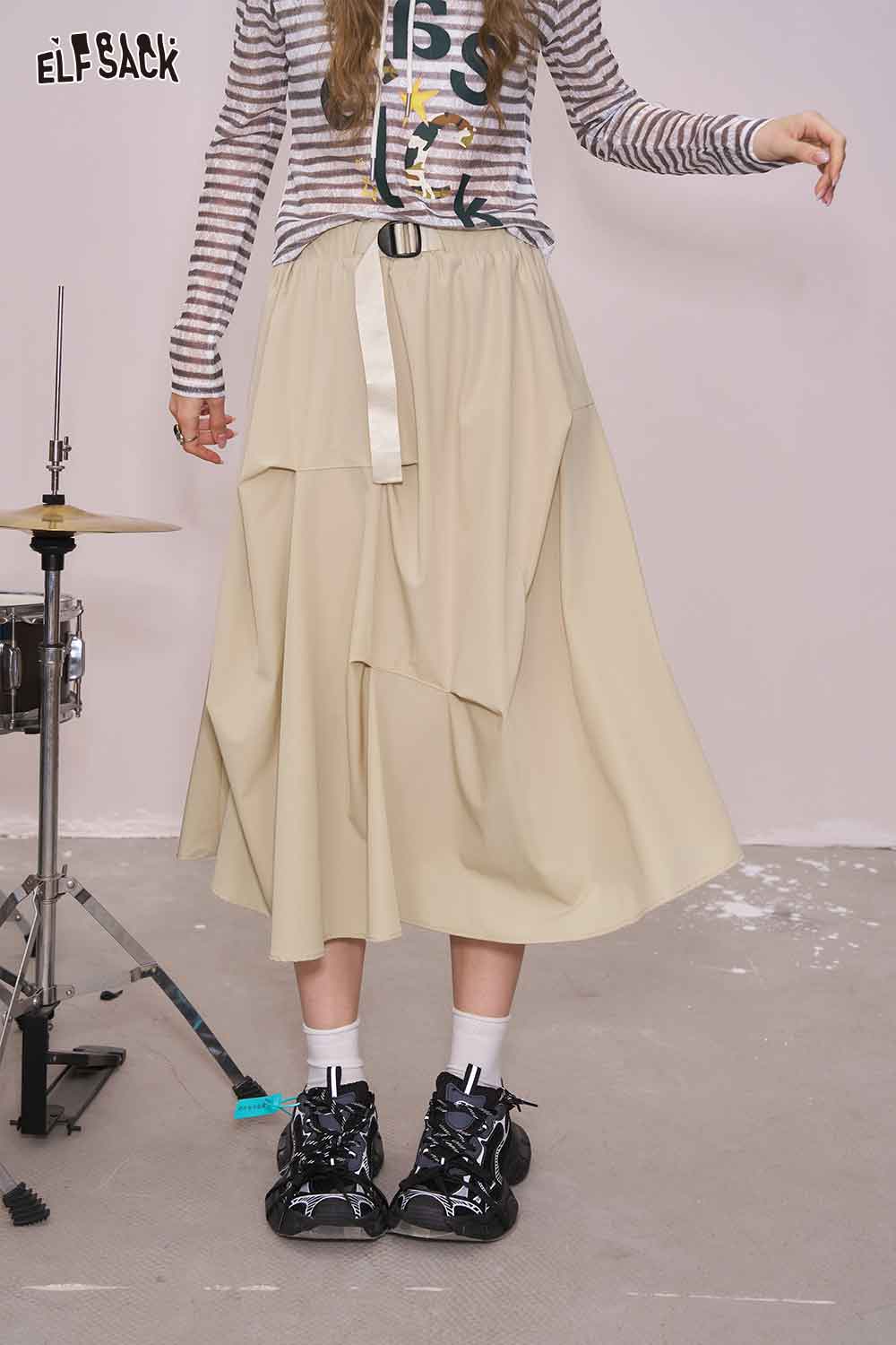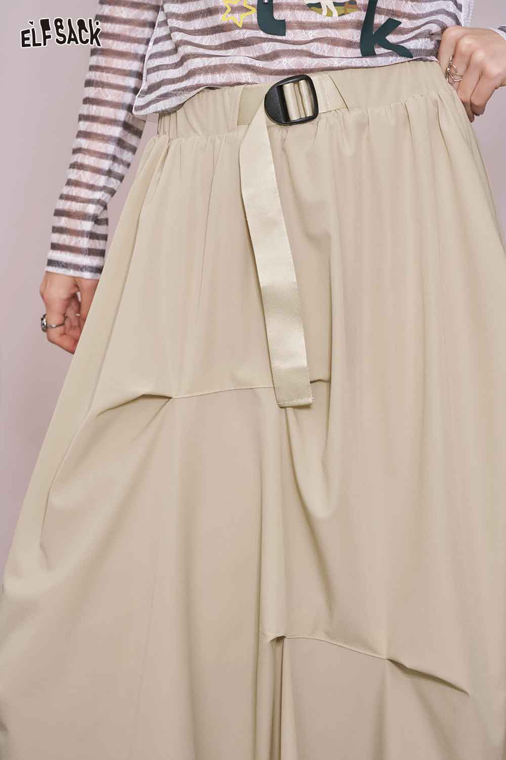 Light Irregular Gather Outdoor Style Solid Long Skirt