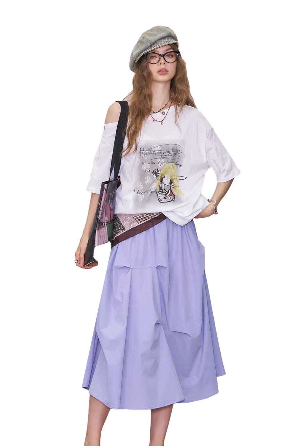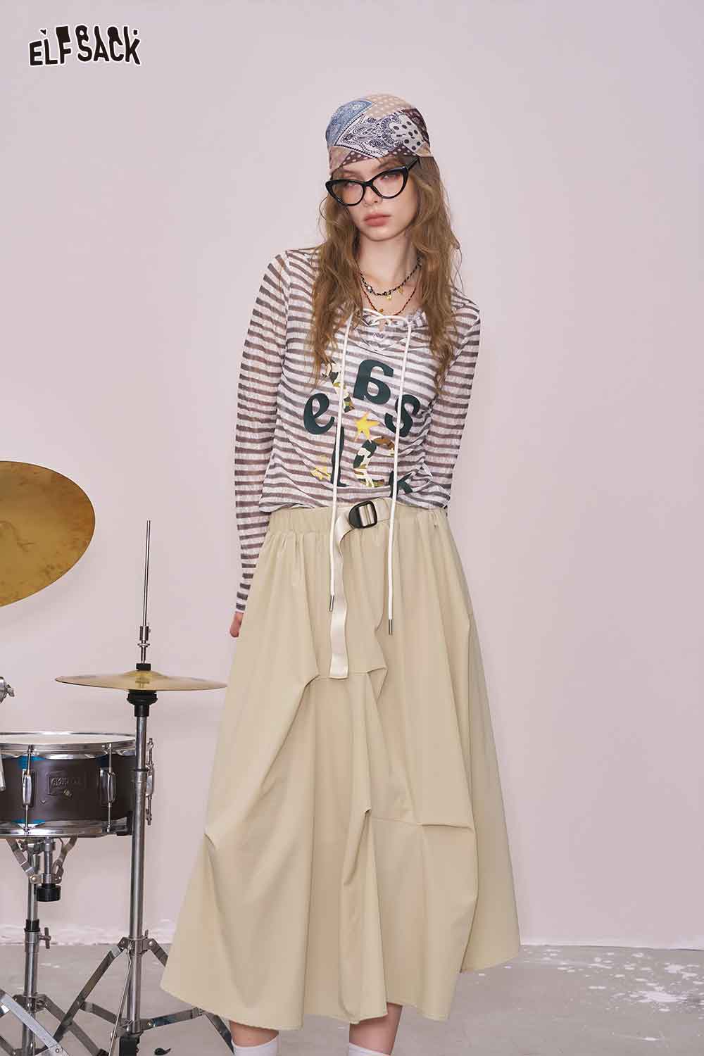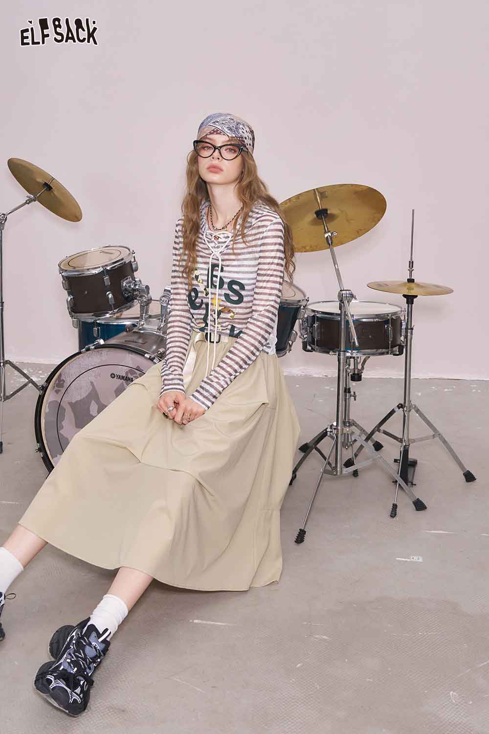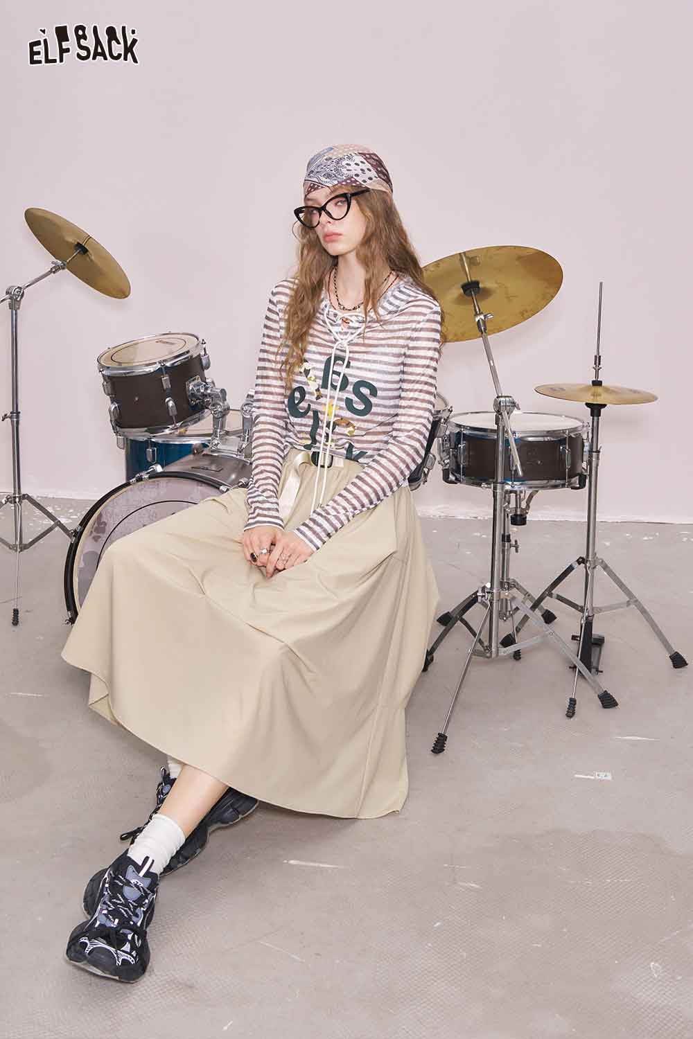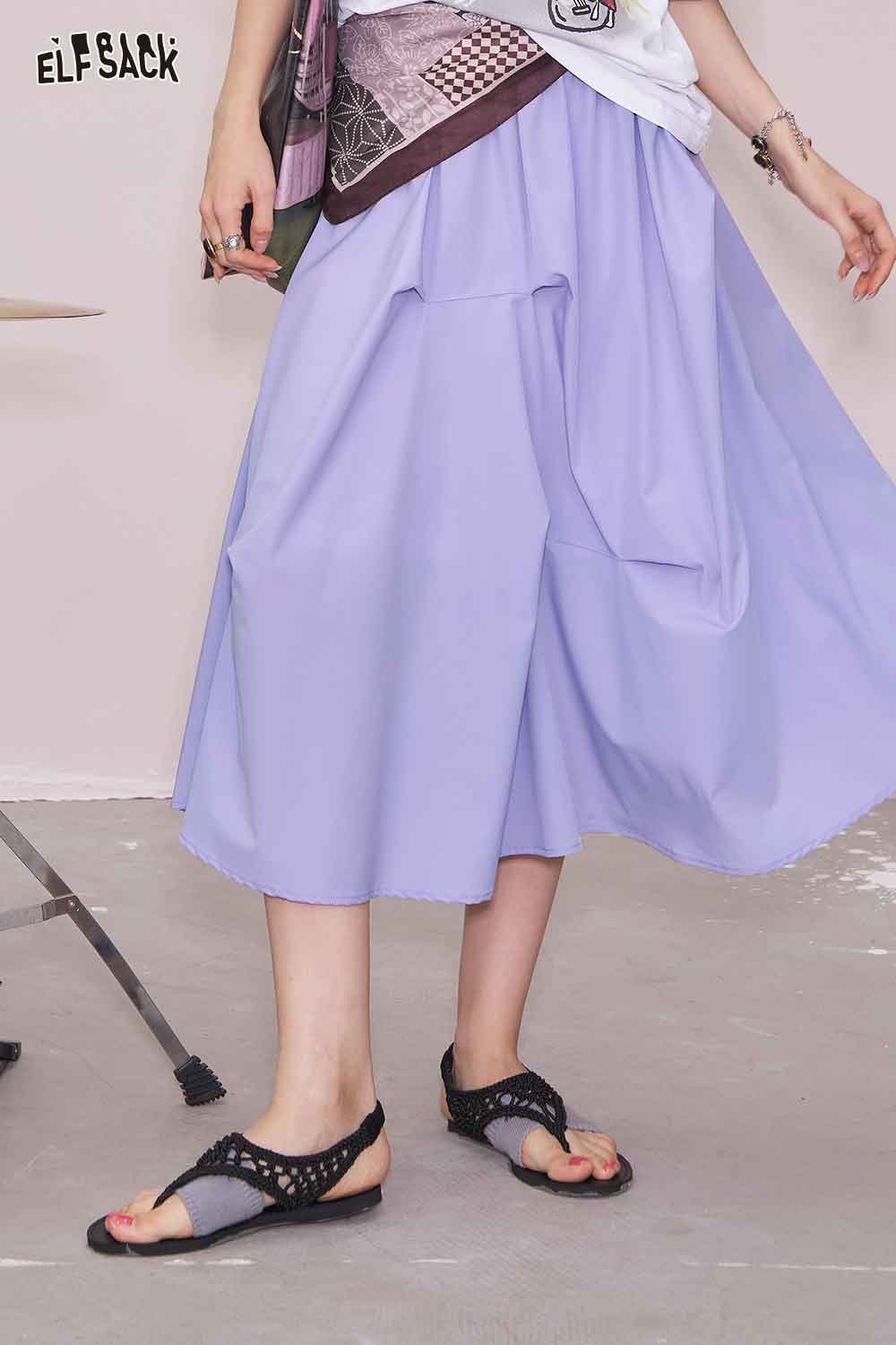 Light Irregular Gather Outdoor Style Solid Long Skirt