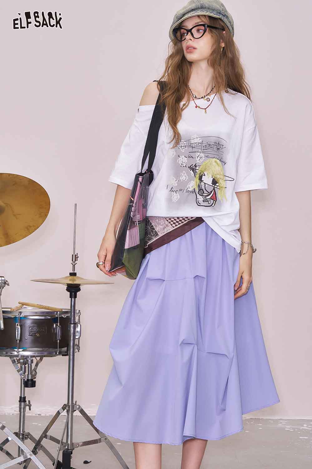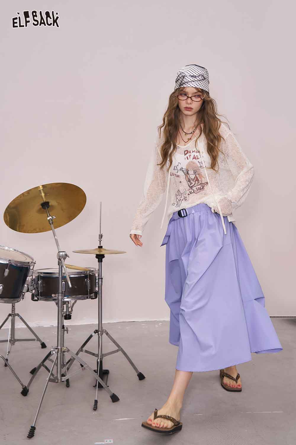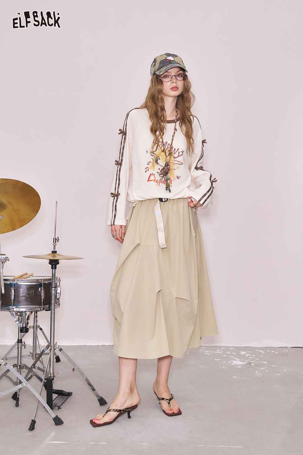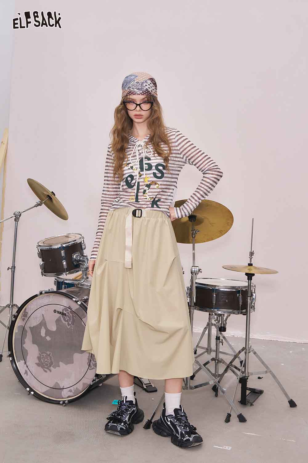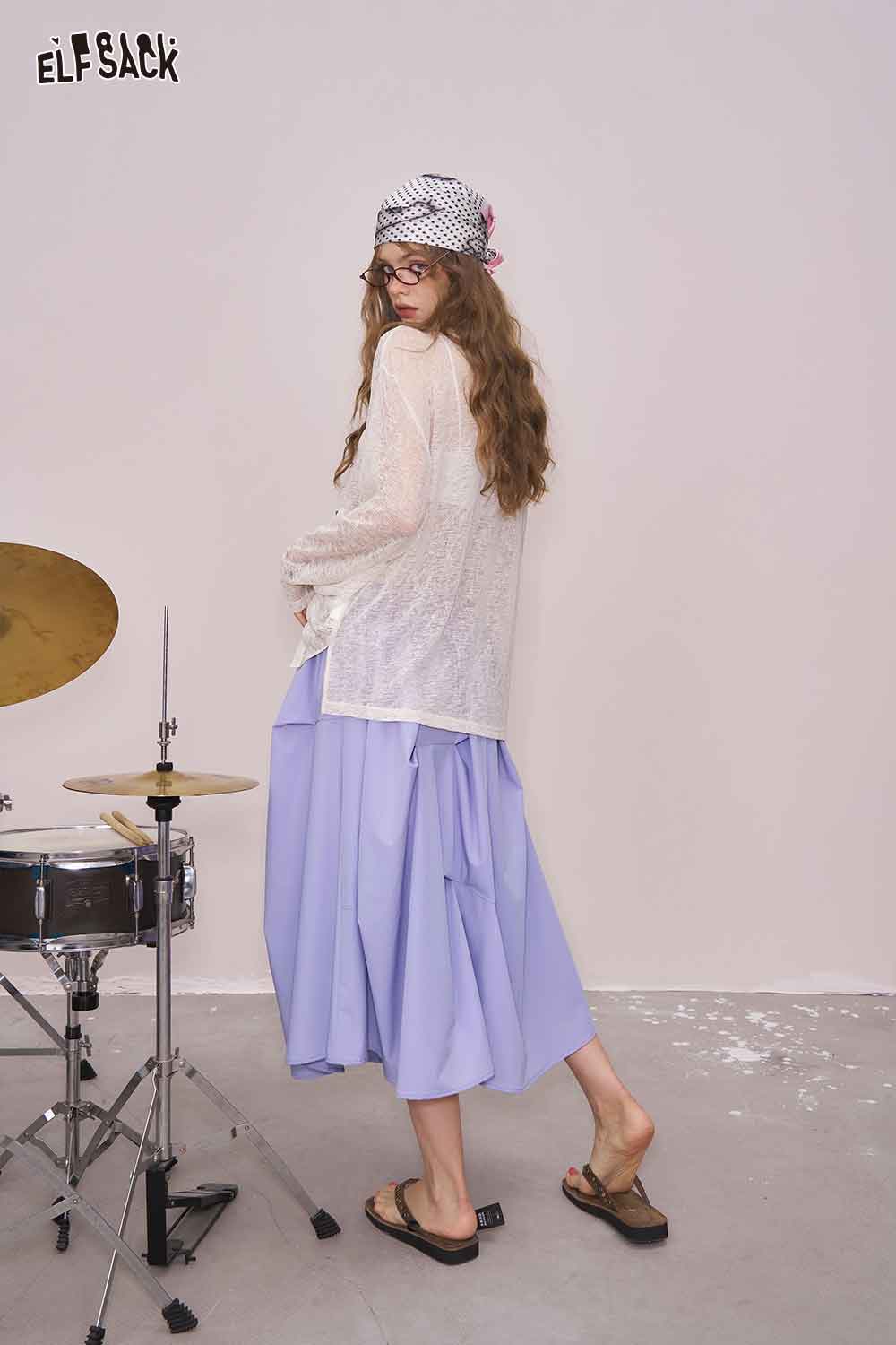Light Irregular Gather Outdoor Style Solid Long Skirt