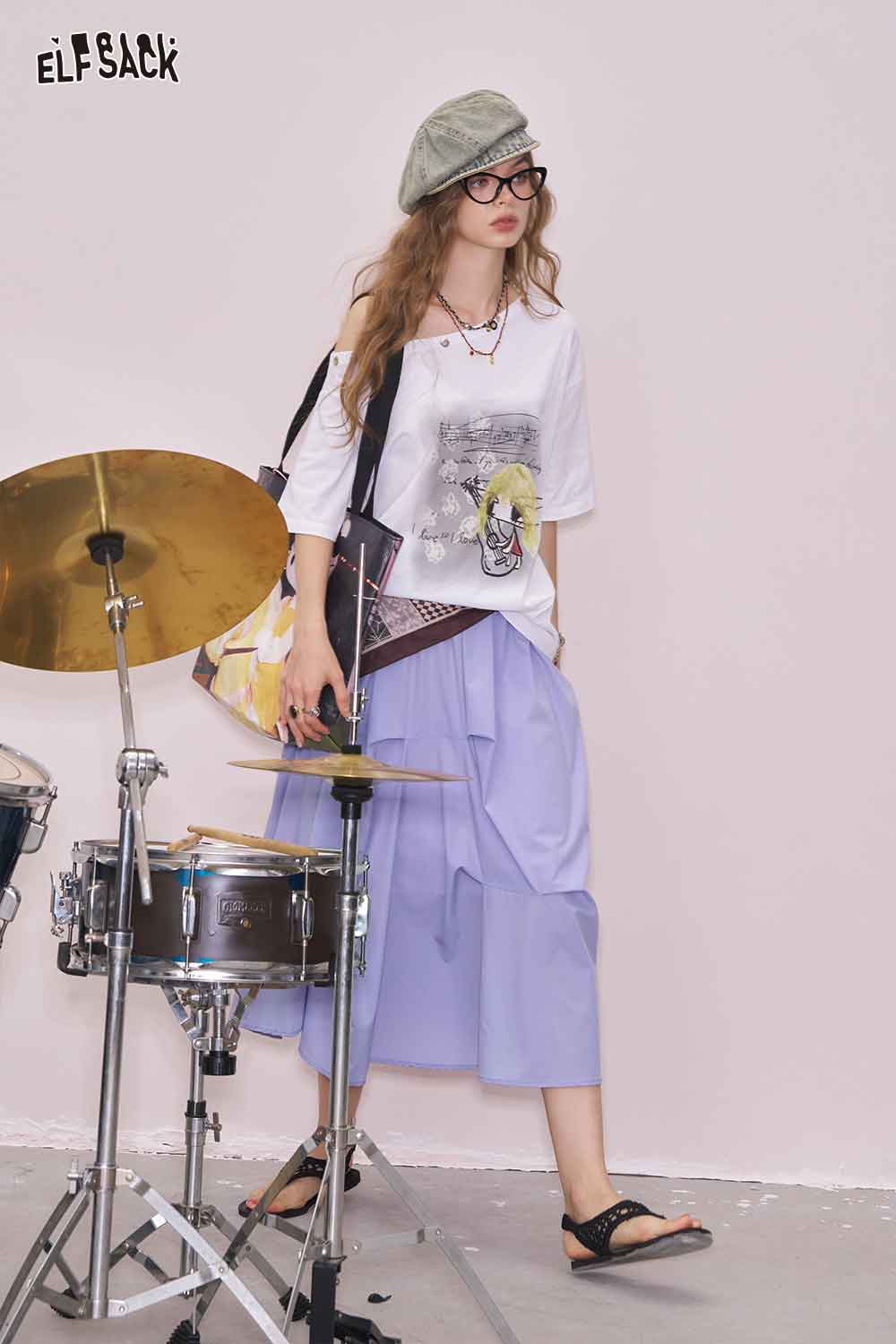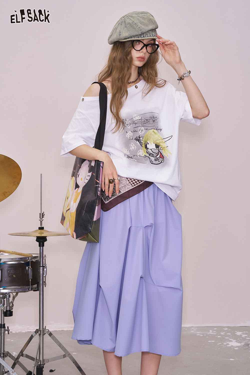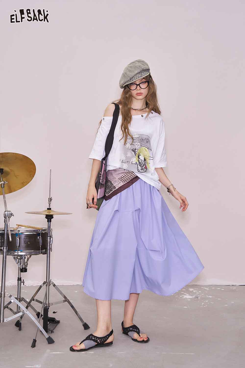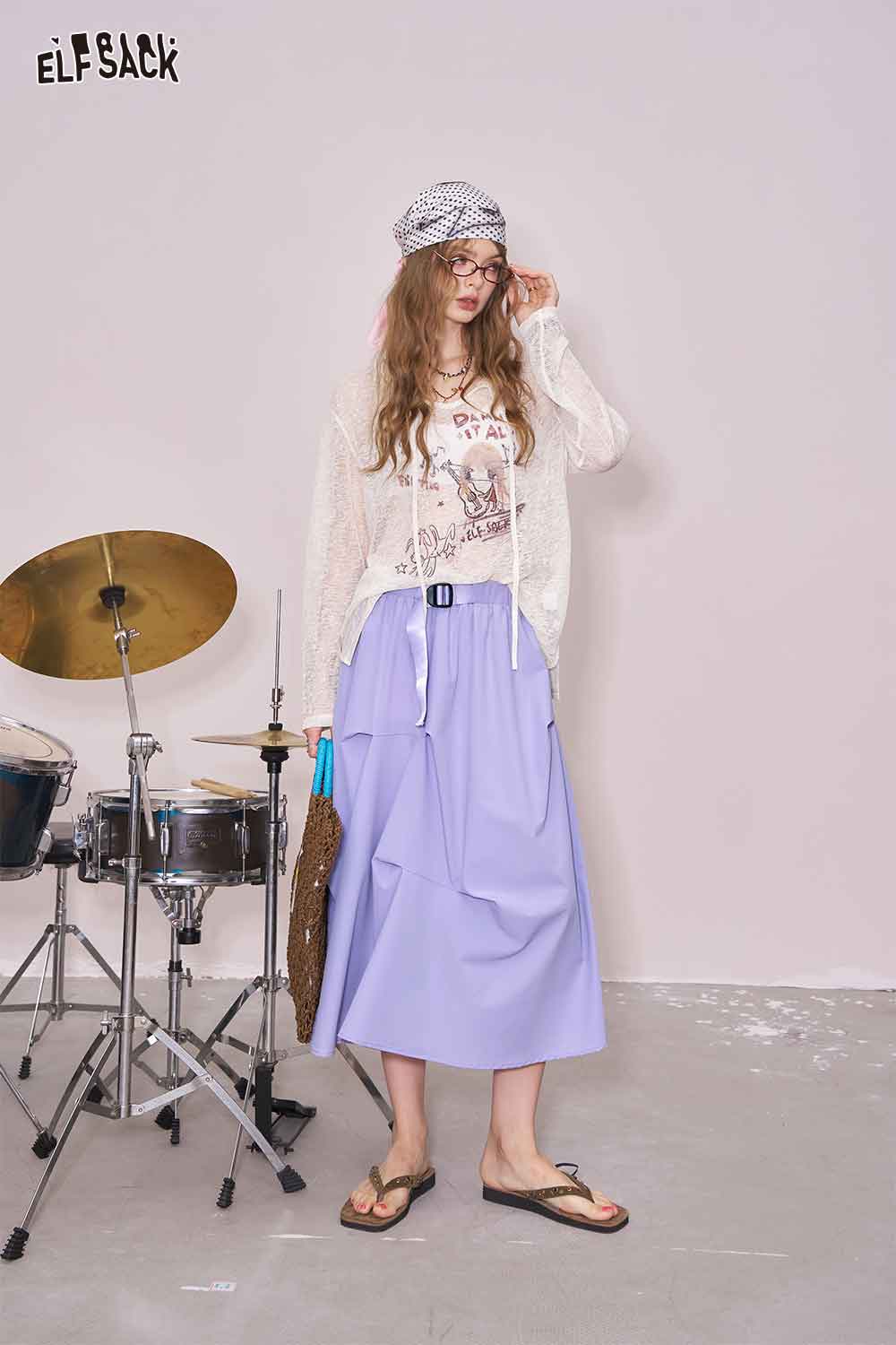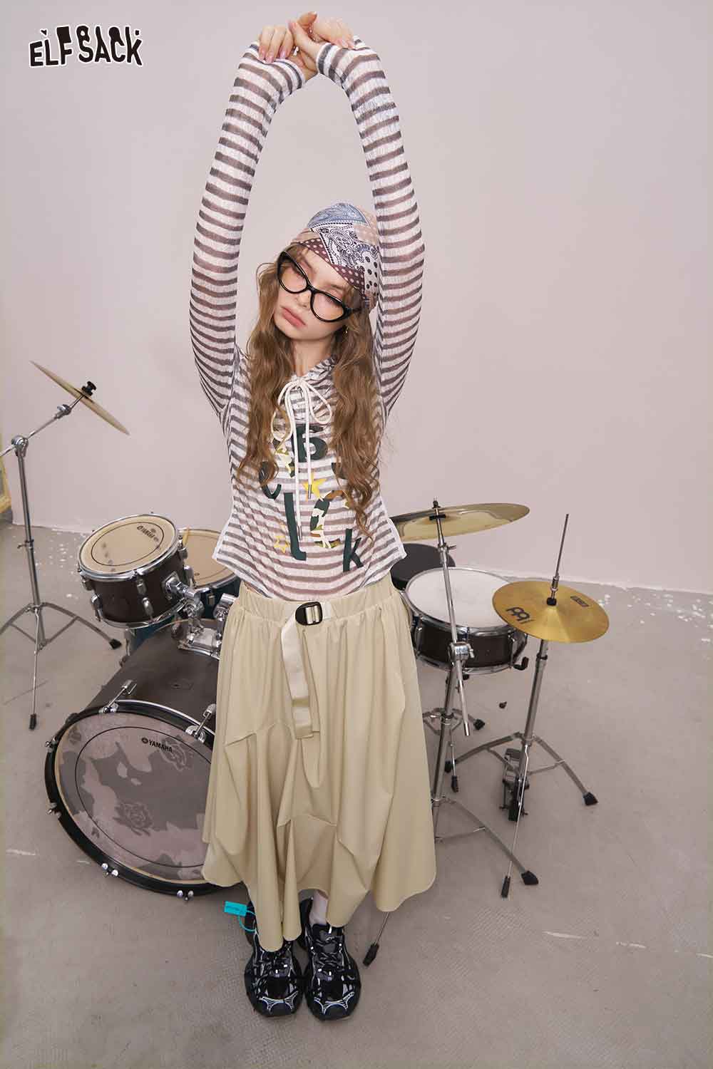 Light Irregular Gather Outdoor Style Solid Long Skirt