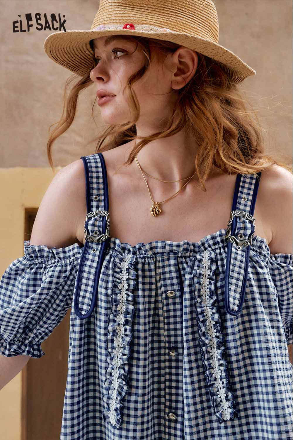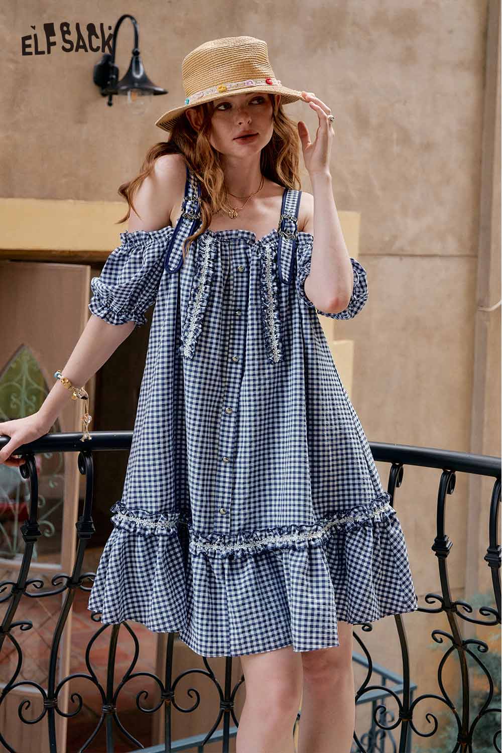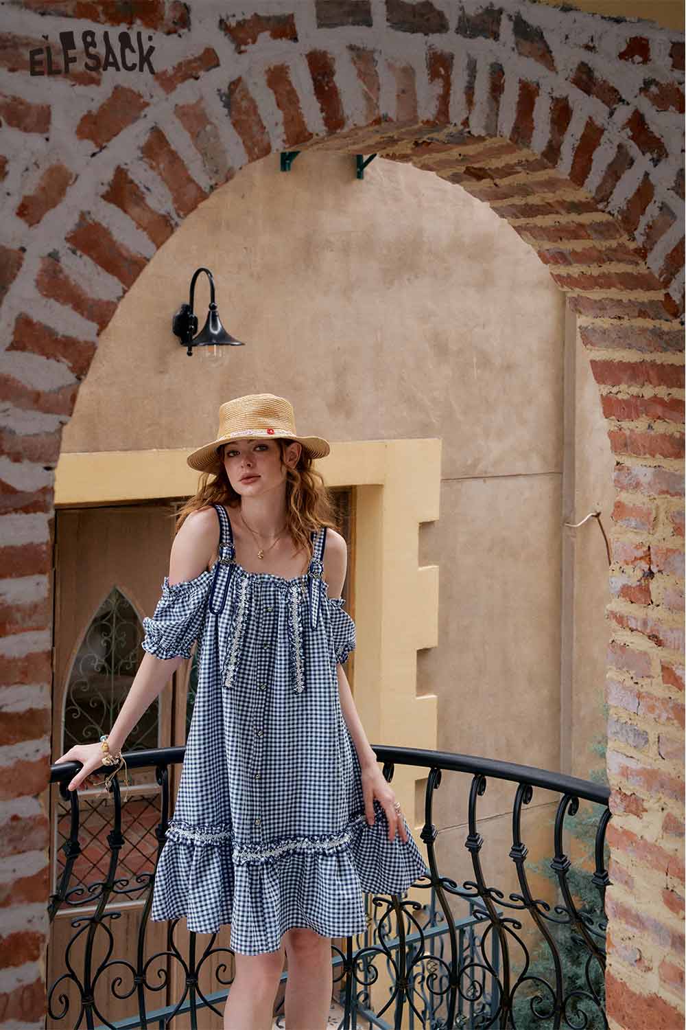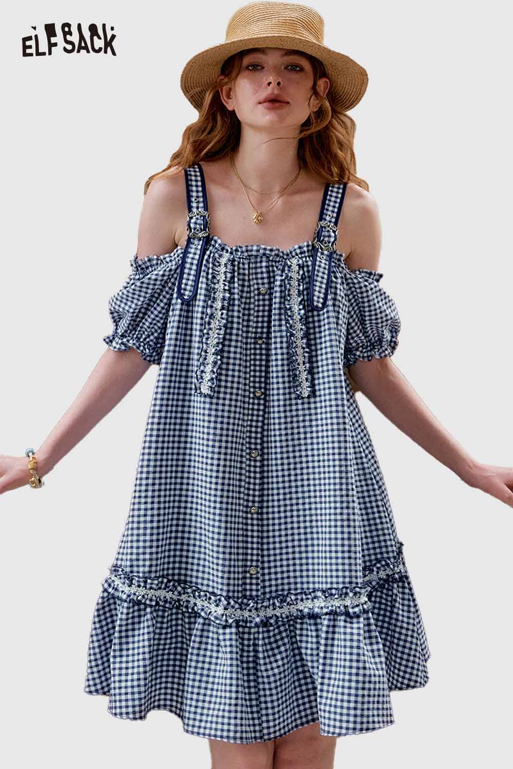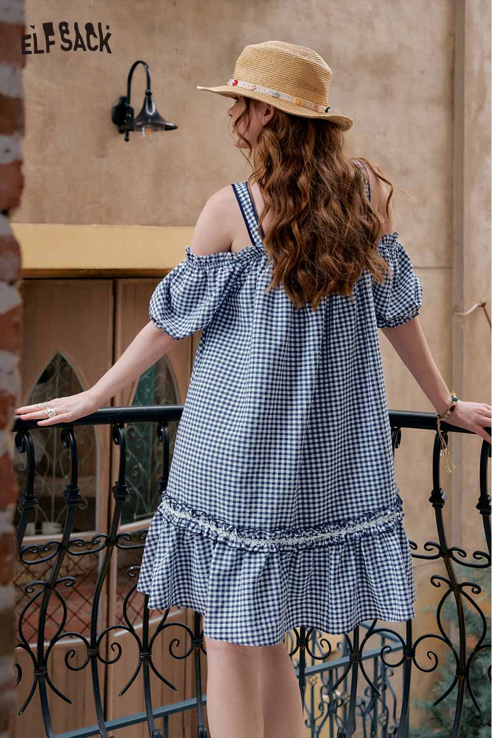 Cute Plaid Off Shoulder Slip Design Sweet Dress