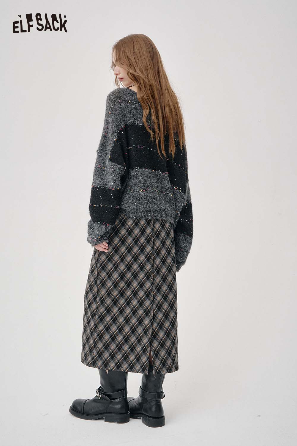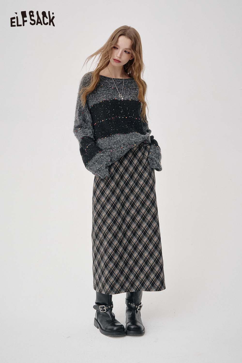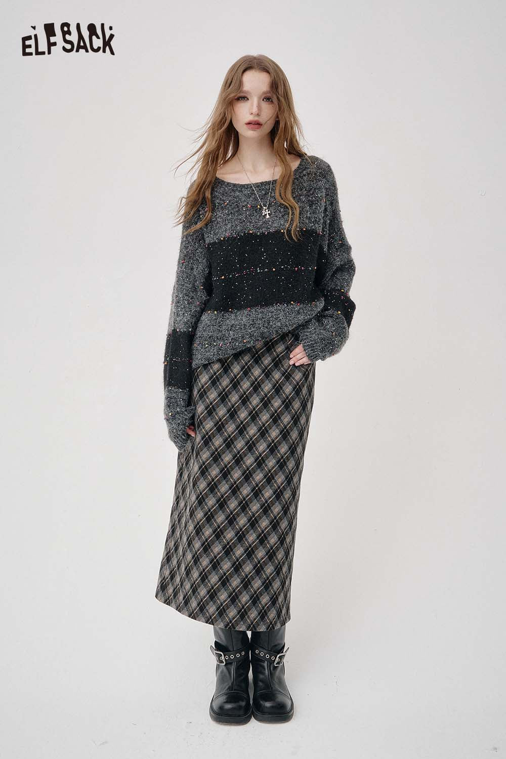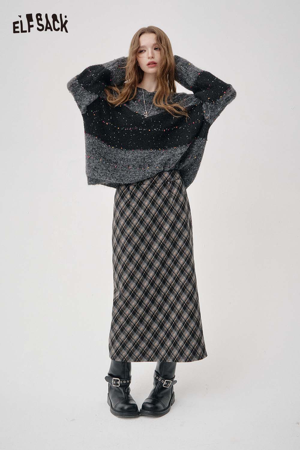 Color Block Diamond Pattern High Waist Midi Straight Half Skirt