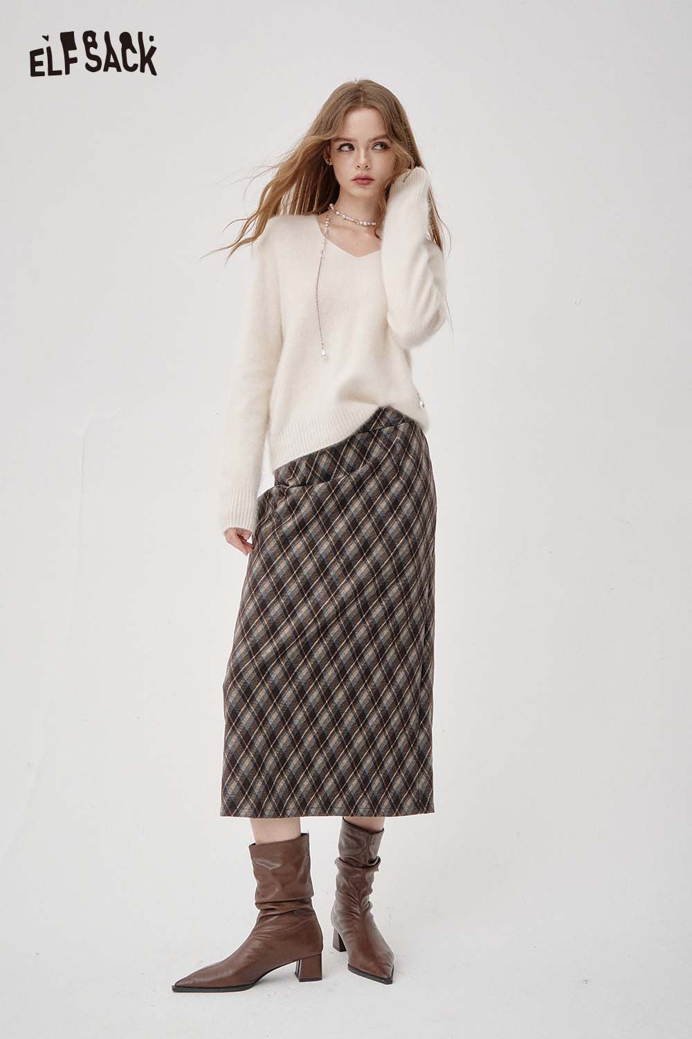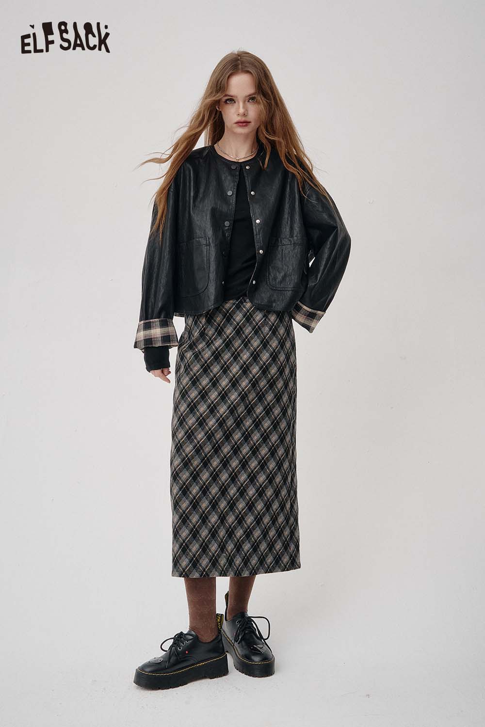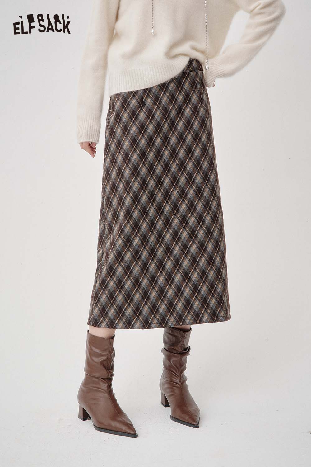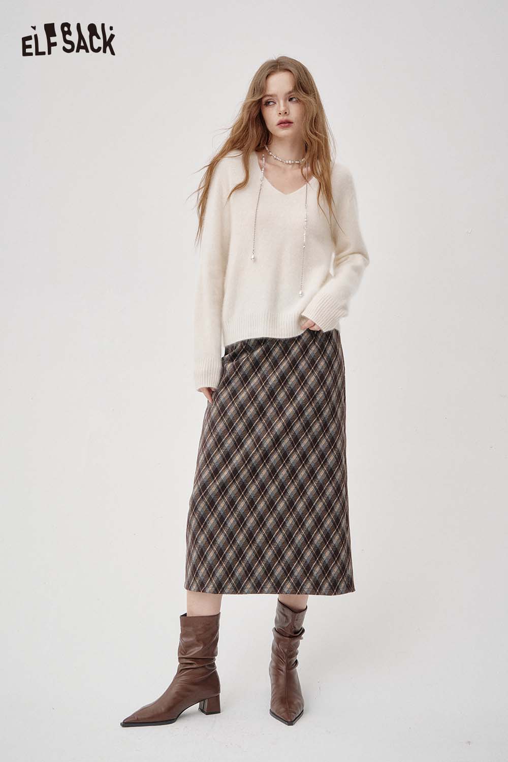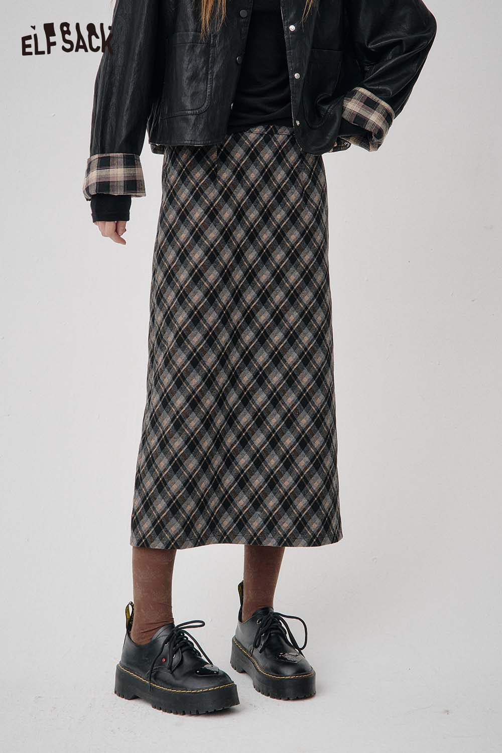 Color Block Diamond Pattern High Waist Midi Straight Half Skirt