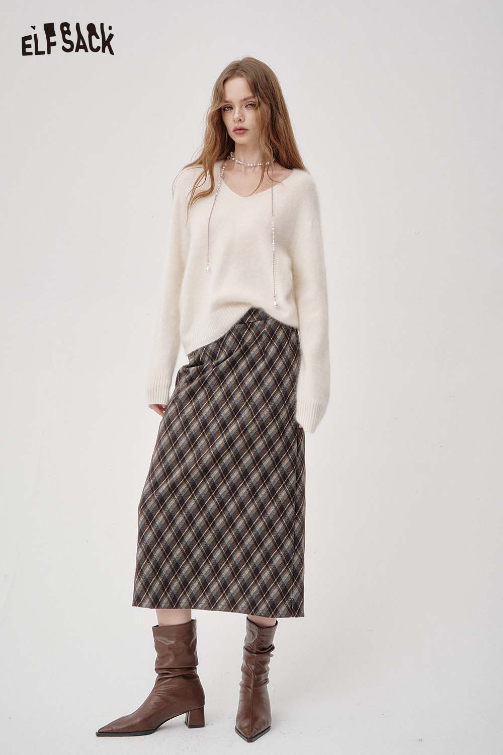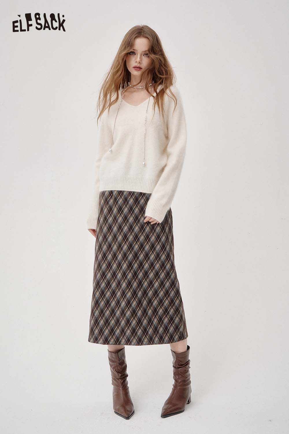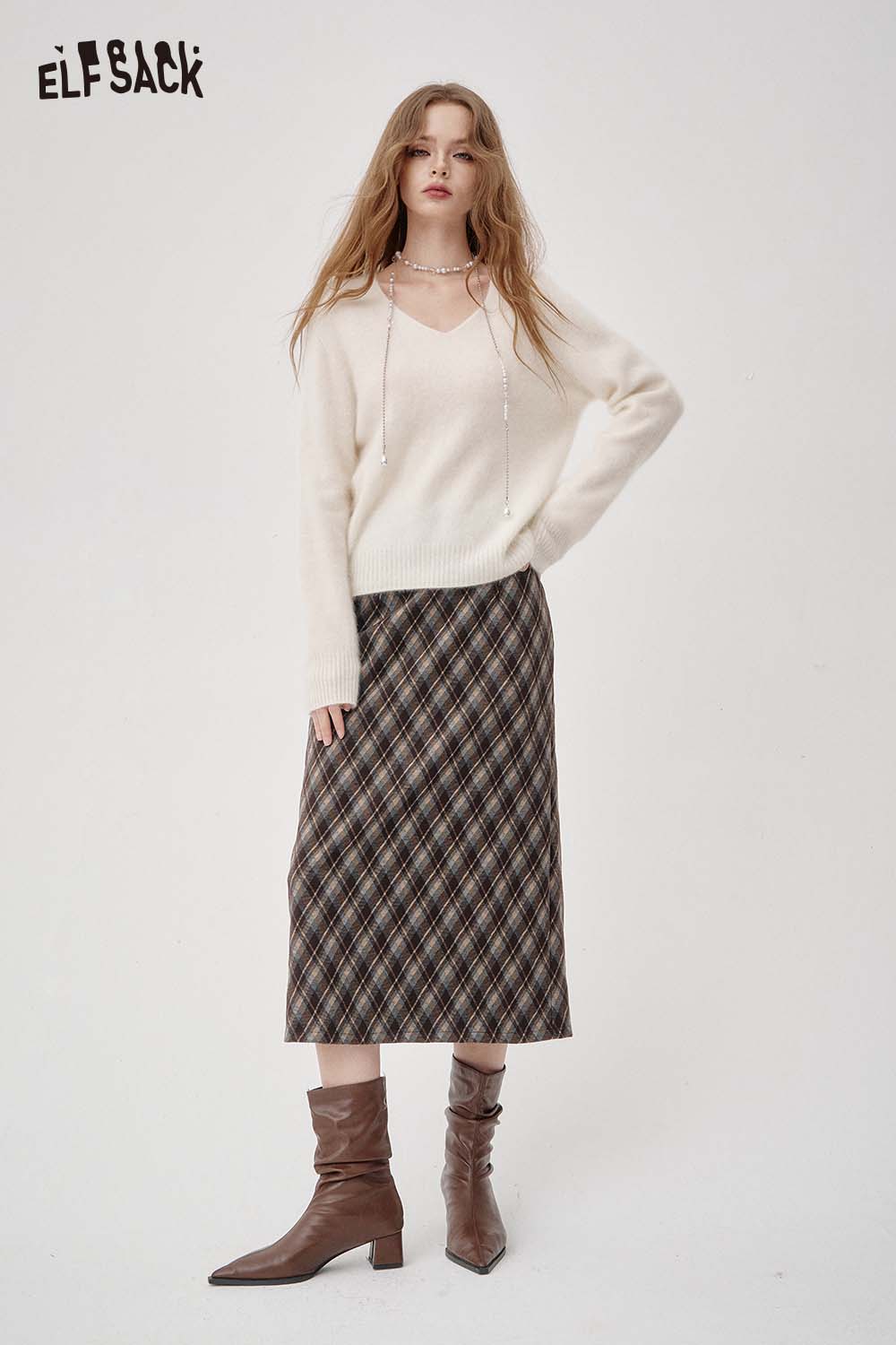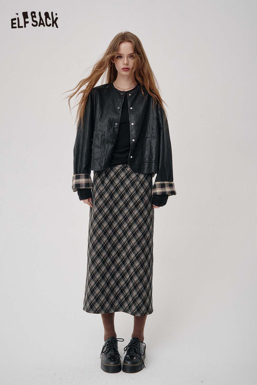 Color Block Diamond Pattern High Waist Midi Straight Half Skirt