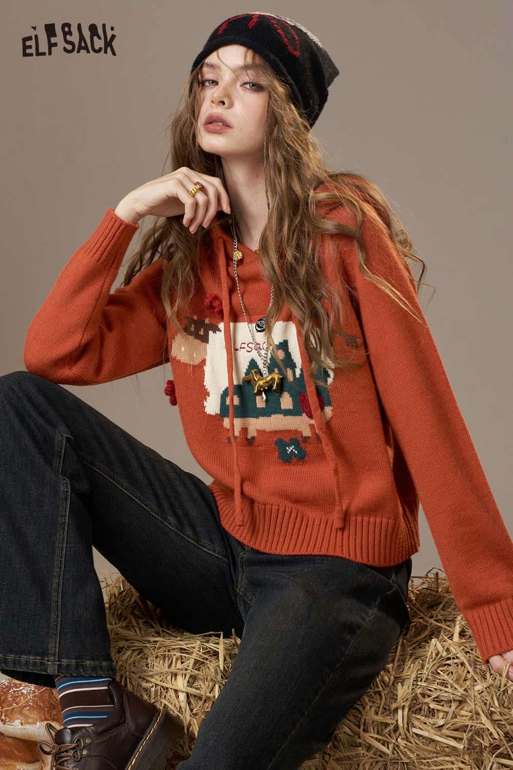 Soft Knit Cartoon Cow Print Design Hooded Sweater