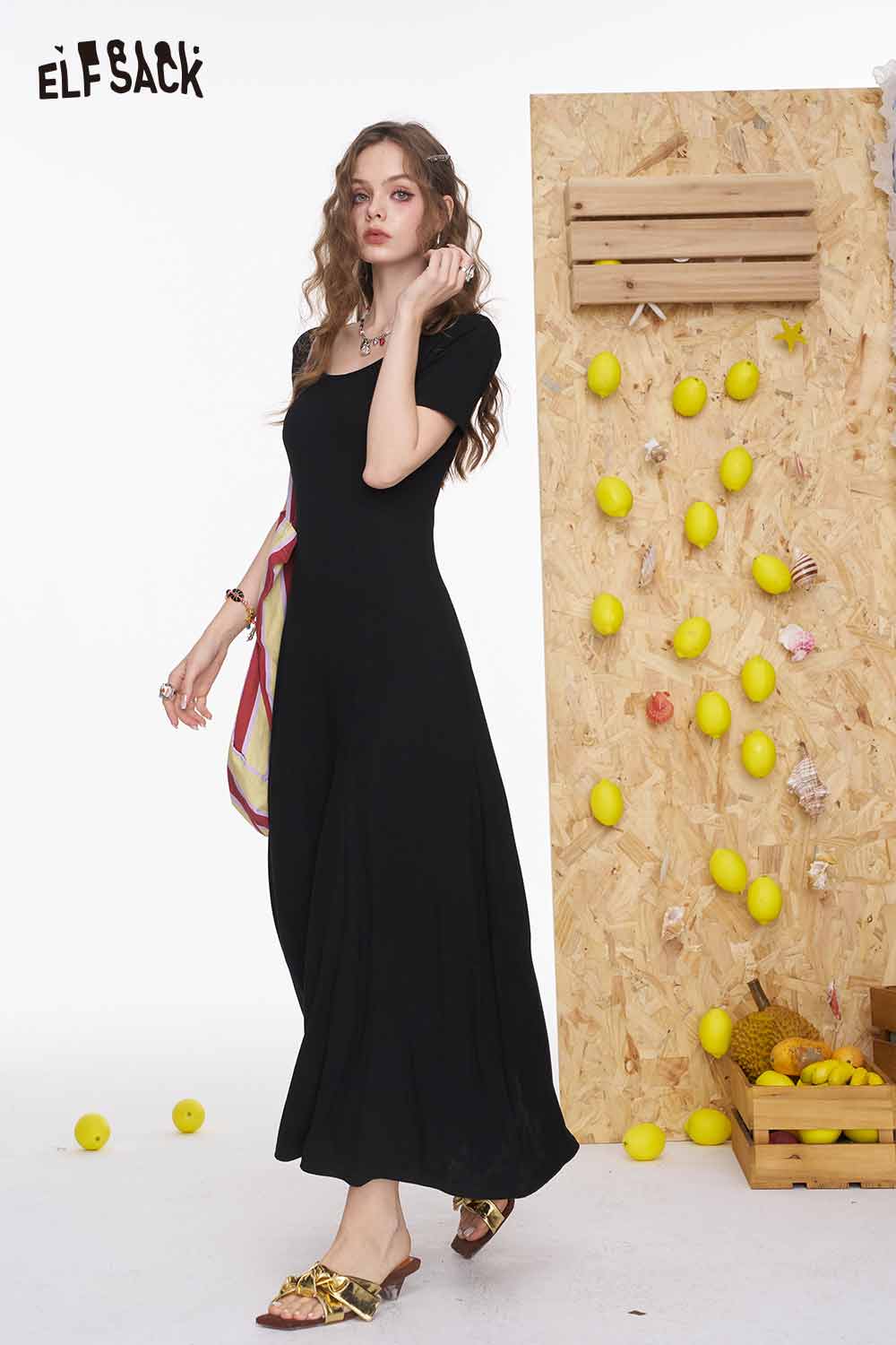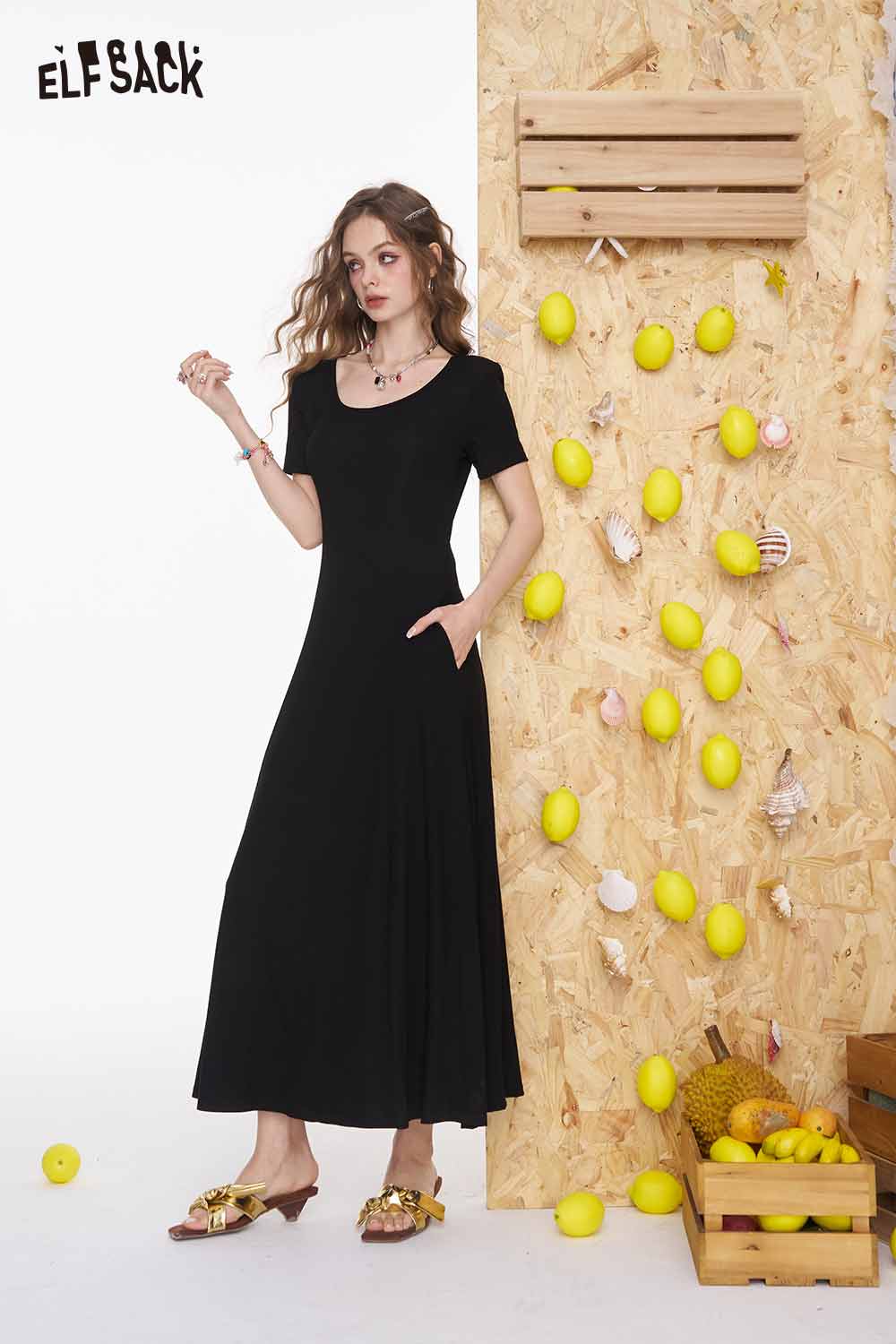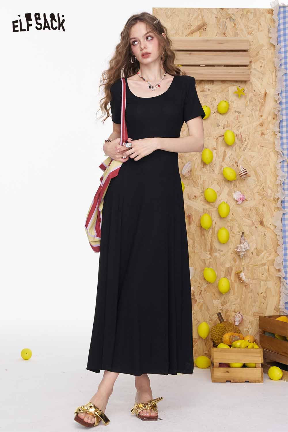Elegant Solid Slim Fit Short Sleeve Holiday Maxi Dress