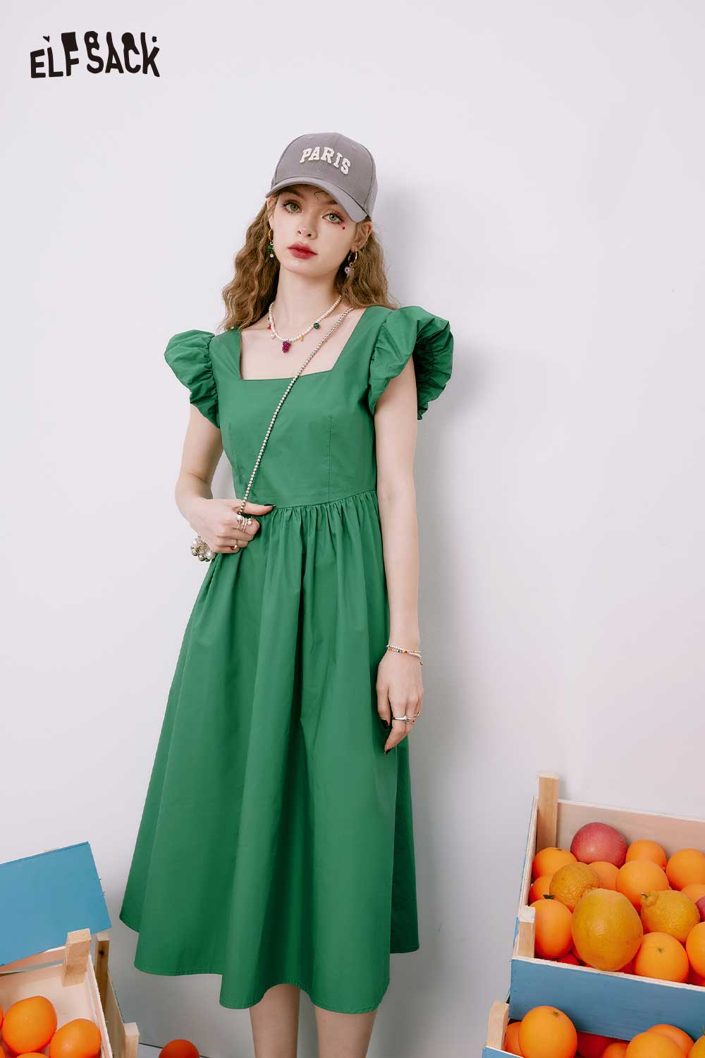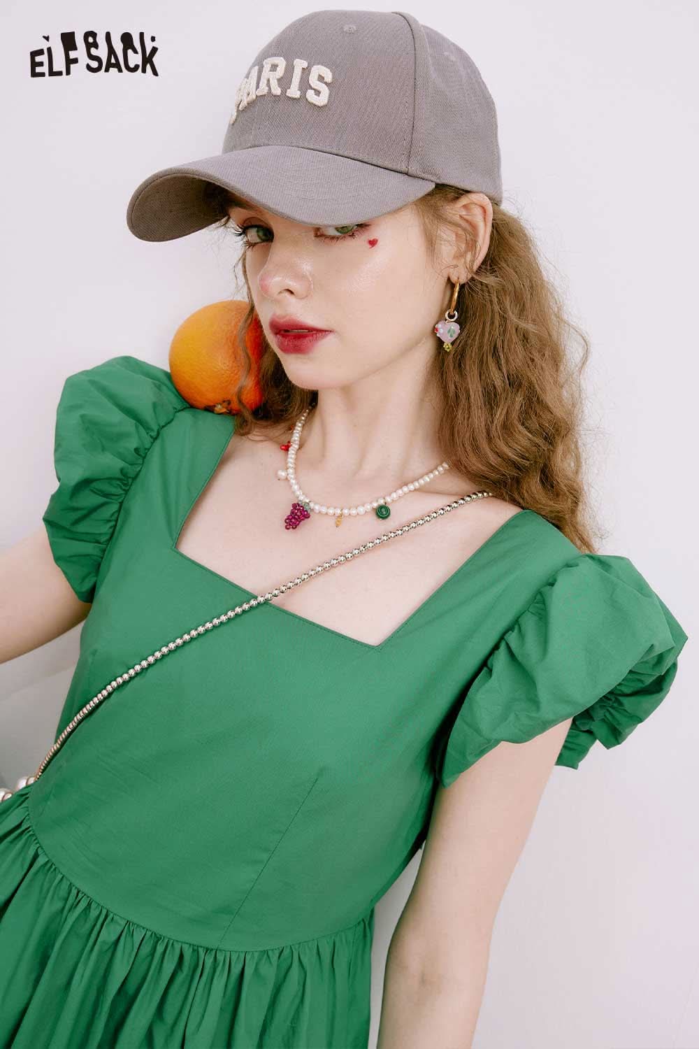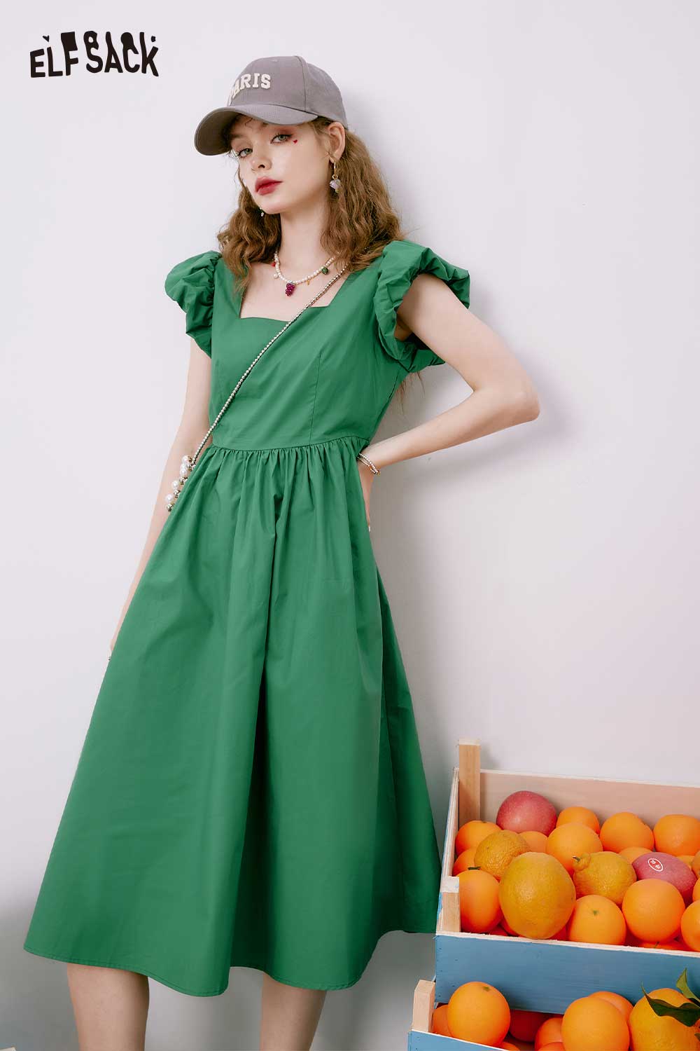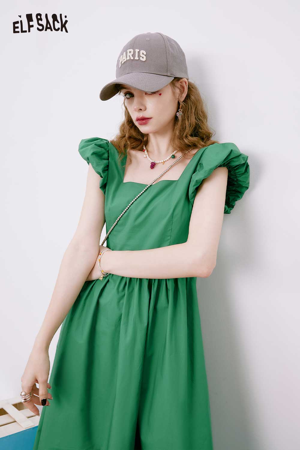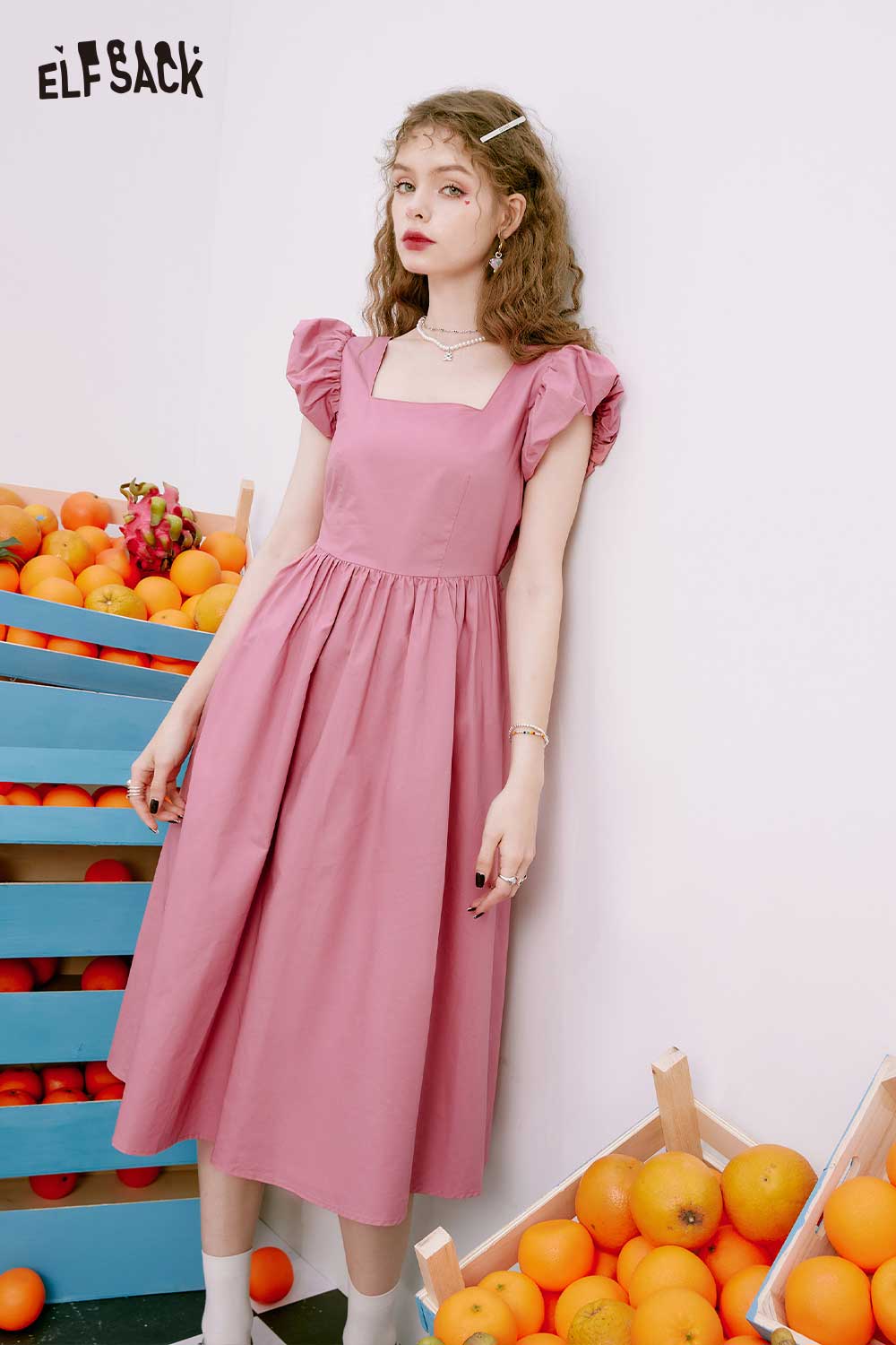 Light Square Neck Puff Sleeve Waist Princess Dress