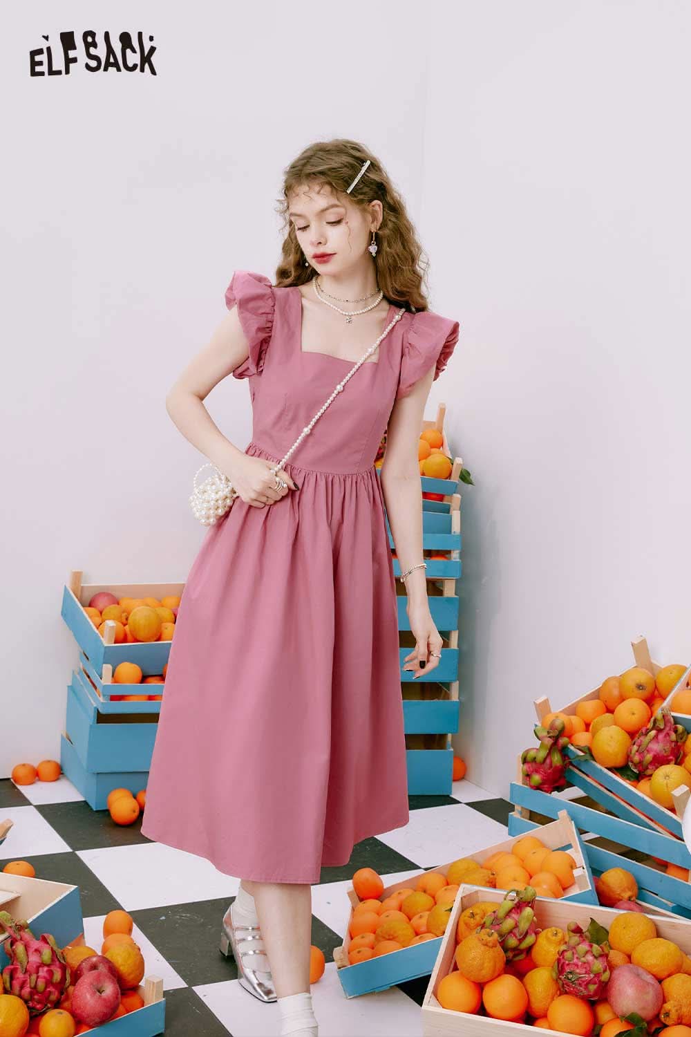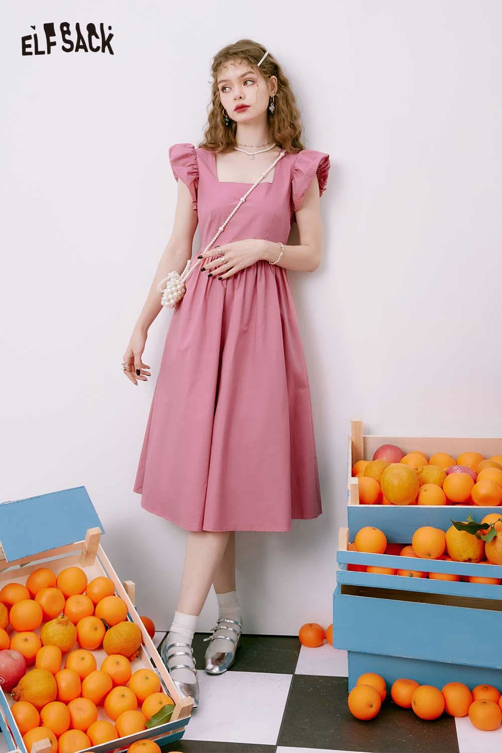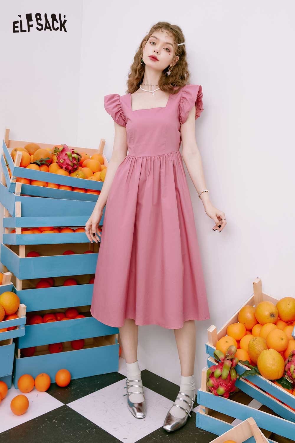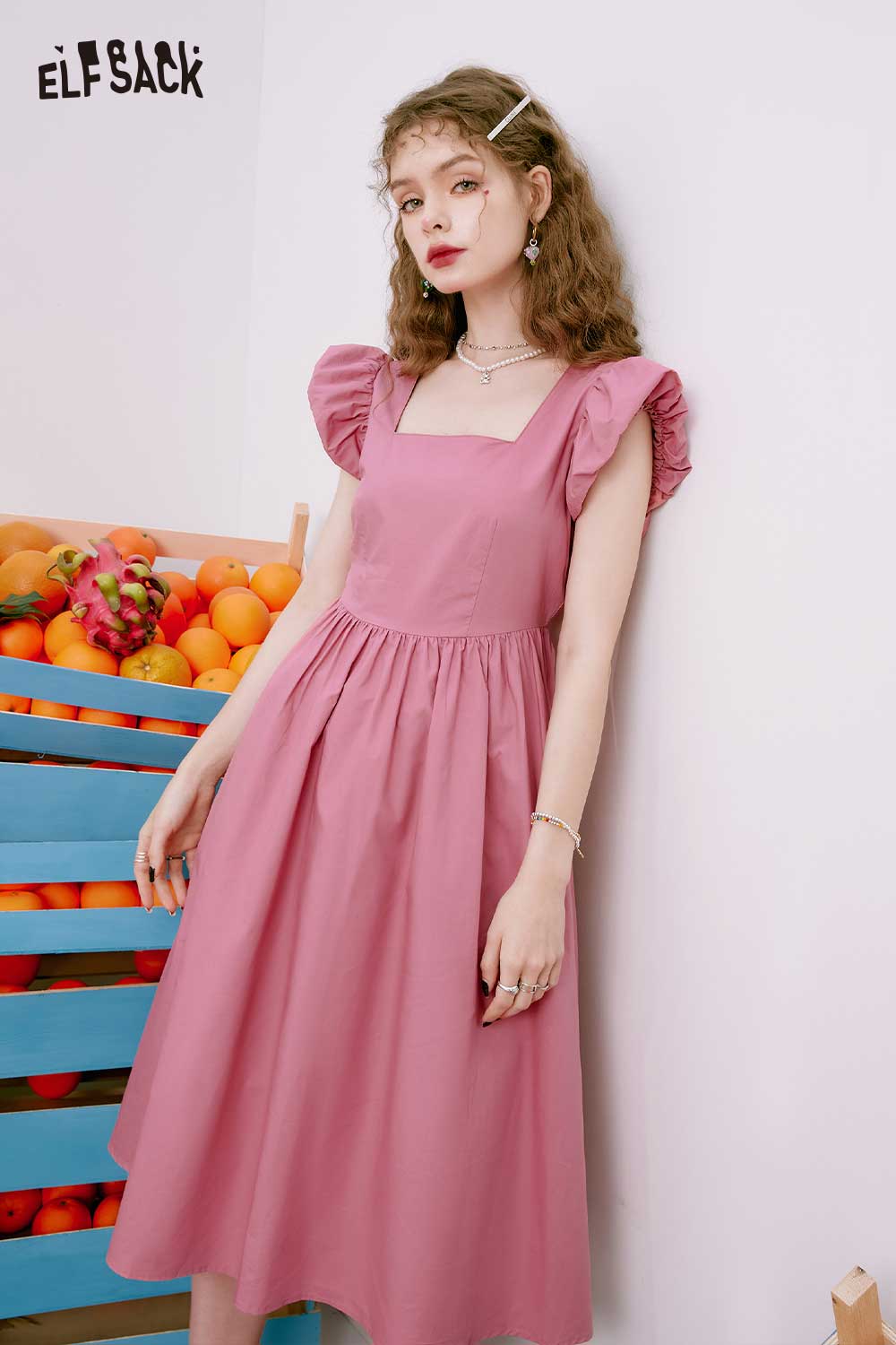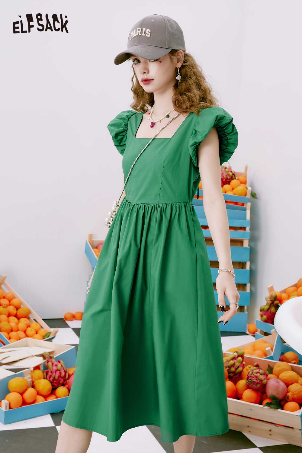 Light Square Neck Puff Sleeve Waist Princess Dress