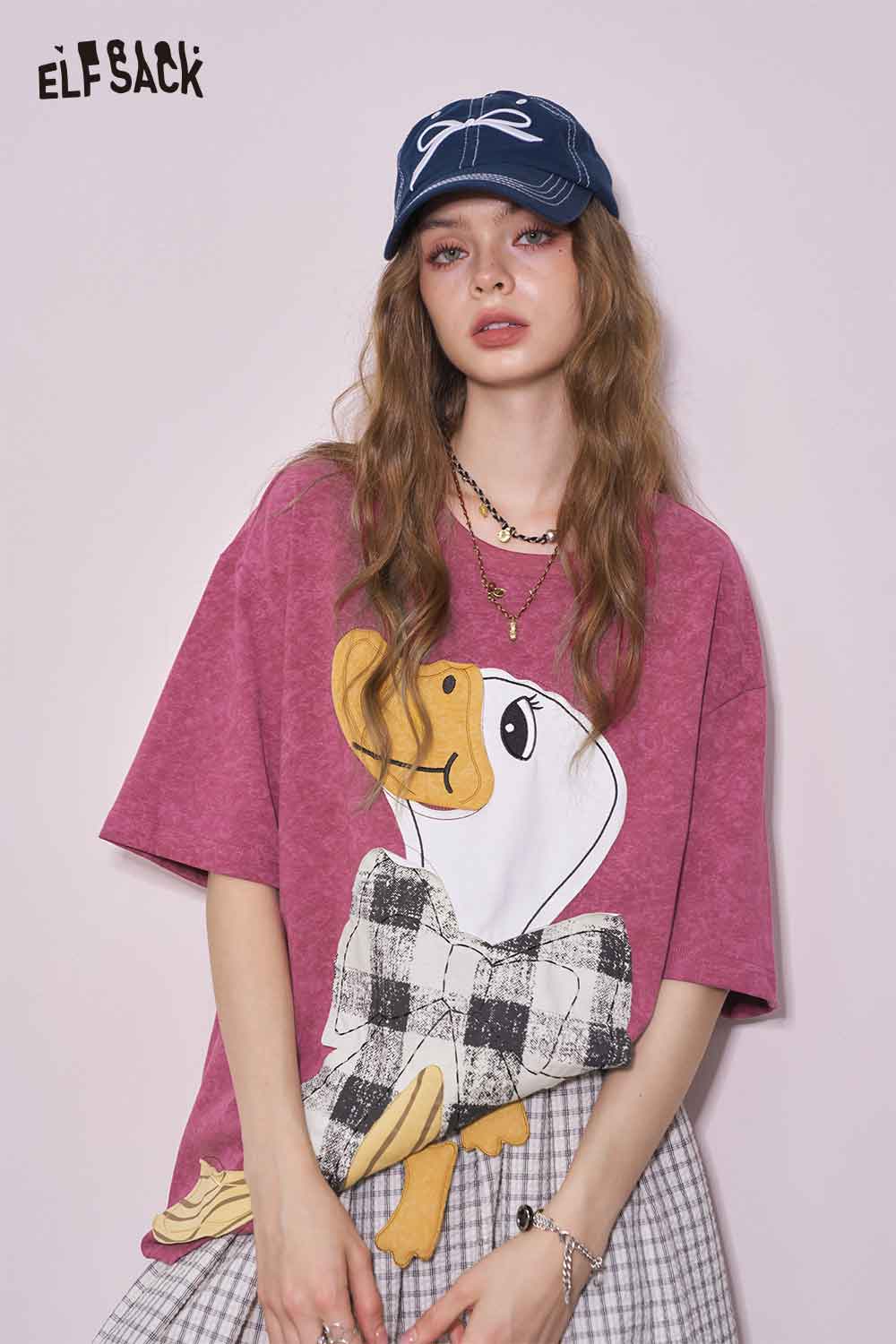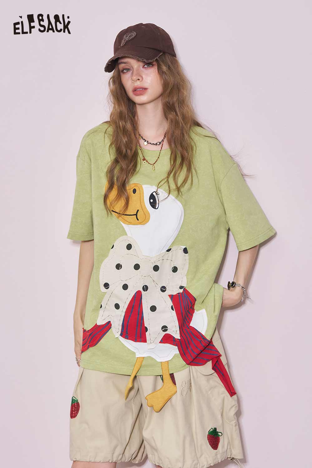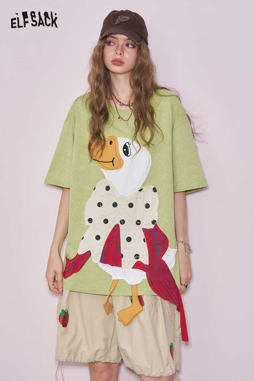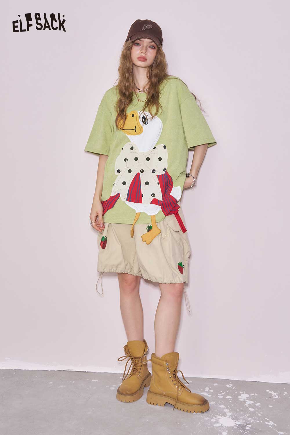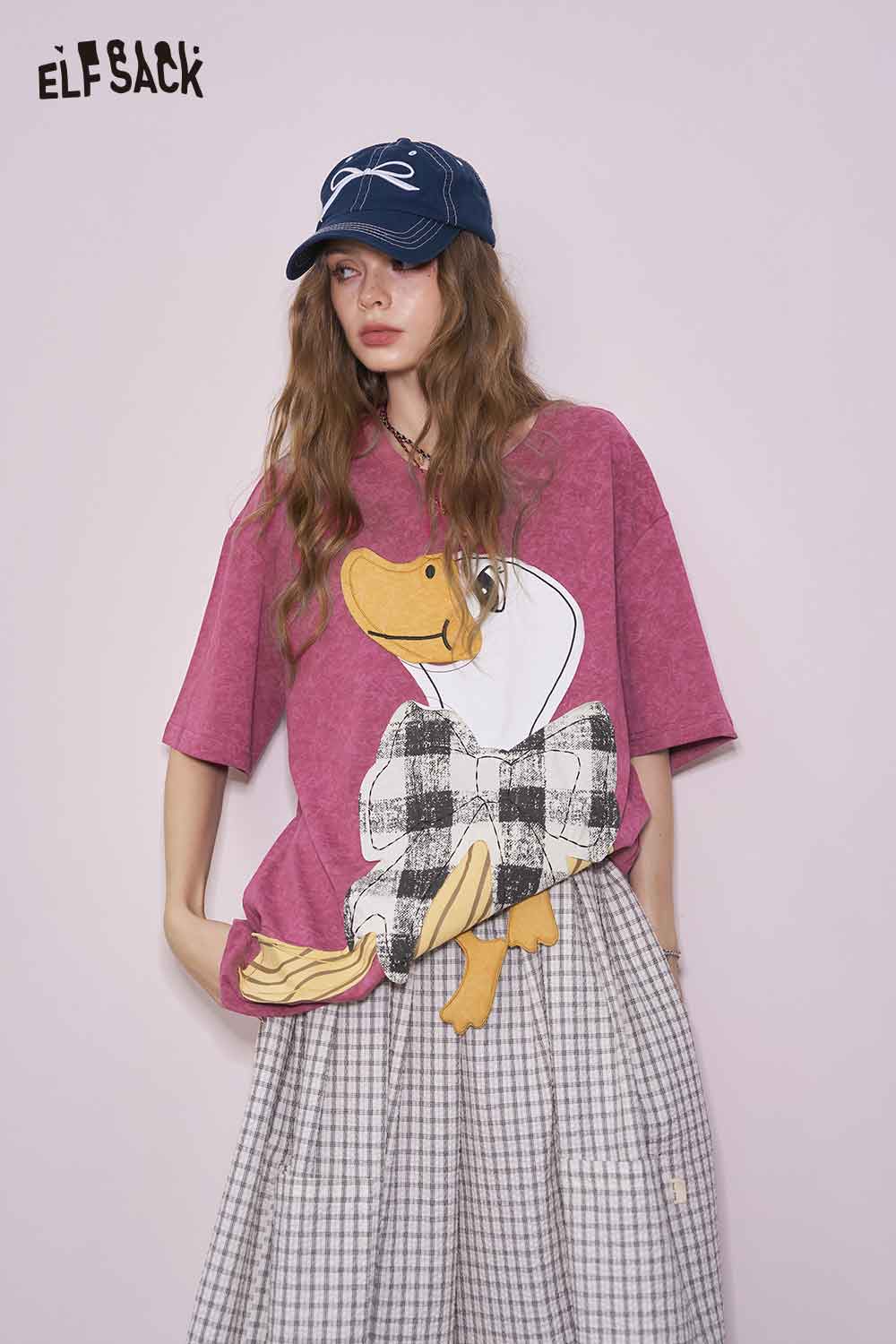 Cotton Heavy Duty Duck Graphic Short Sleeve T-shirt Unique Design Y2K Niche Top