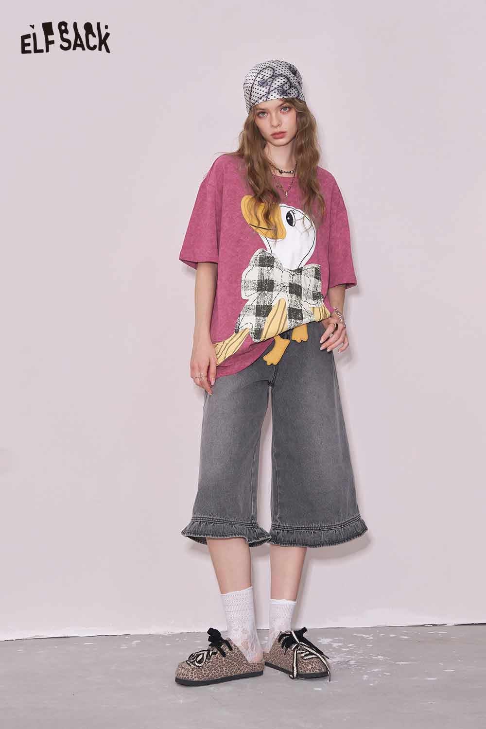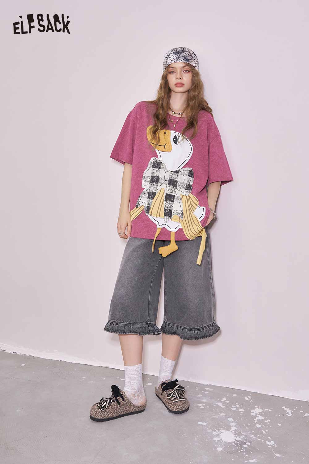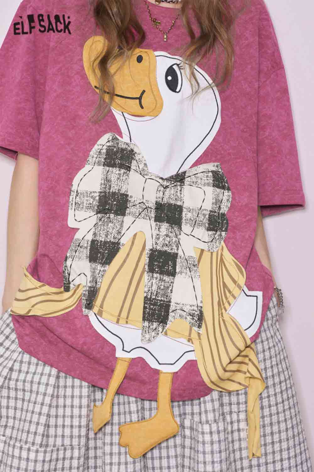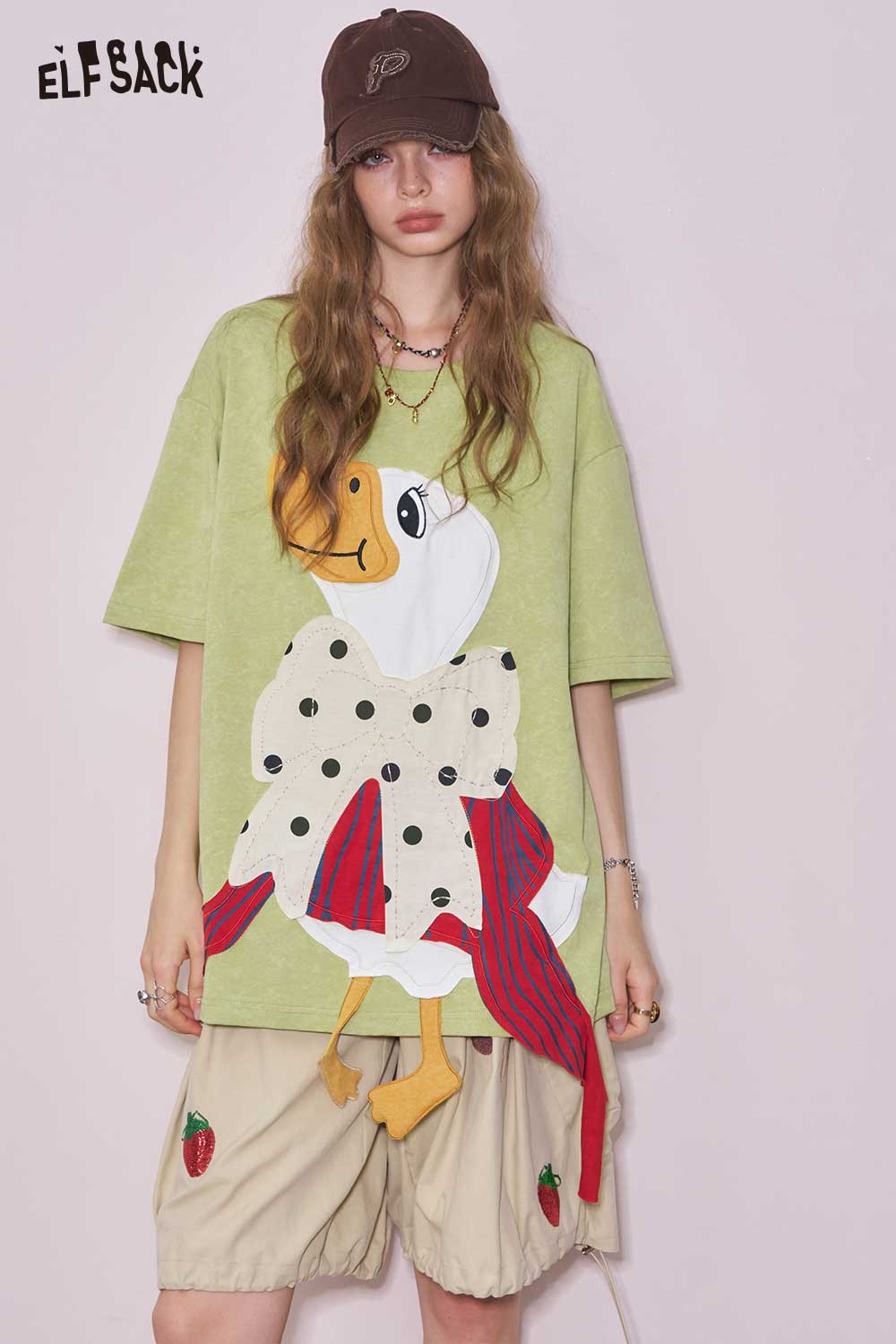 Cotton Heavy Duty Duck Graphic Short Sleeve T-shirt Unique Design Y2K Niche Top
