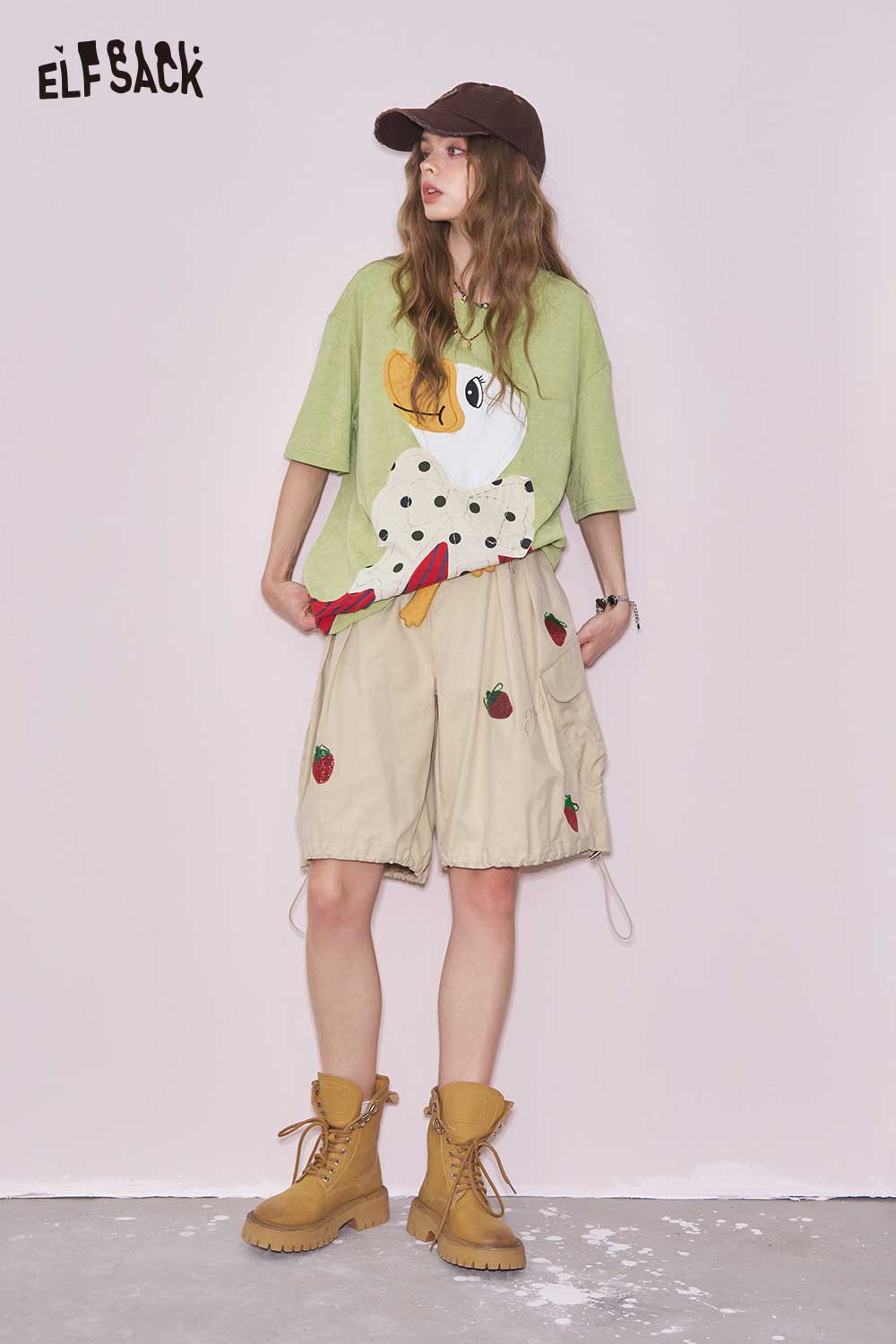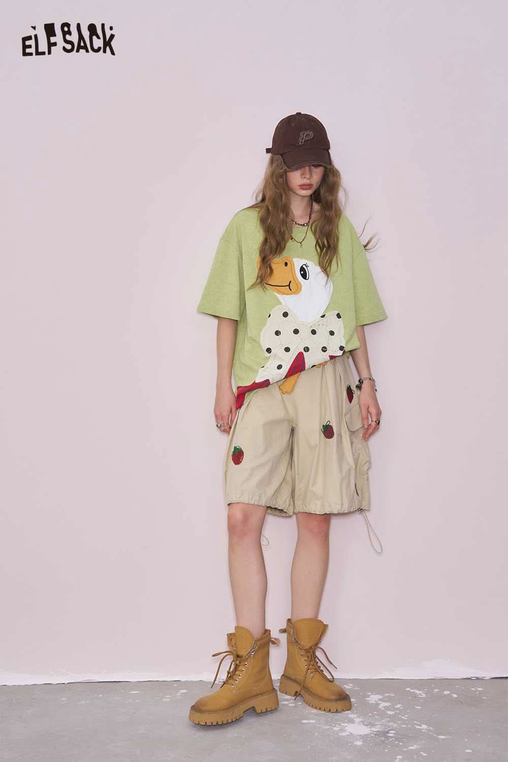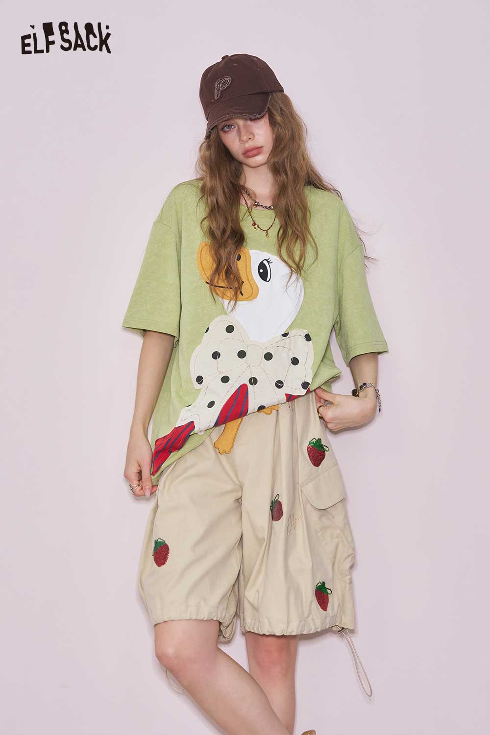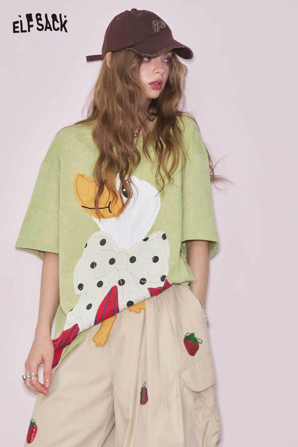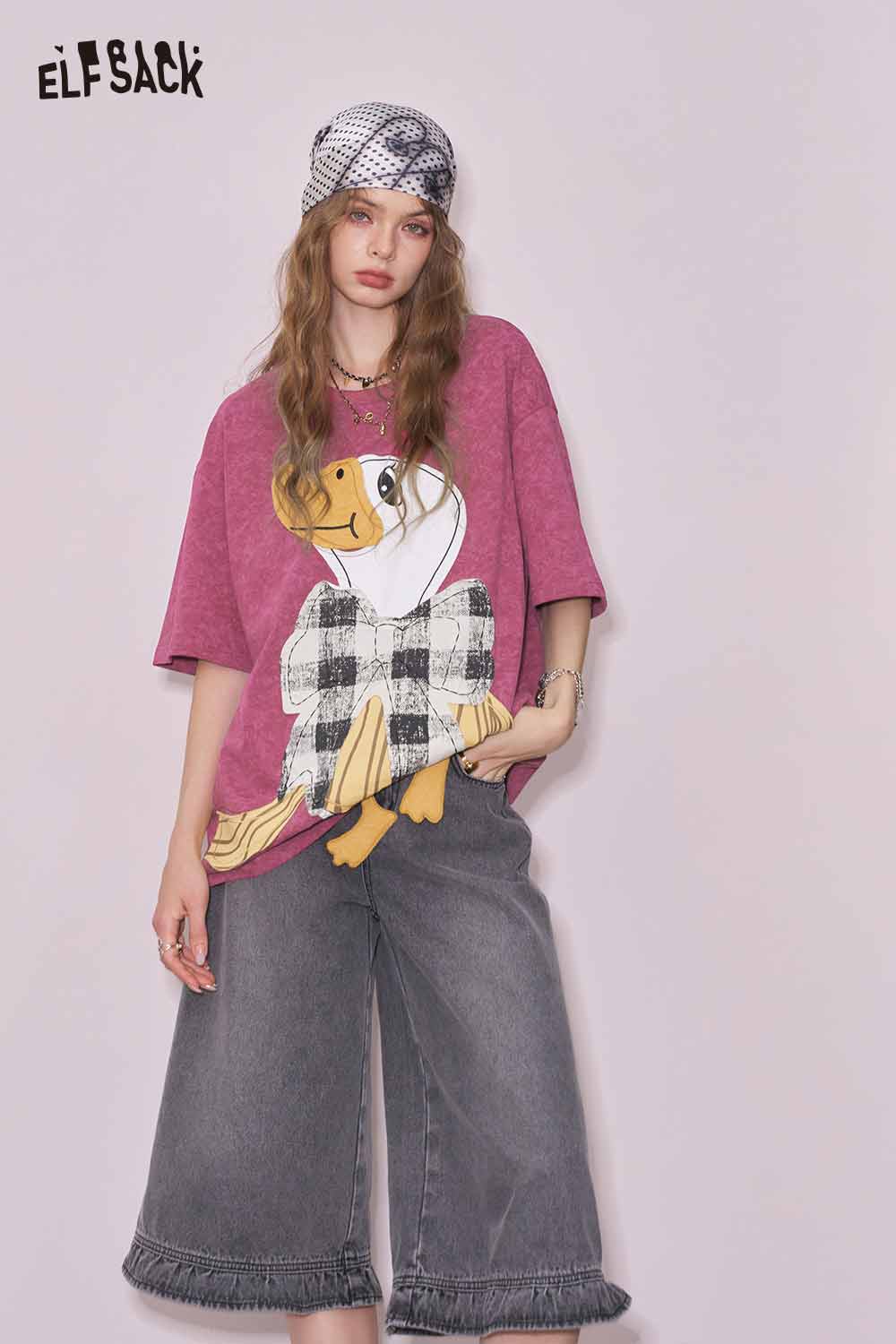 Cotton Heavy Duty Duck Graphic Short Sleeve T-shirt Unique Design Y2K Niche Top
