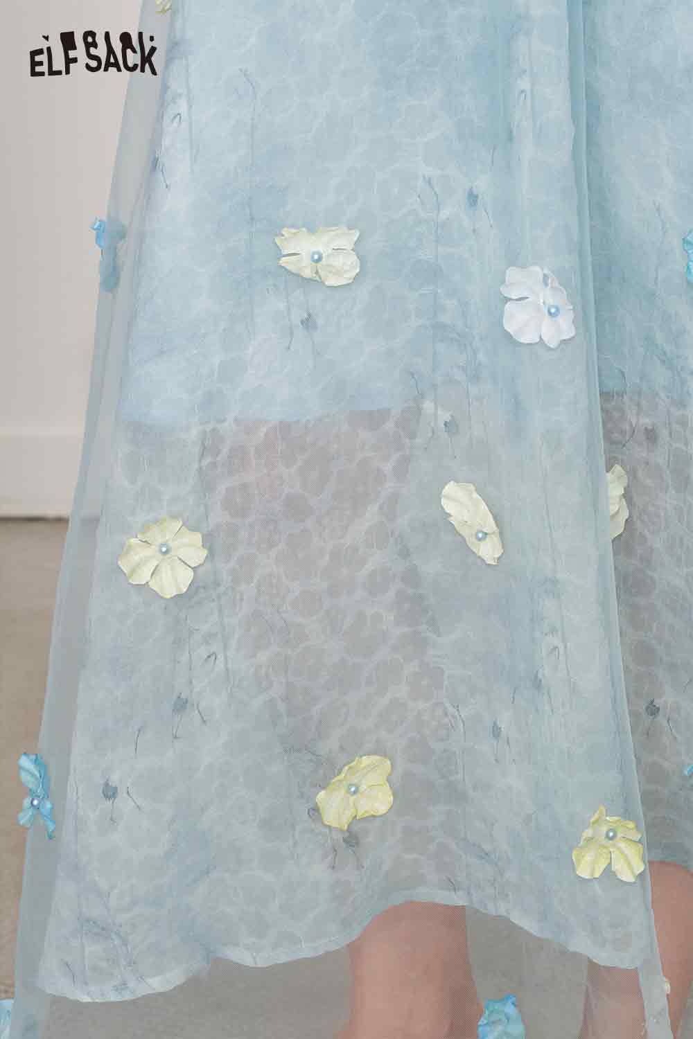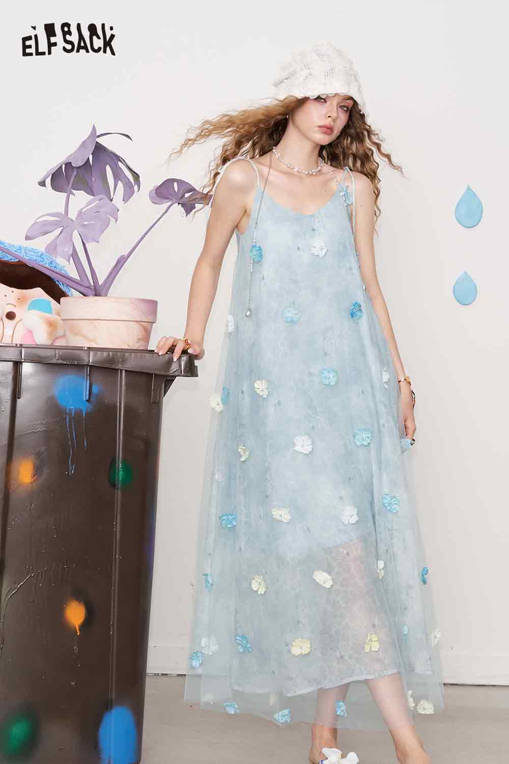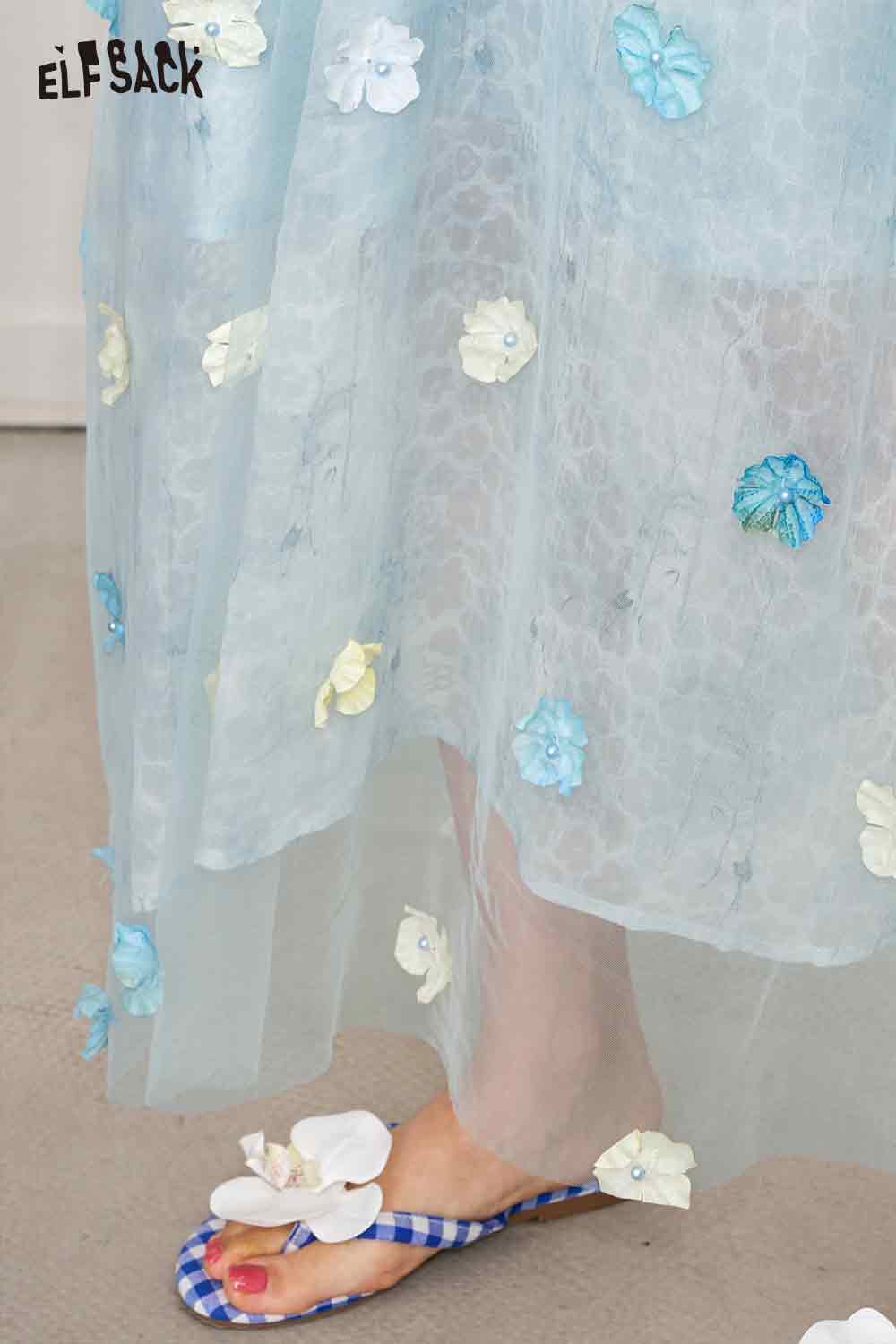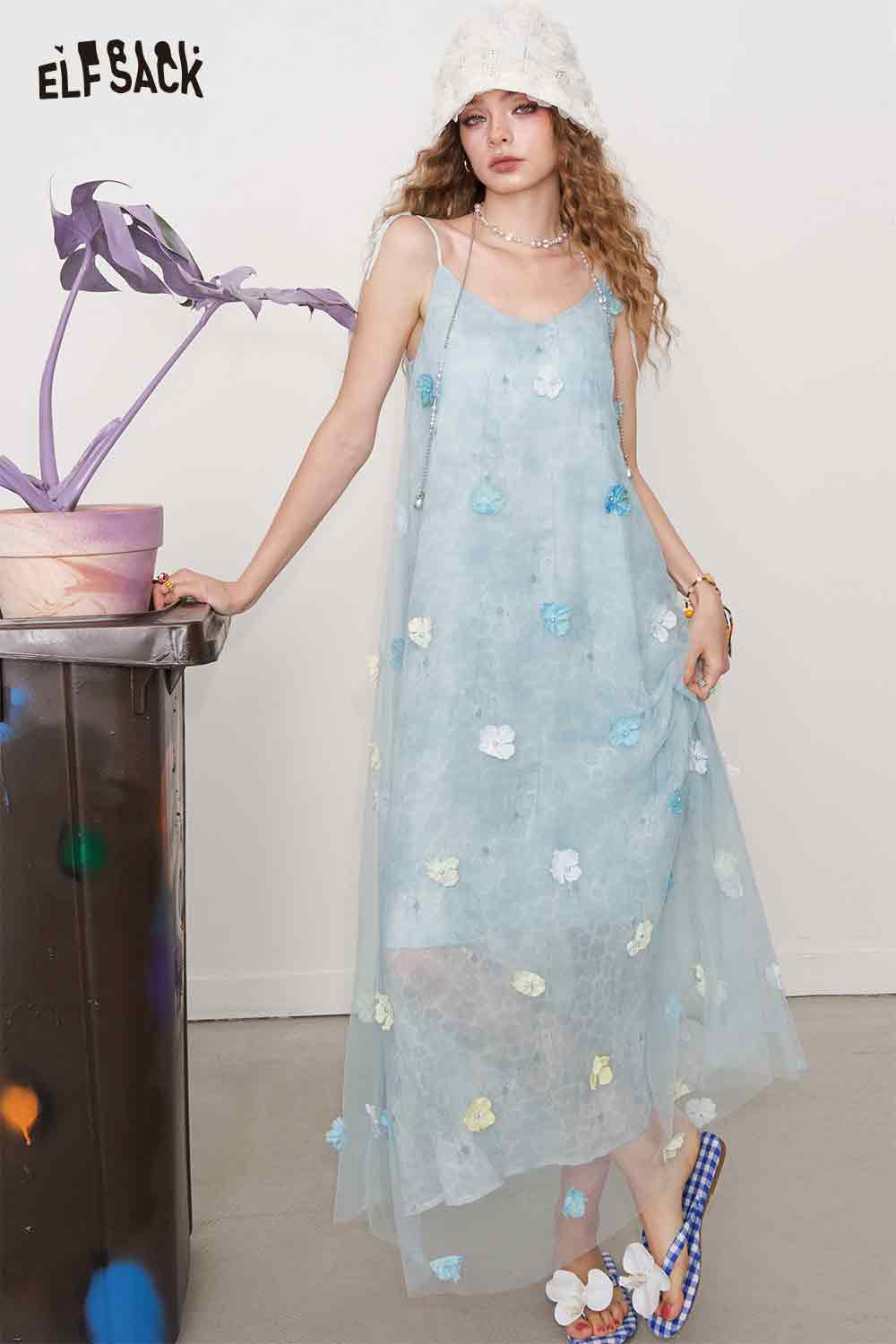 Cute 3D Flower Sheer Slip Holiday Slim Maxi Dress