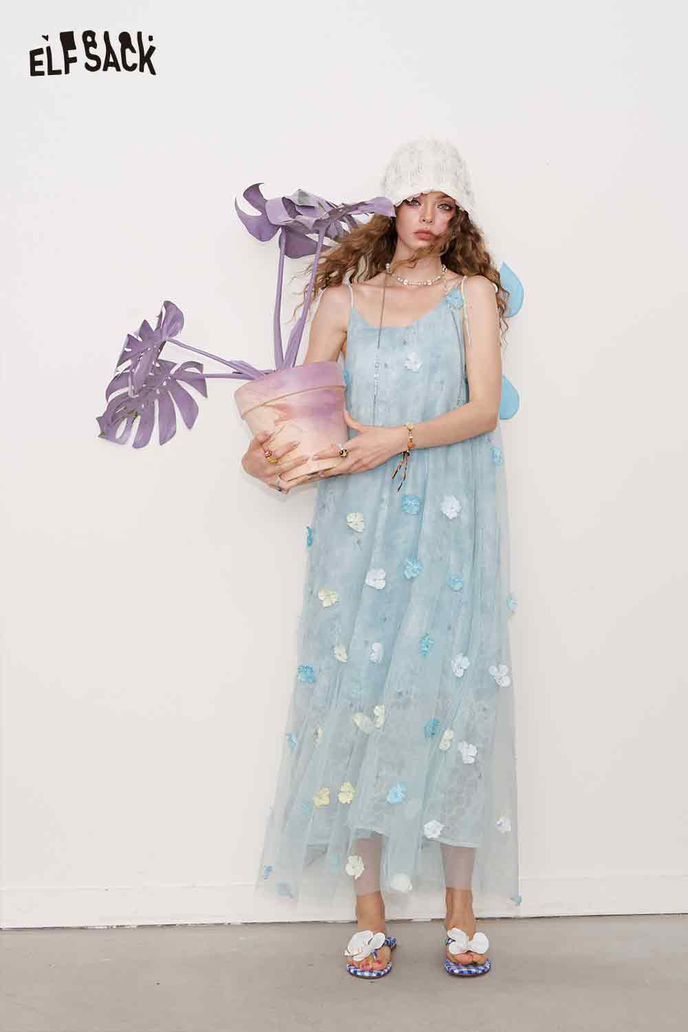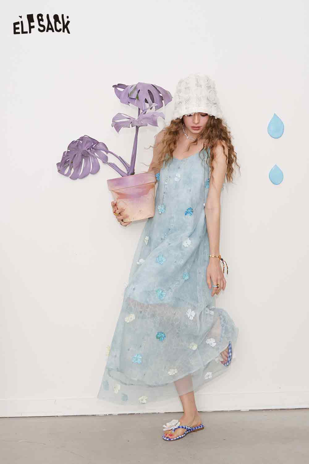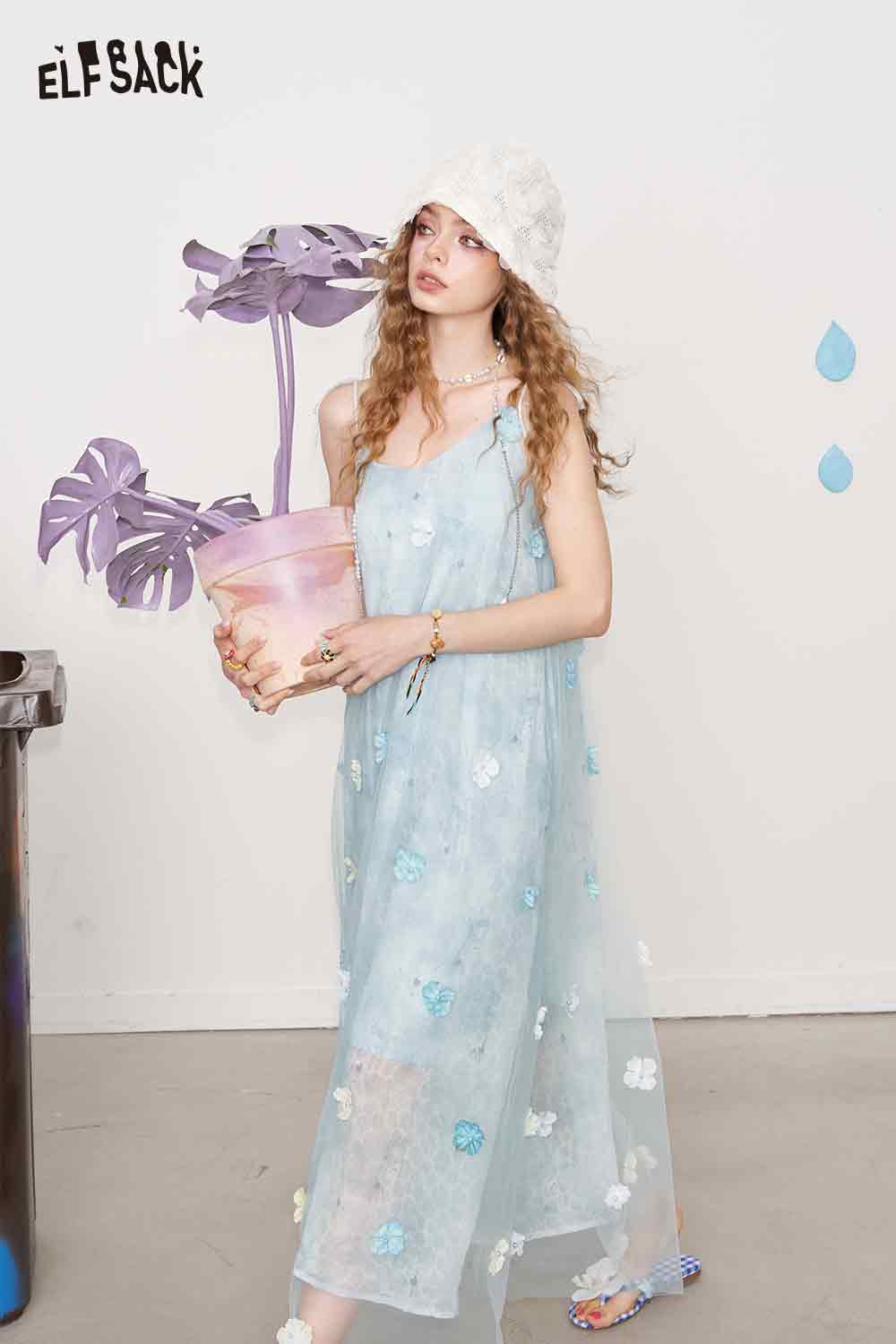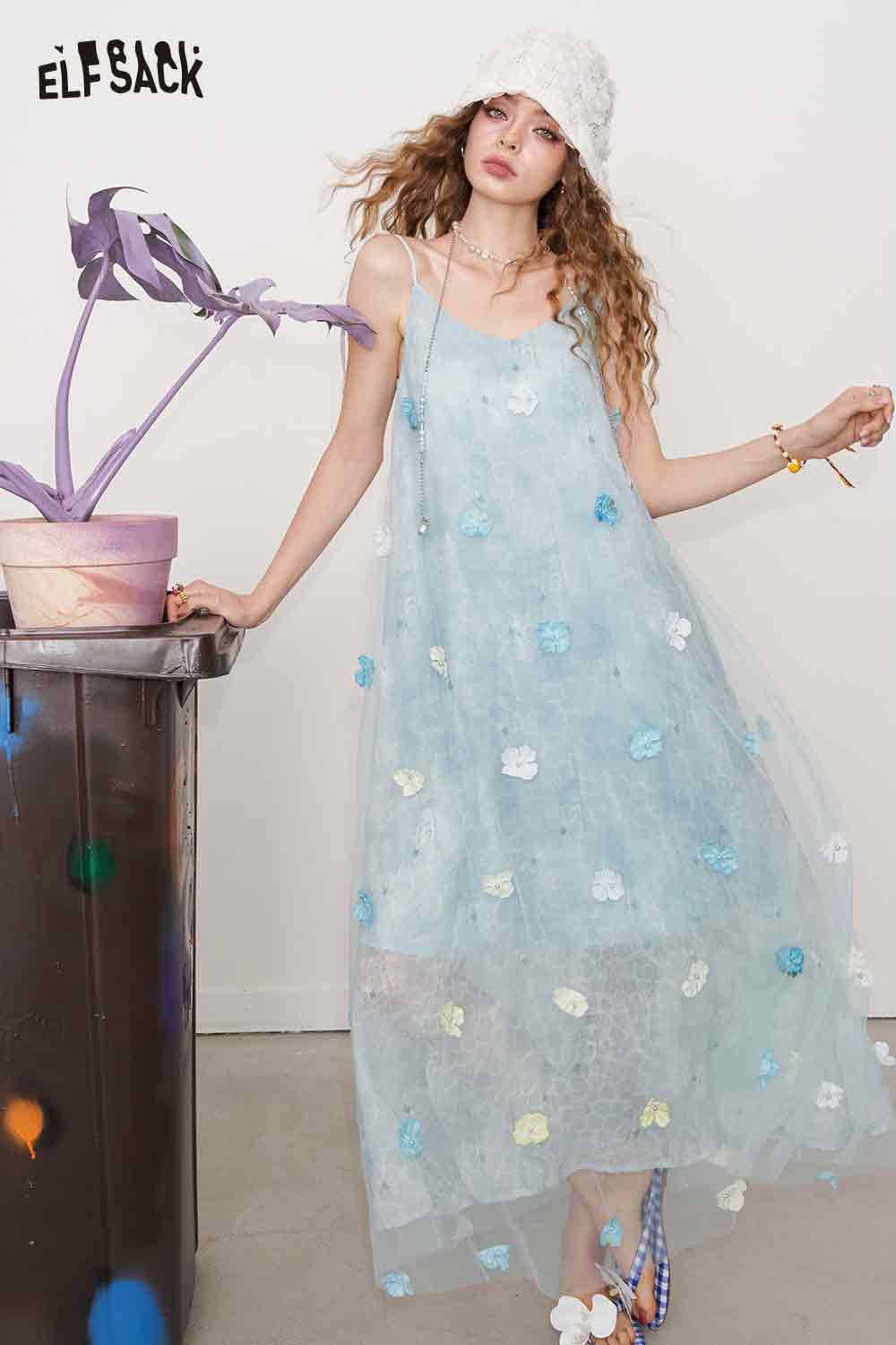 Cute 3D Flower Sheer Slip Holiday Slim Maxi Dress