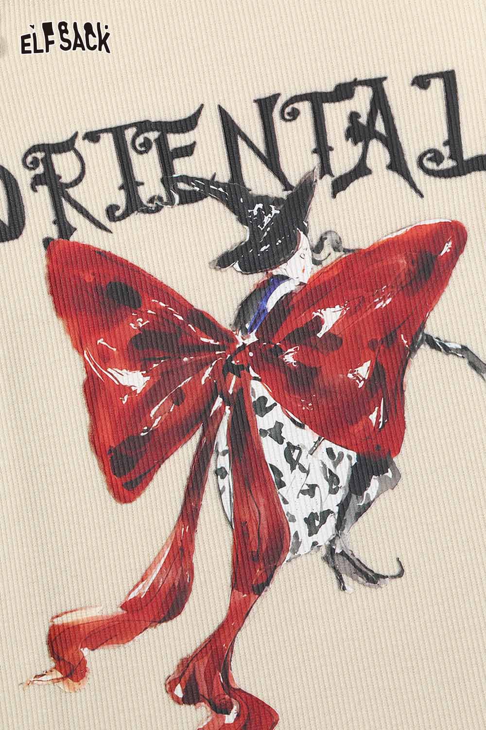 Soft Irregular Button Collar Bow Graphic Long Sleeve Tshirt
