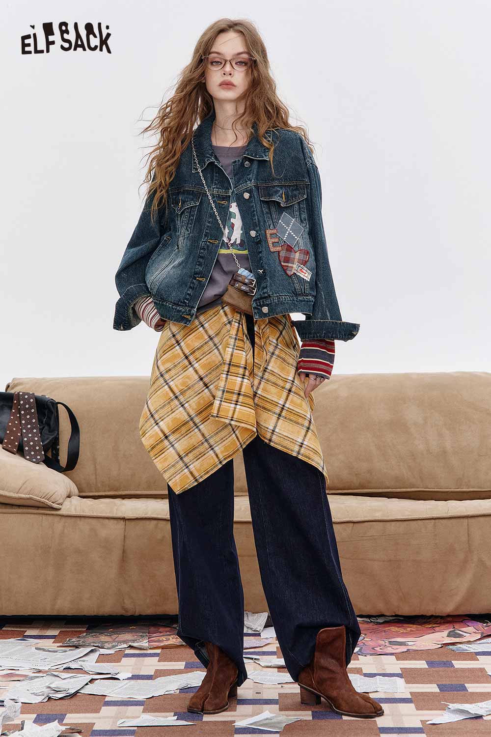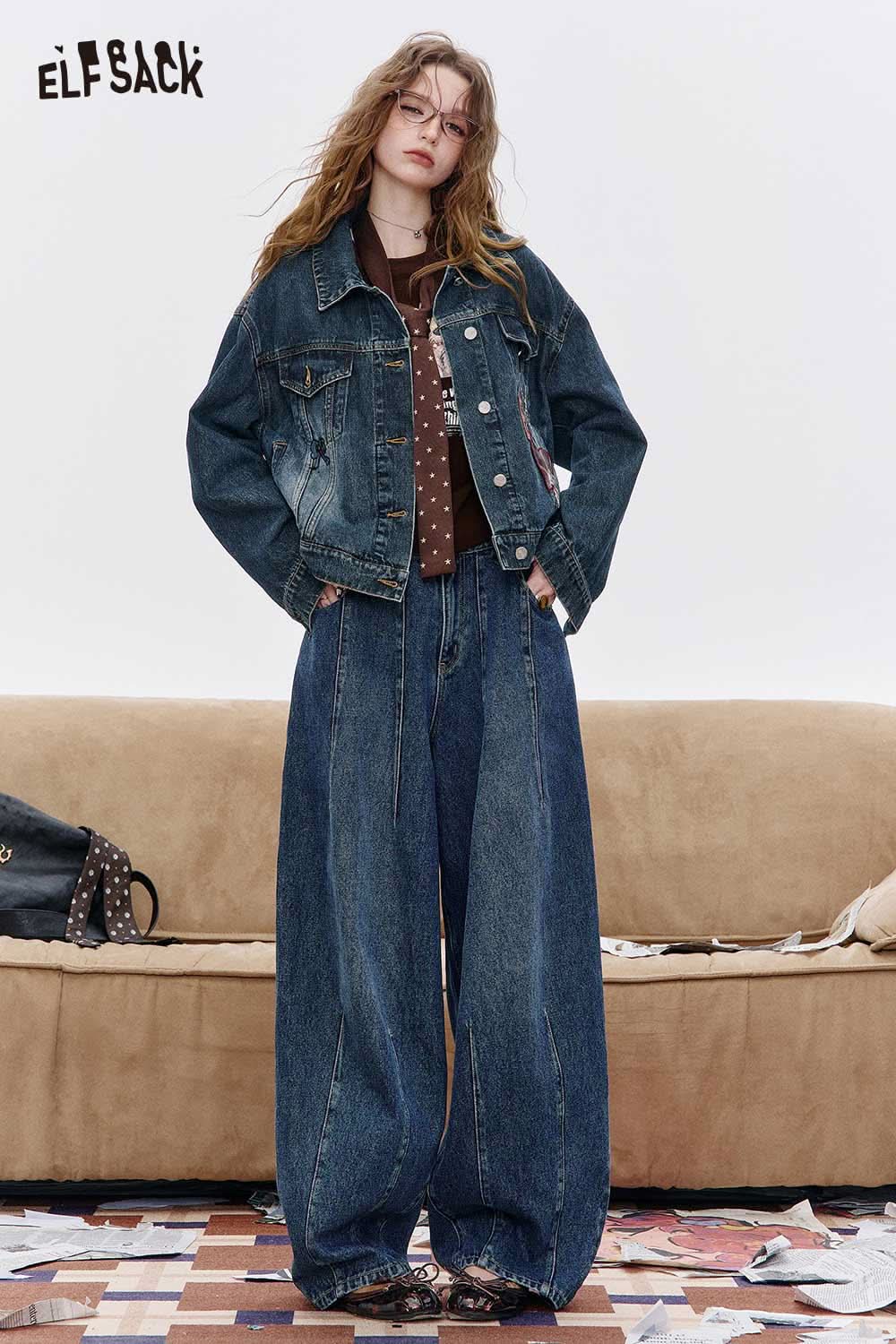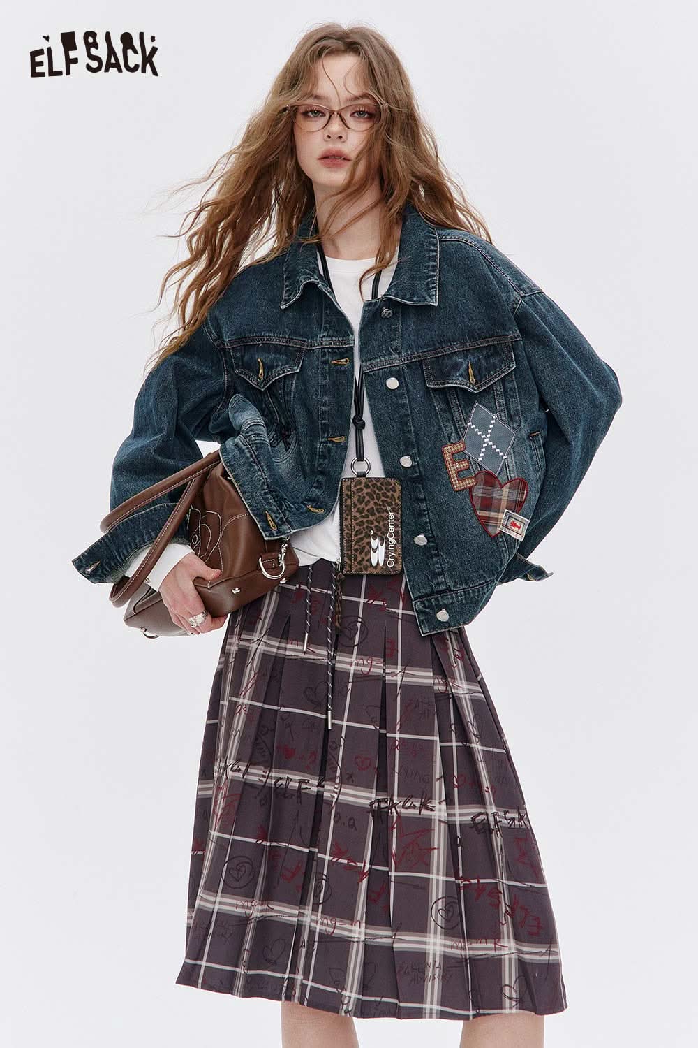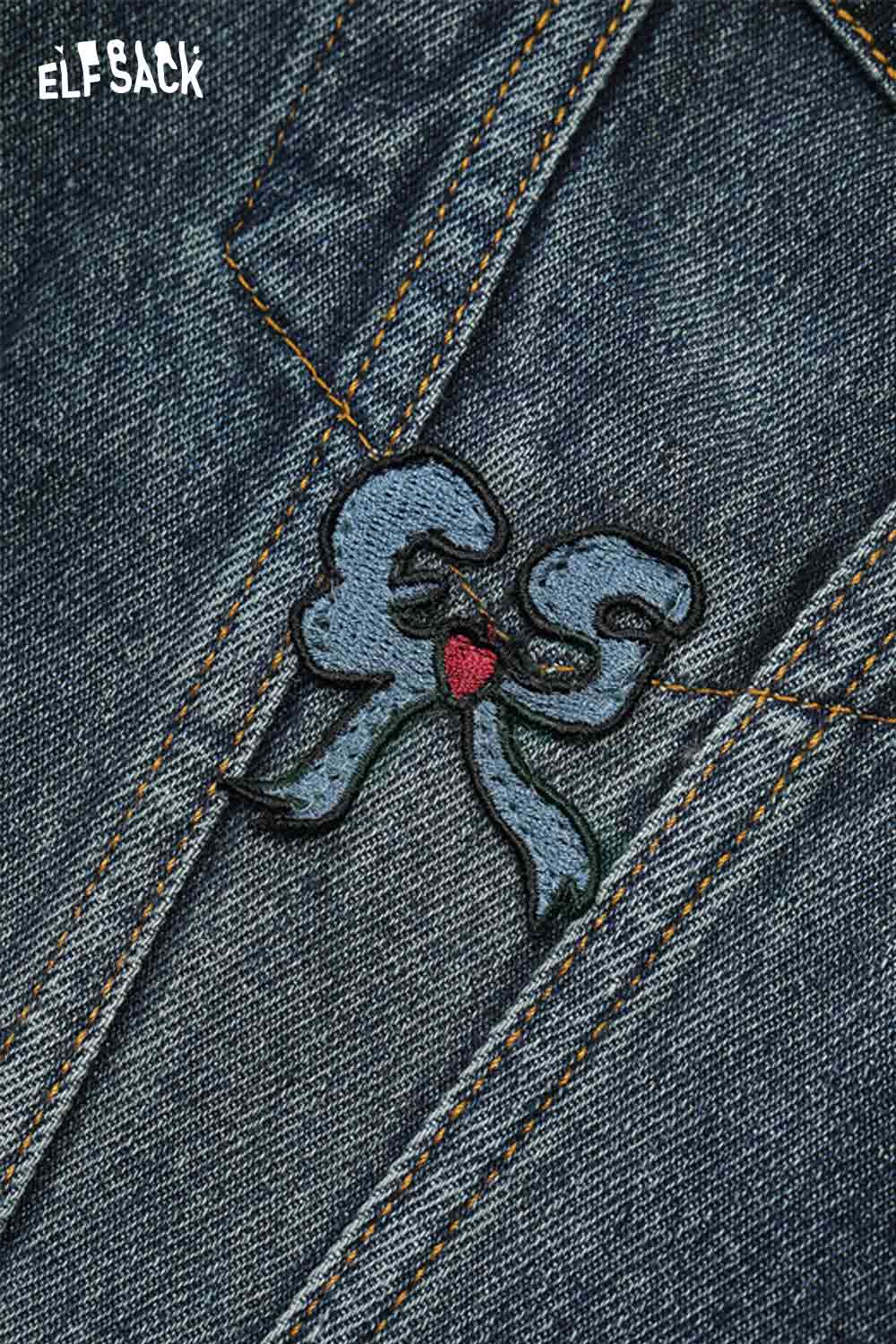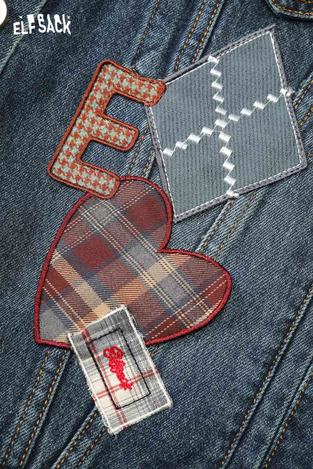 Oversized Denim Jacket with Heart Applique Details Y2K Style Outerwear