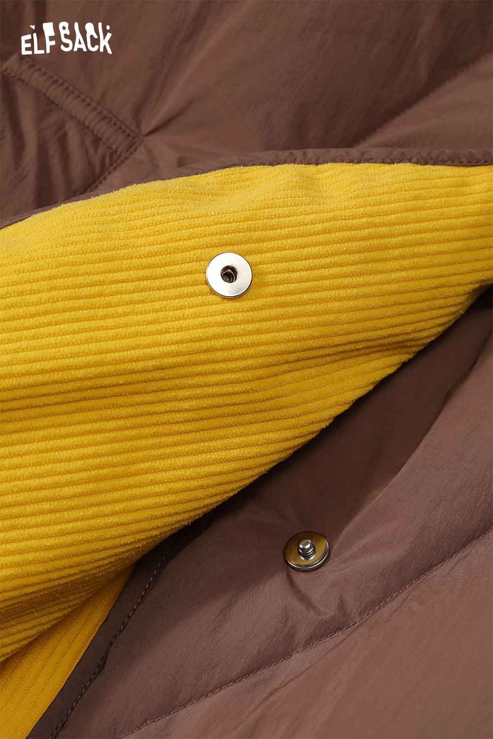ELFSACK women's reversible down jacket in yellow and brown, stylish for winter fashion and warmth