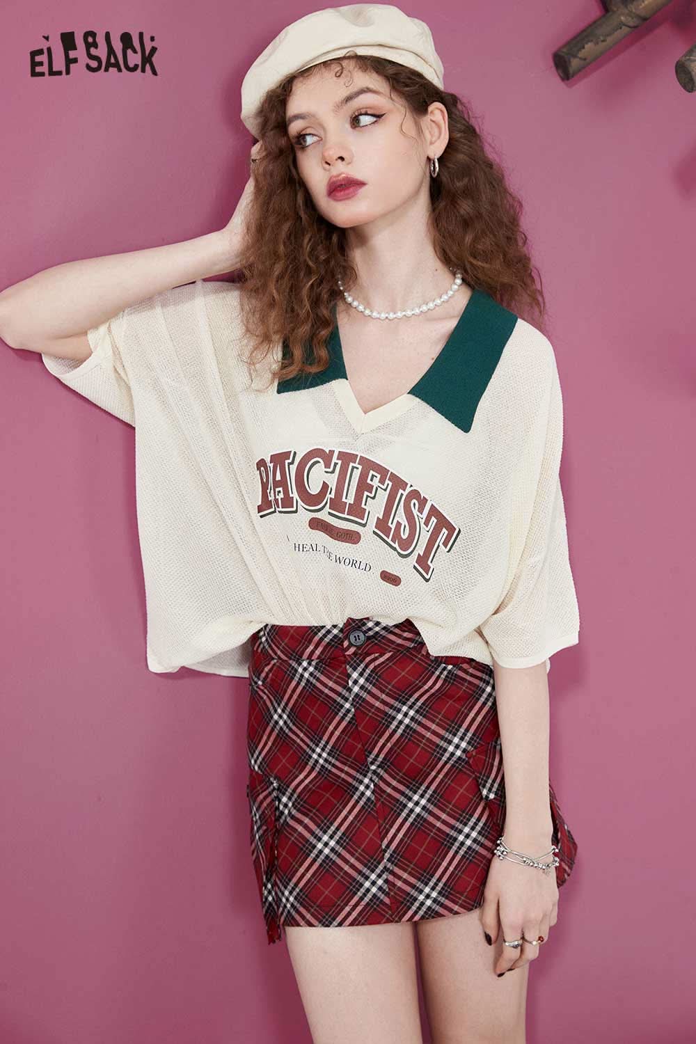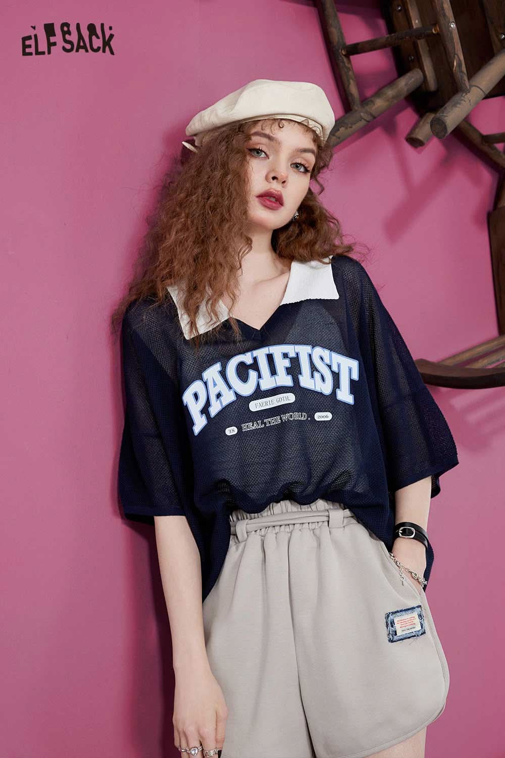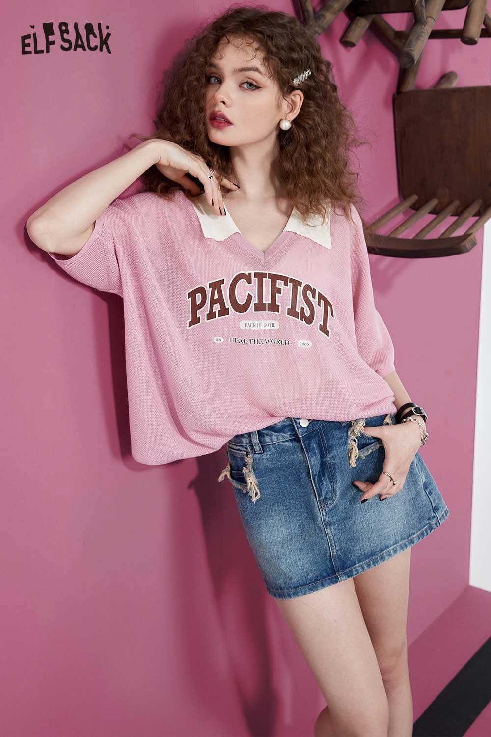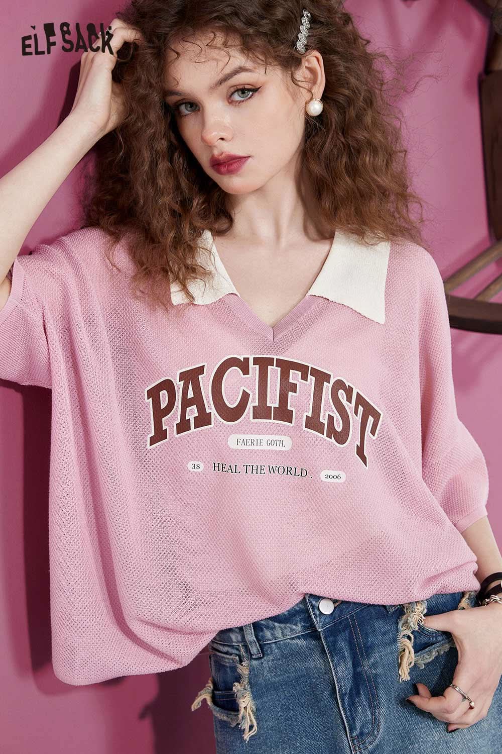 Breathable Solid V Neck Short Sleeve Polo Knitwear