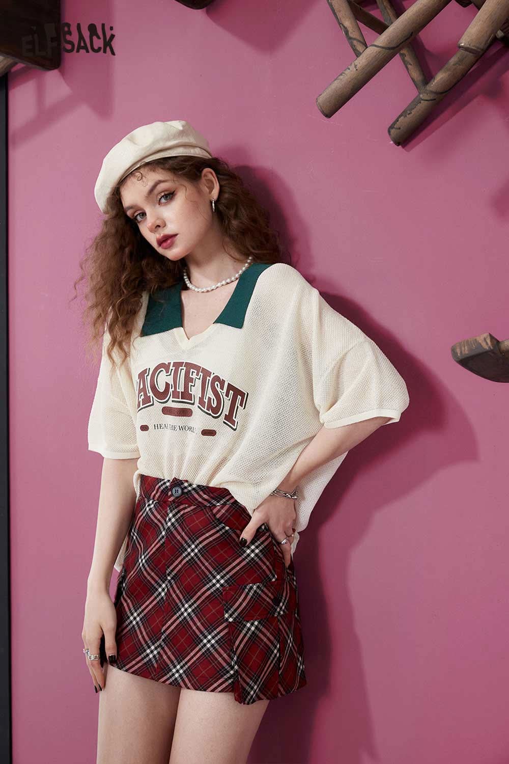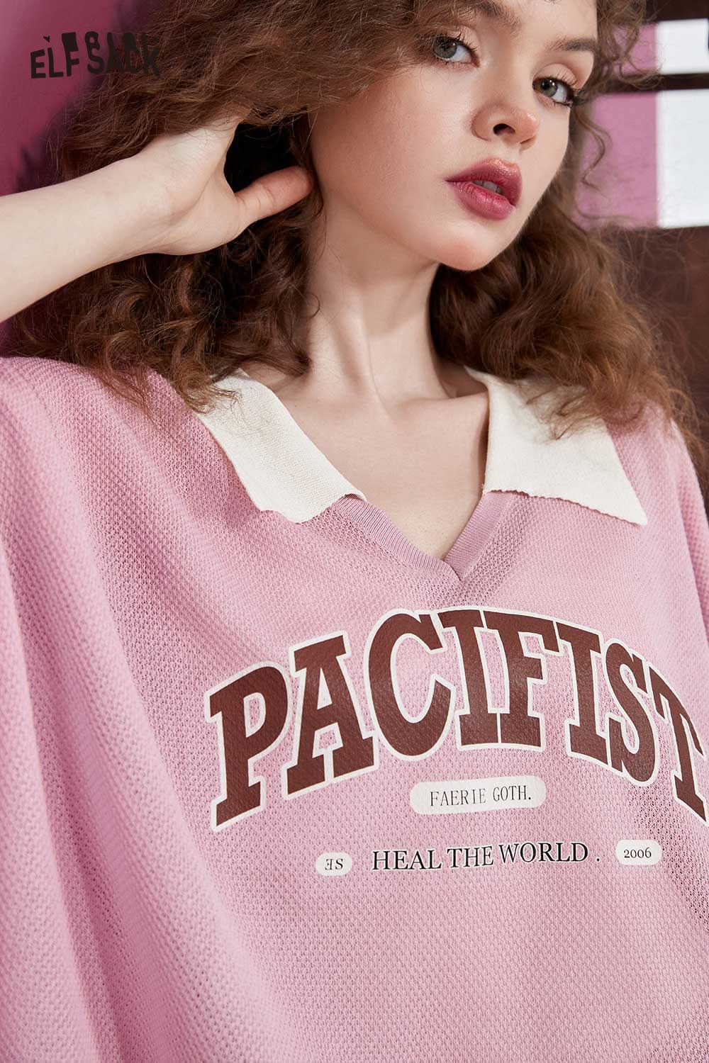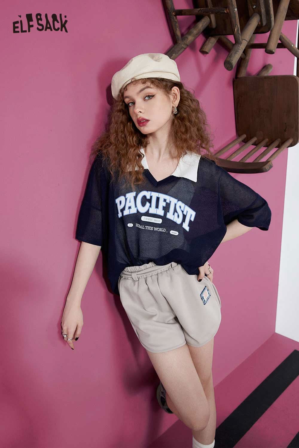 Breathable Solid V Neck Short Sleeve Polo Knitwear