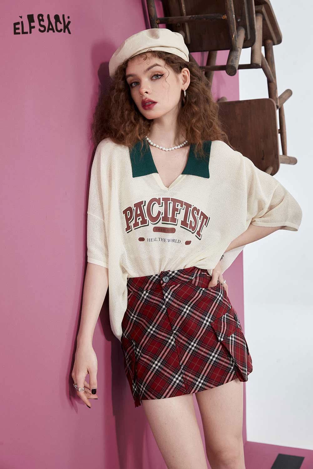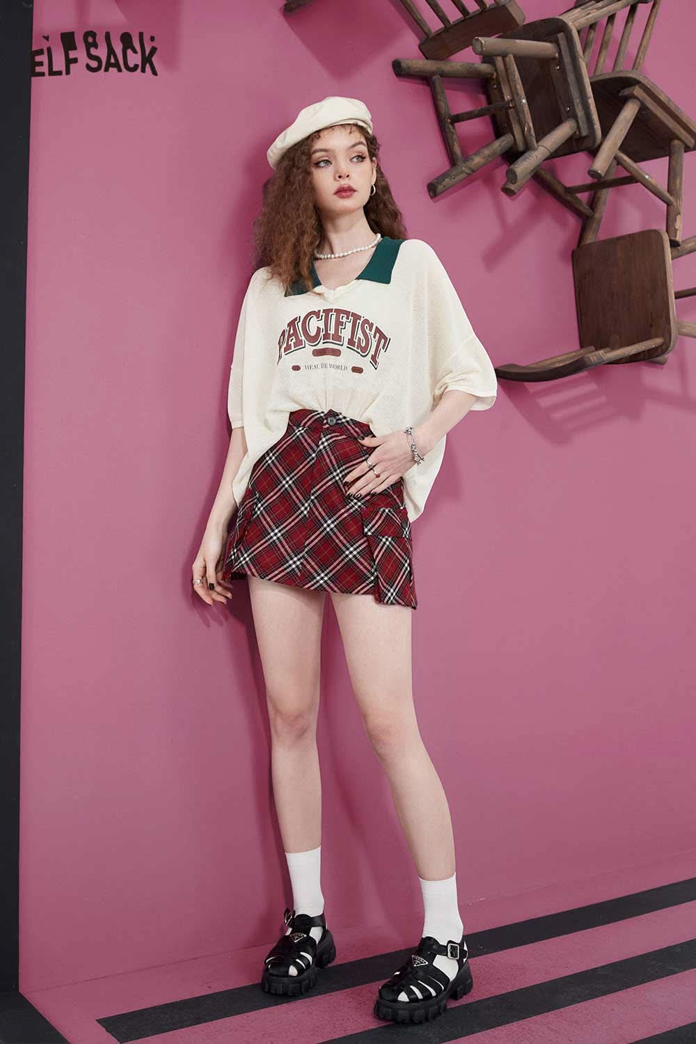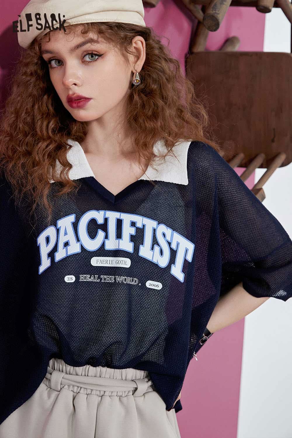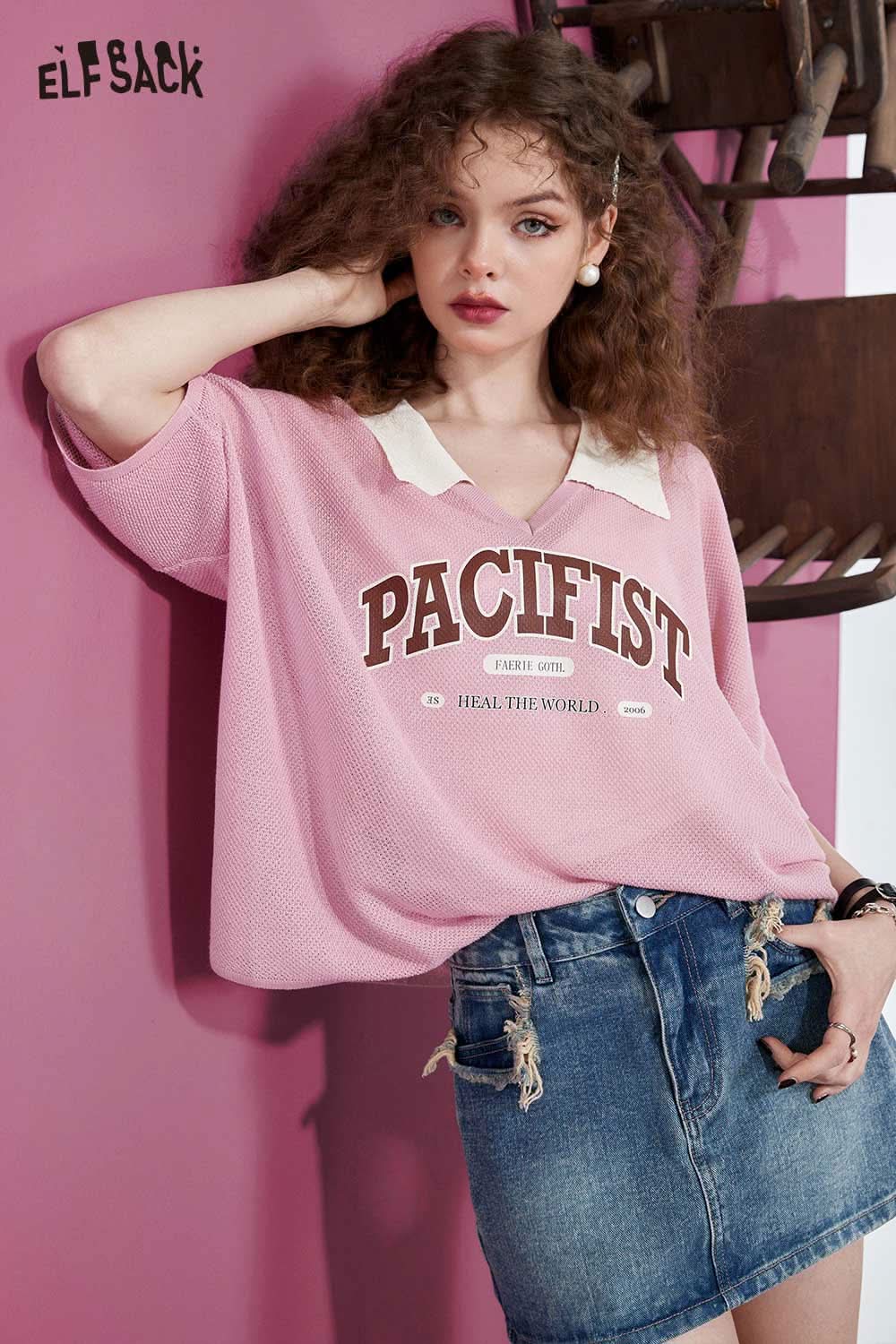 Breathable Solid V Neck Short Sleeve Polo Knitwear