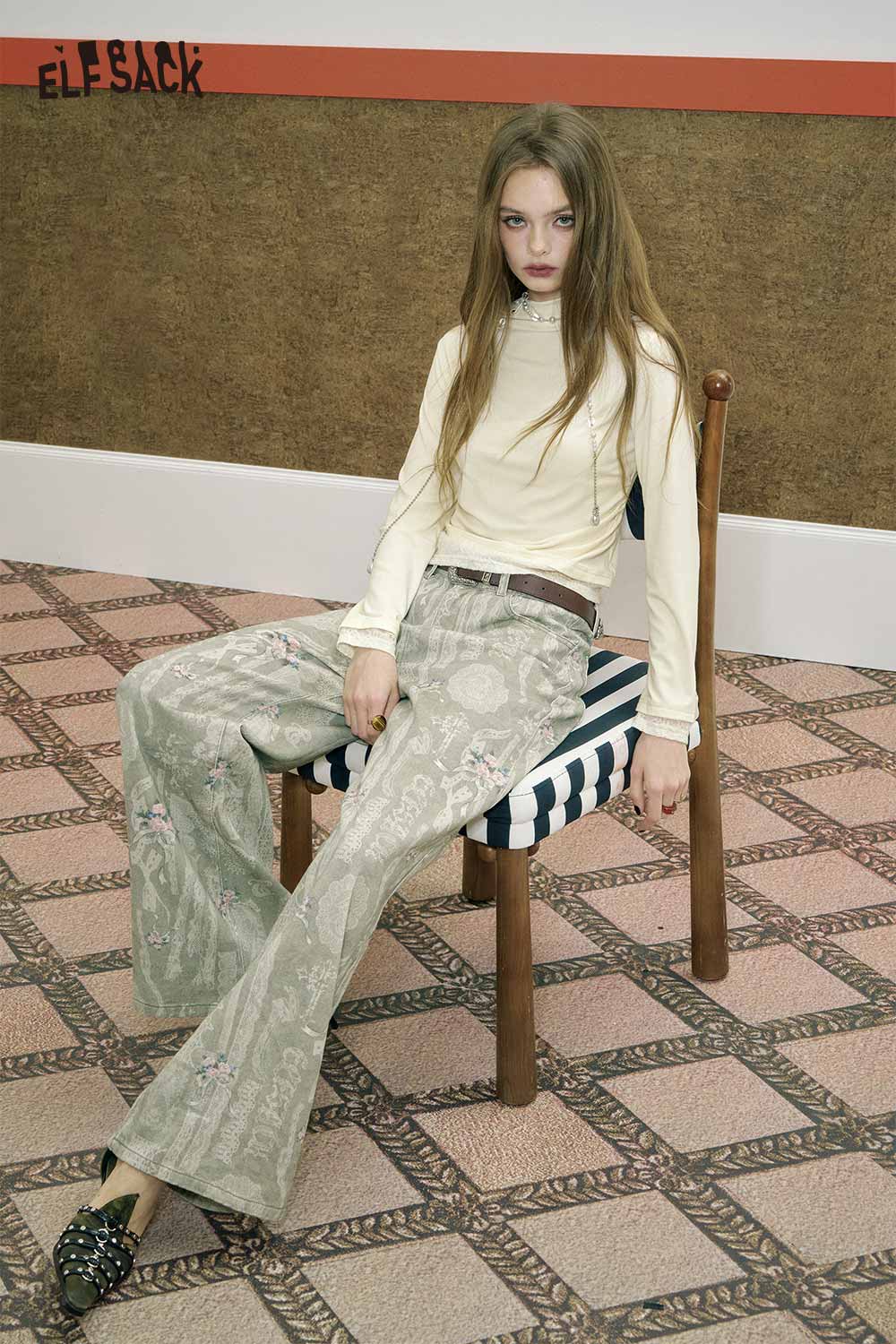 Viscose Blend Delicate Lace Panel Minimalist Design Long Sleeve Tee