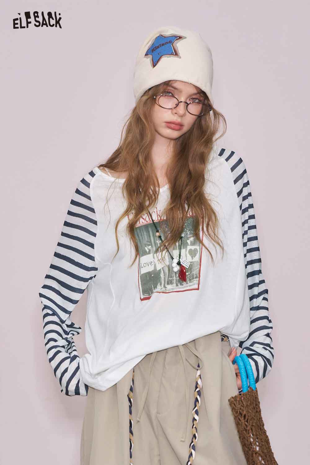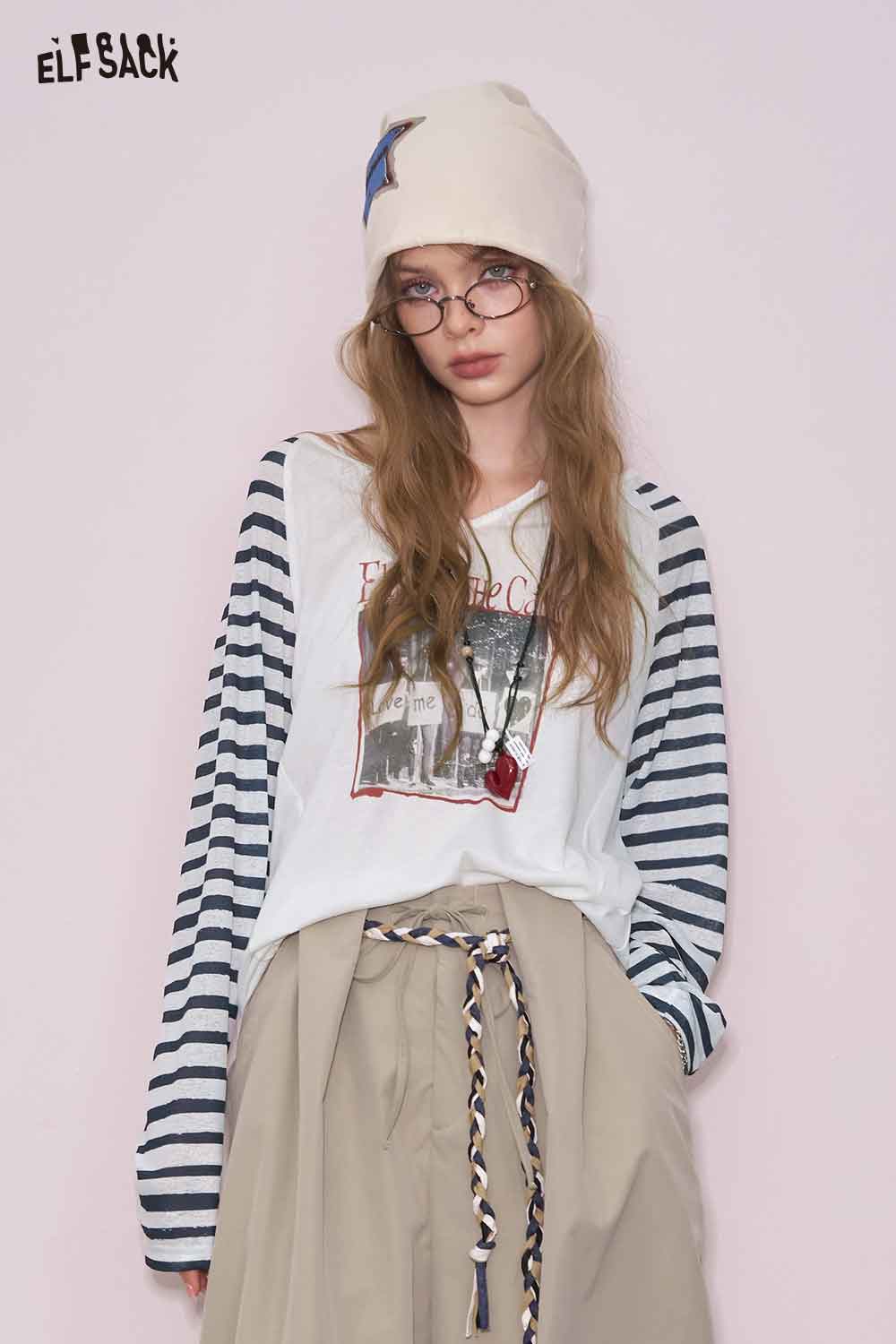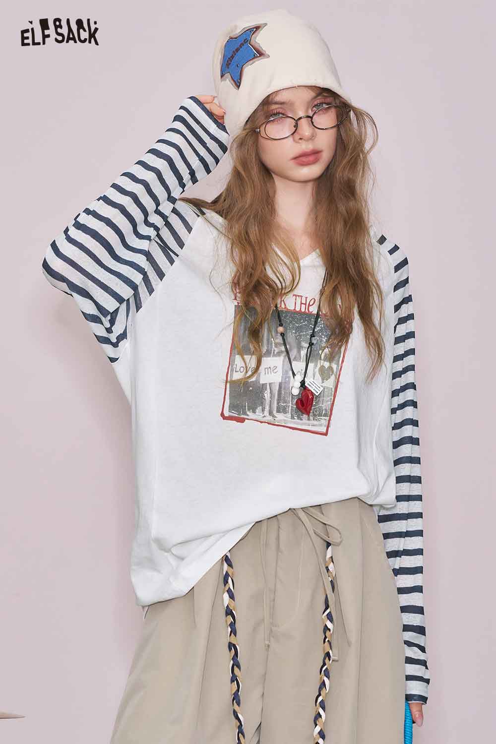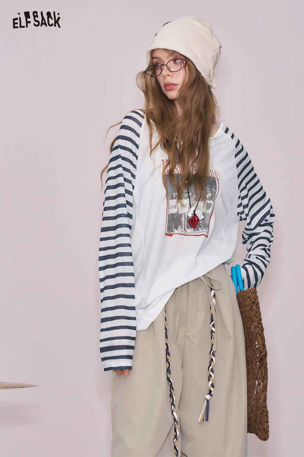 Cotton-Blend Loose Striped Long-Sleeved T-Shirt