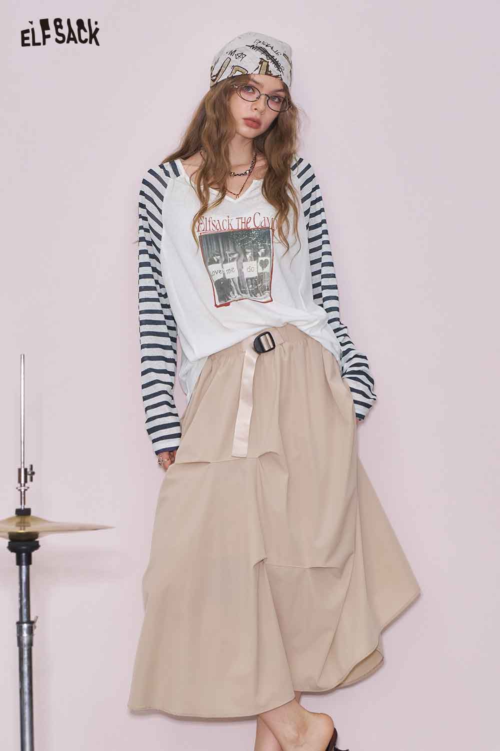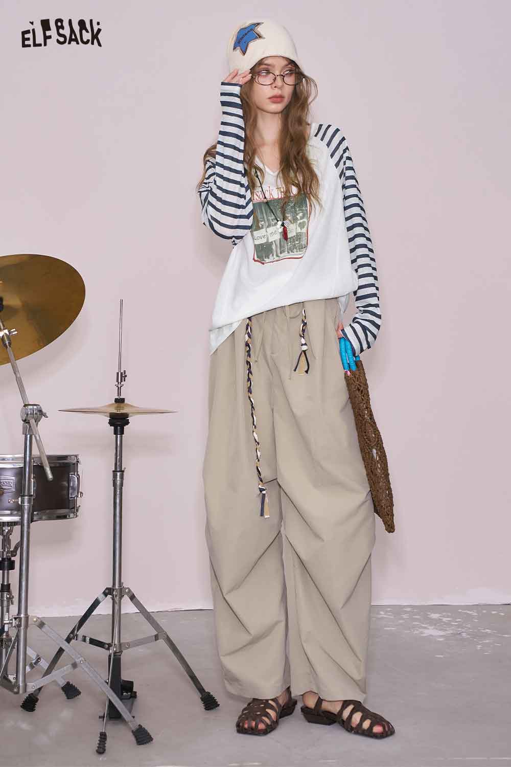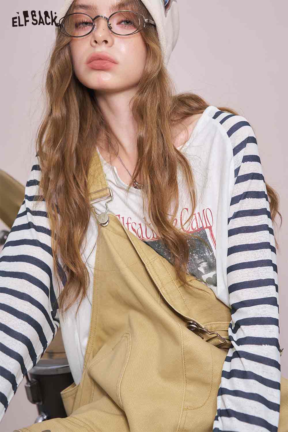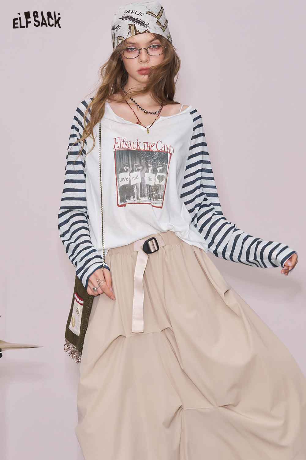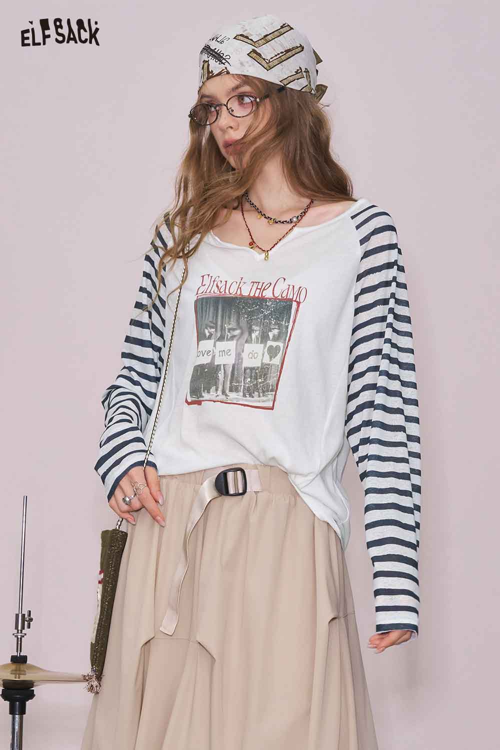 Cotton-Blend Loose Striped Long-Sleeved T-Shirt