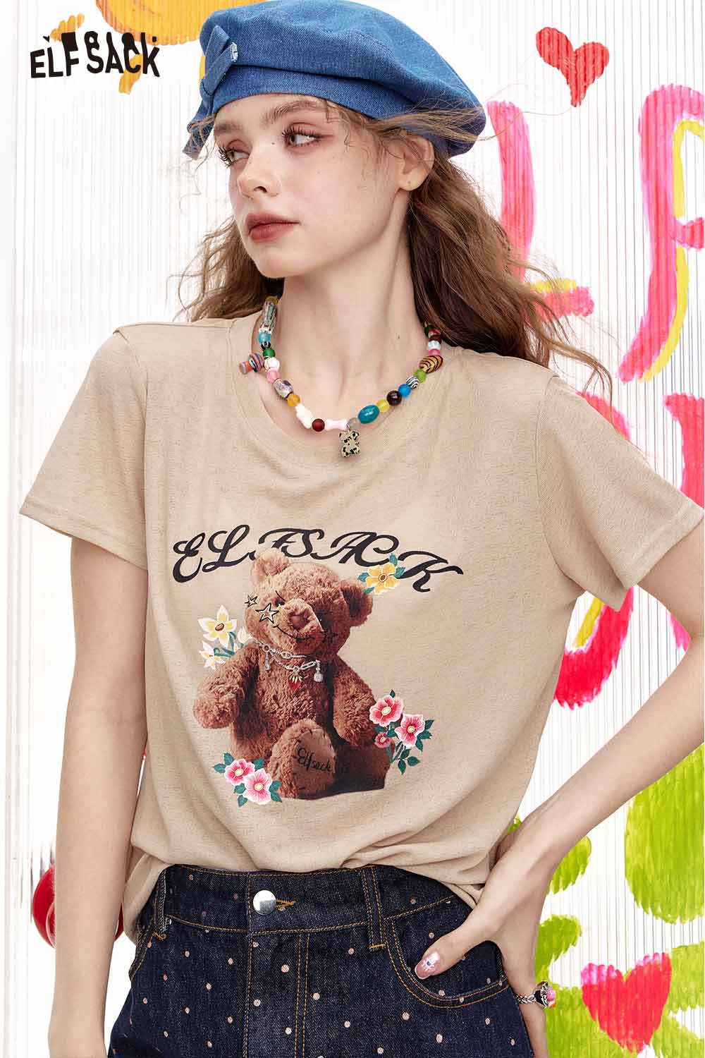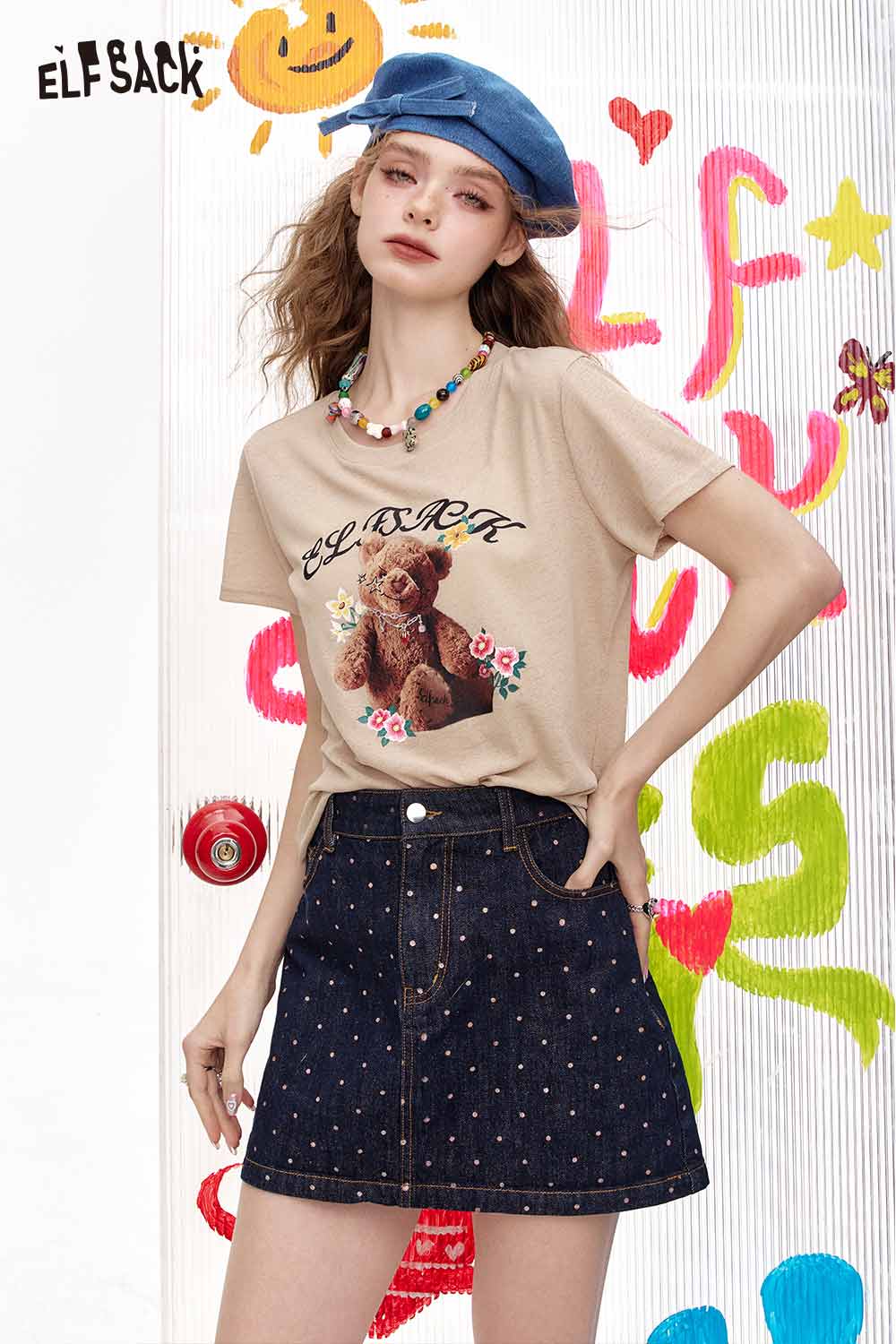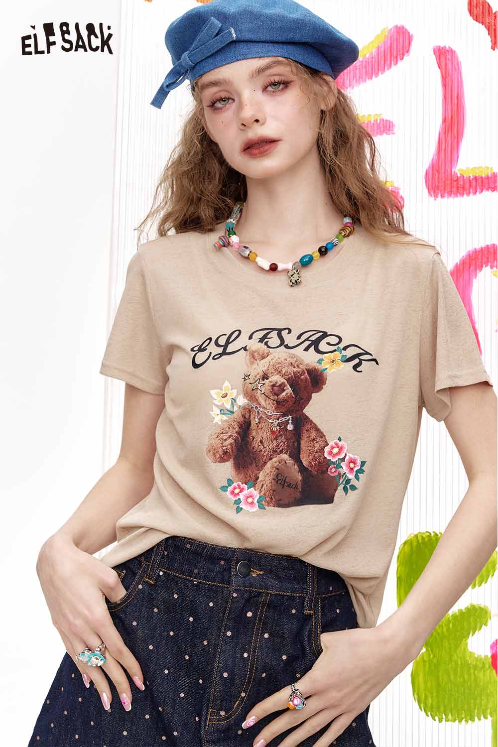 Bright Solid Animal Graphic Letter Graphic Short Sleeve Tshirt