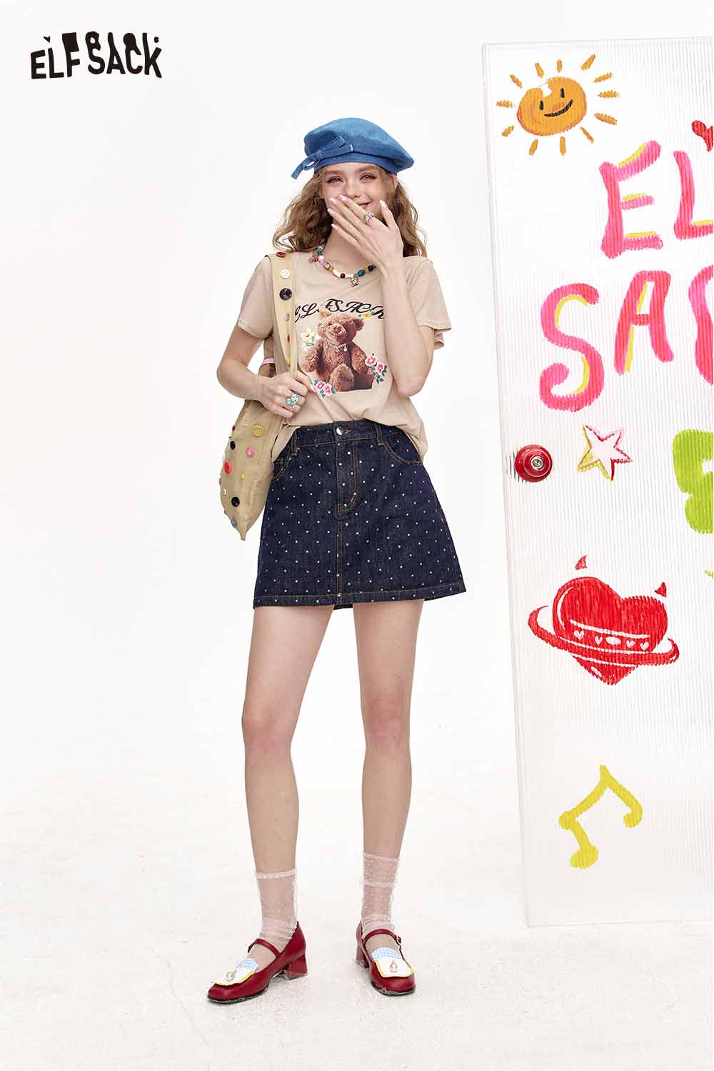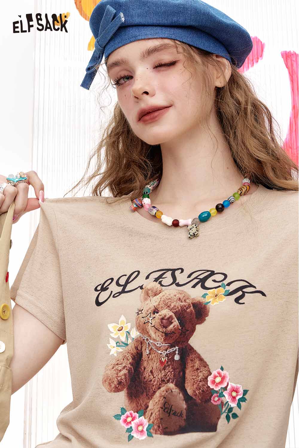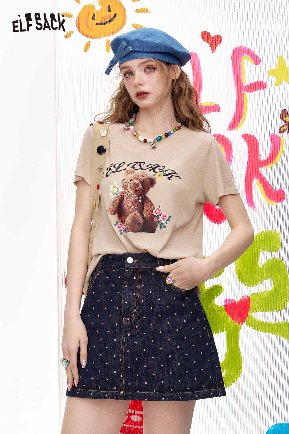 Bright Solid Animal Graphic Letter Graphic Short Sleeve Tshirt