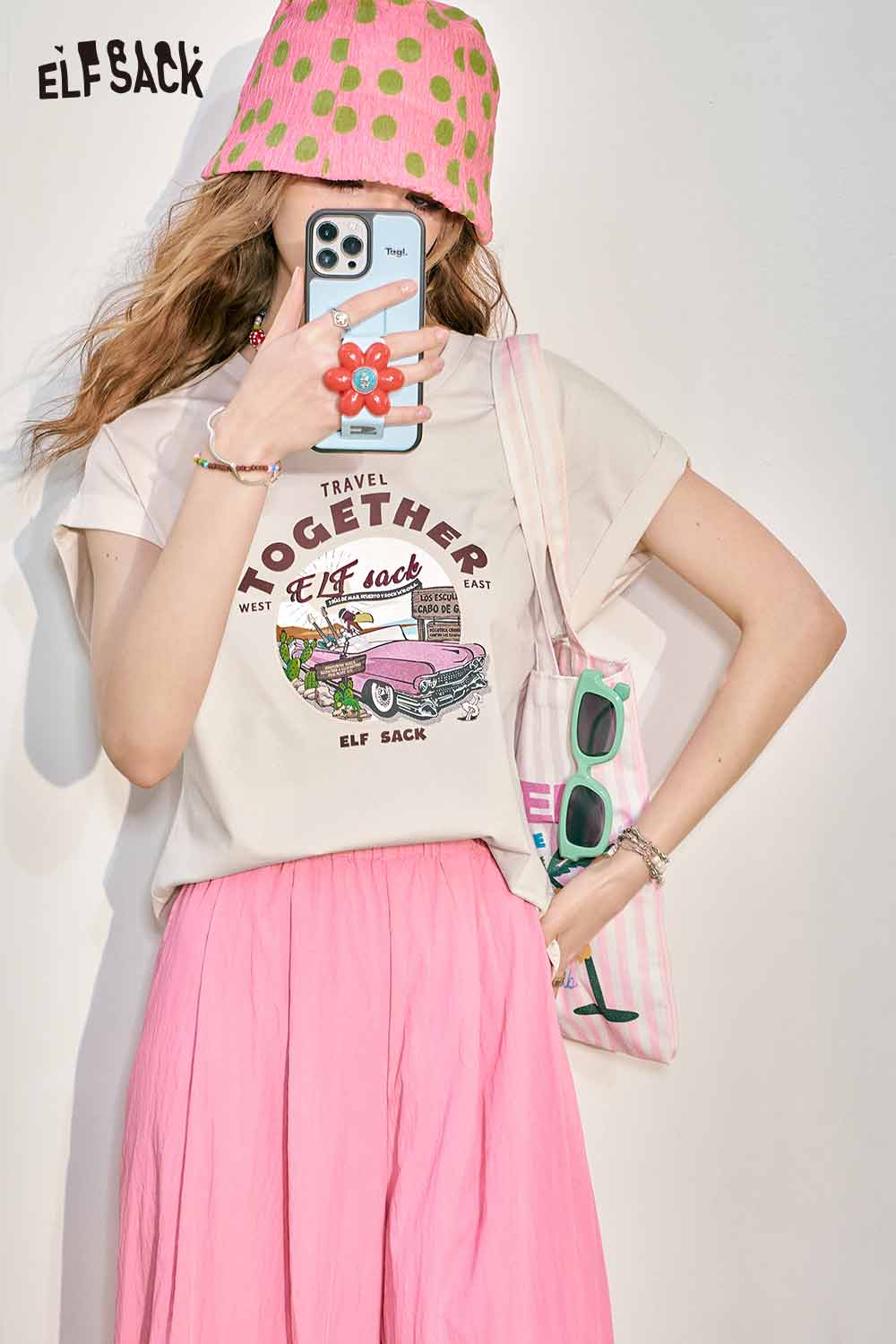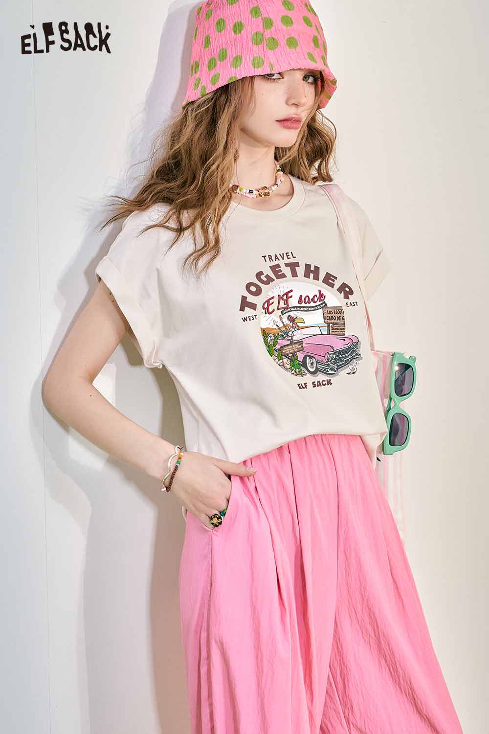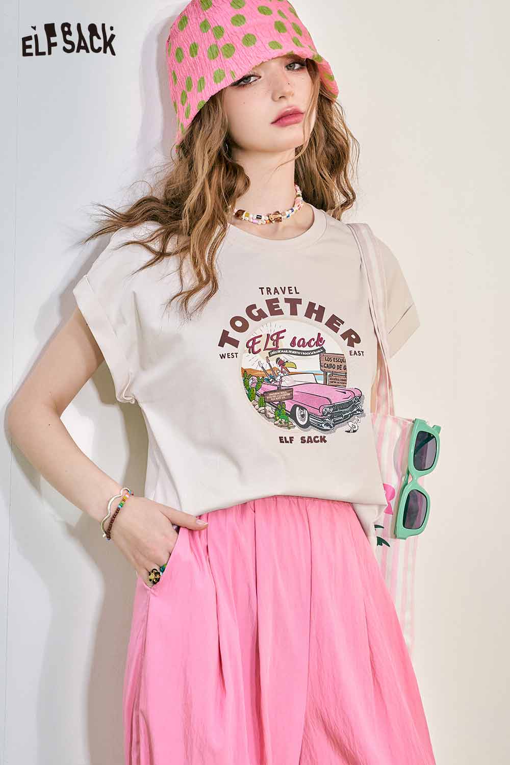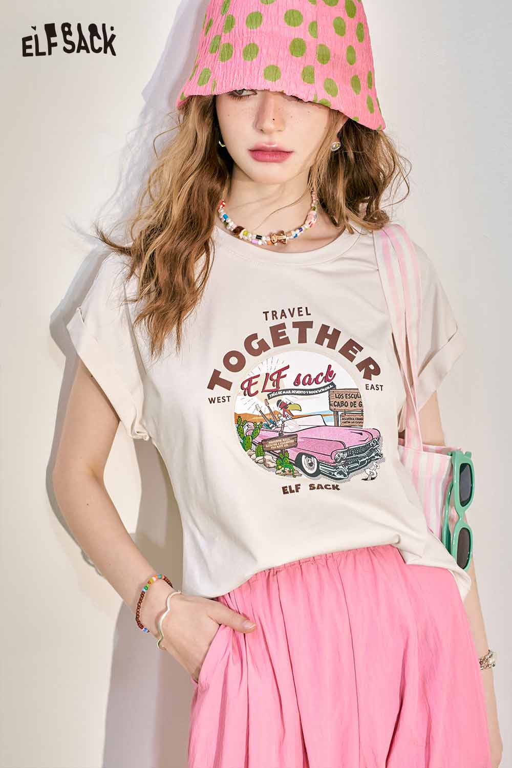 Cute Pink Graphic Short Sleeve Slim Design Tshirt