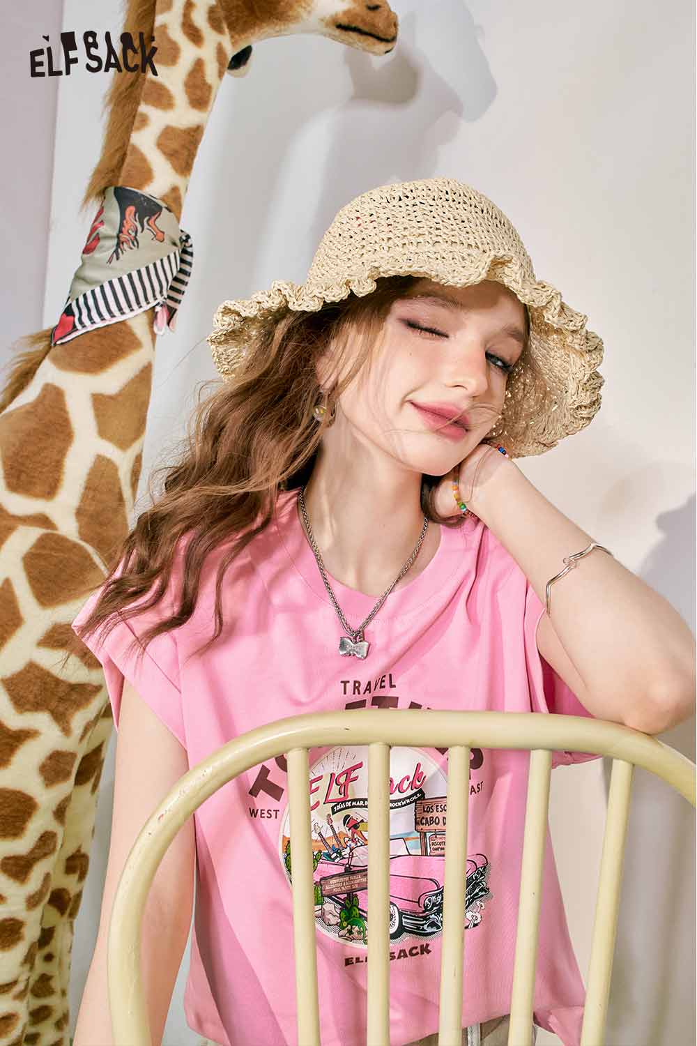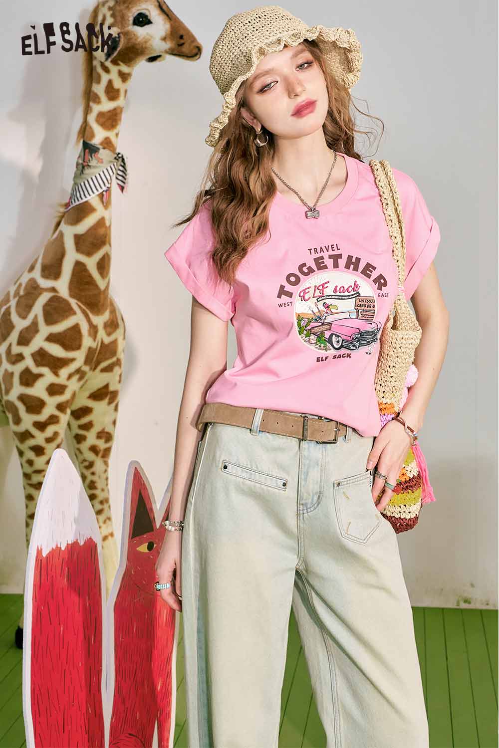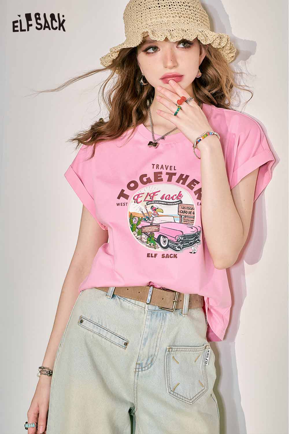 Cute Pink Graphic Short Sleeve Slim Design Tshirt