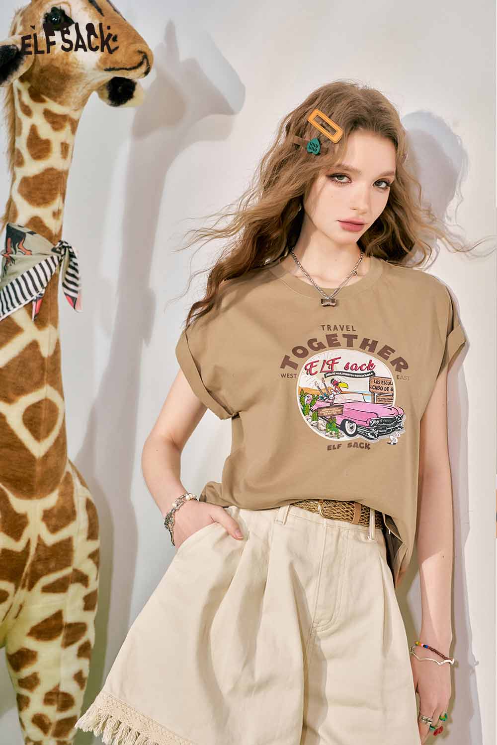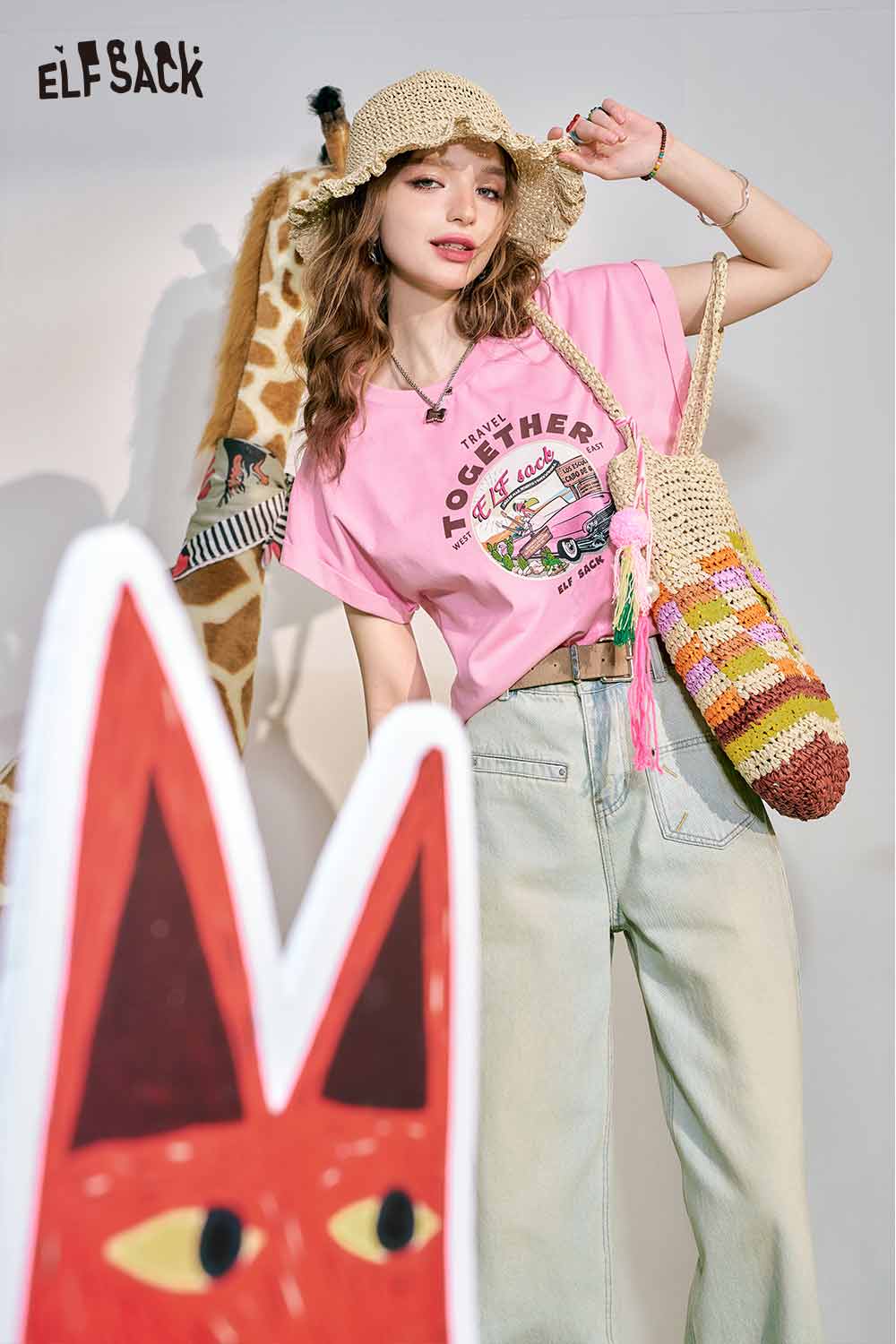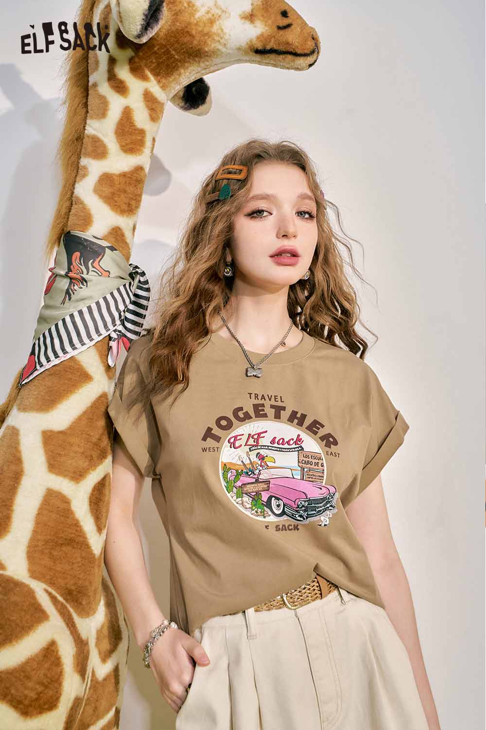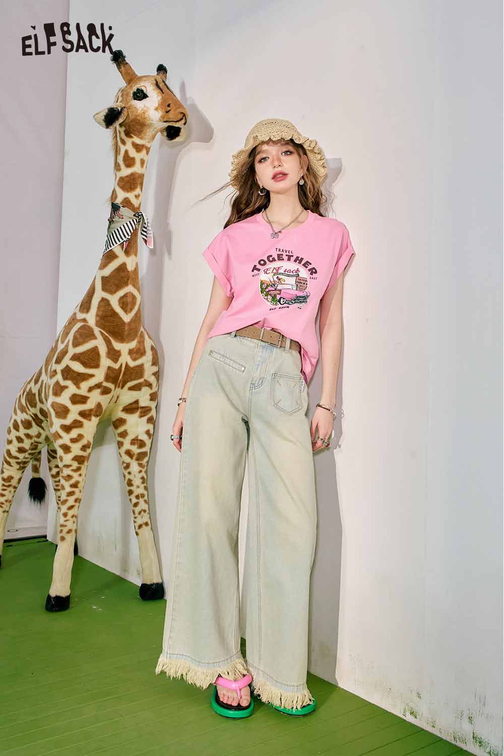 Cute Pink Graphic Short Sleeve Slim Design Tshirt