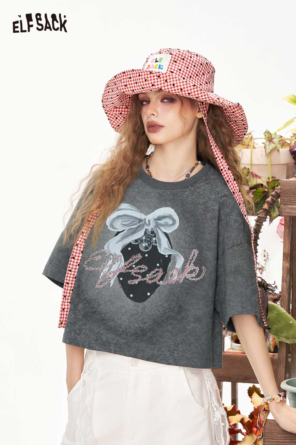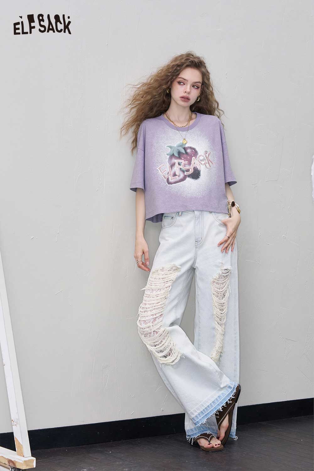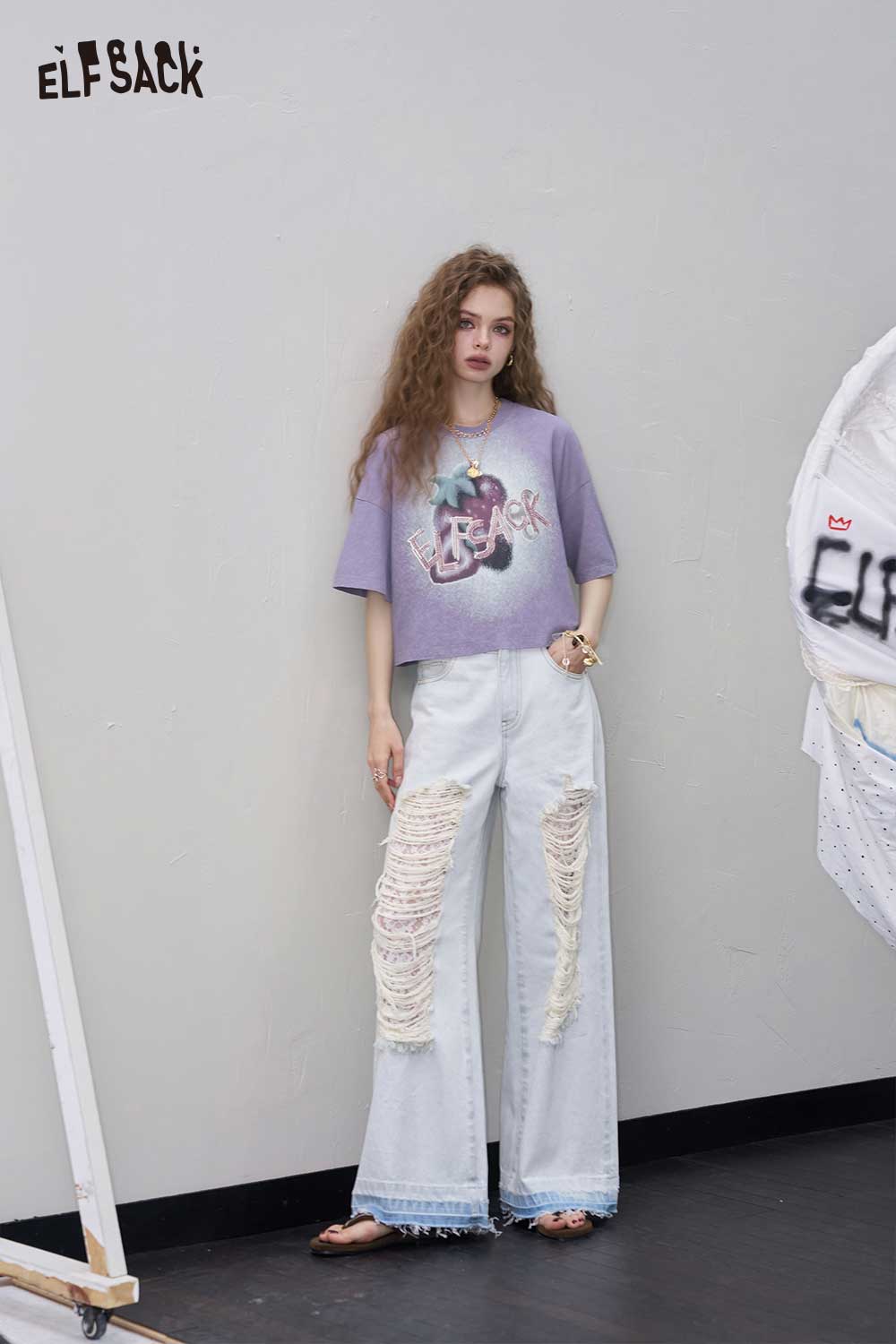 Distressed Loose Graphic Cropped Short Sleeve Tshirt