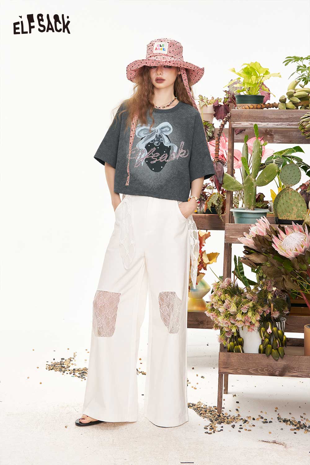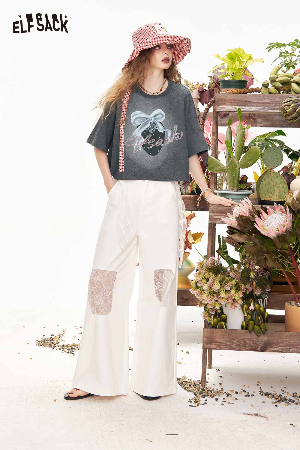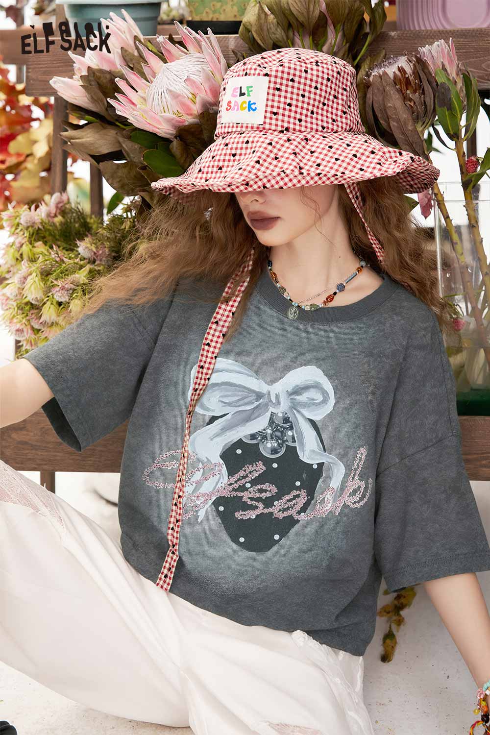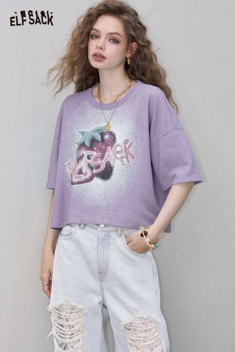 Distressed Loose Graphic Cropped Short Sleeve Tshirt