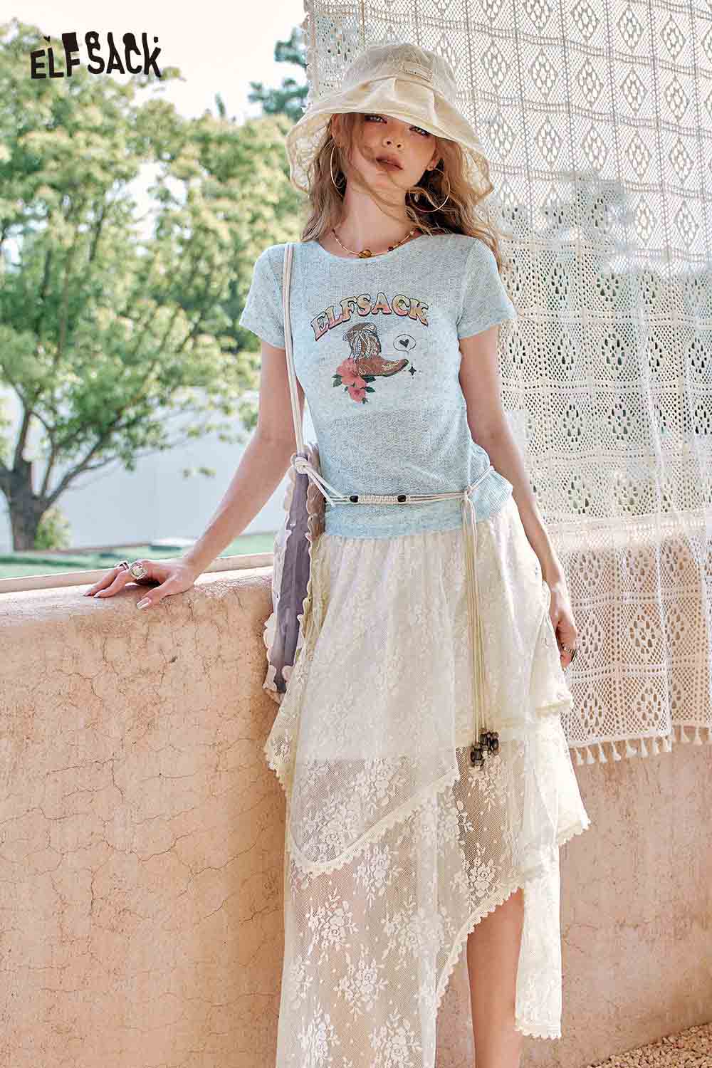 Solid Graphic Print Knit Short Sleeve Tee Slim Fit