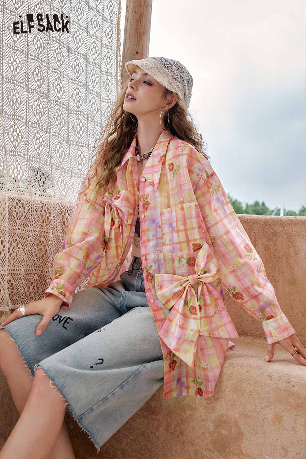 Cute 3D Bow Dopamine Long Sleeve Design Blouse