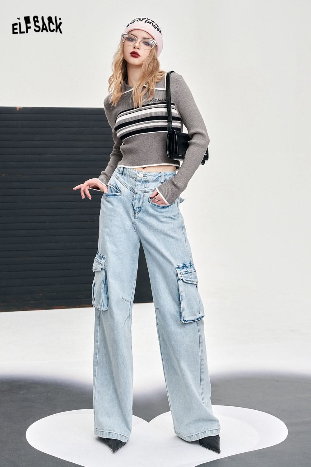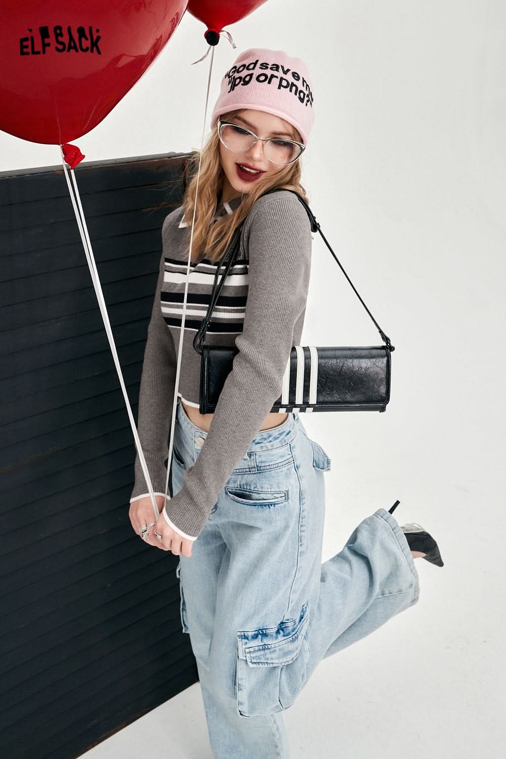grey hollow alphabet printing lapel women's knitwears thin versatile pullover cropped tops academic style fashion tops