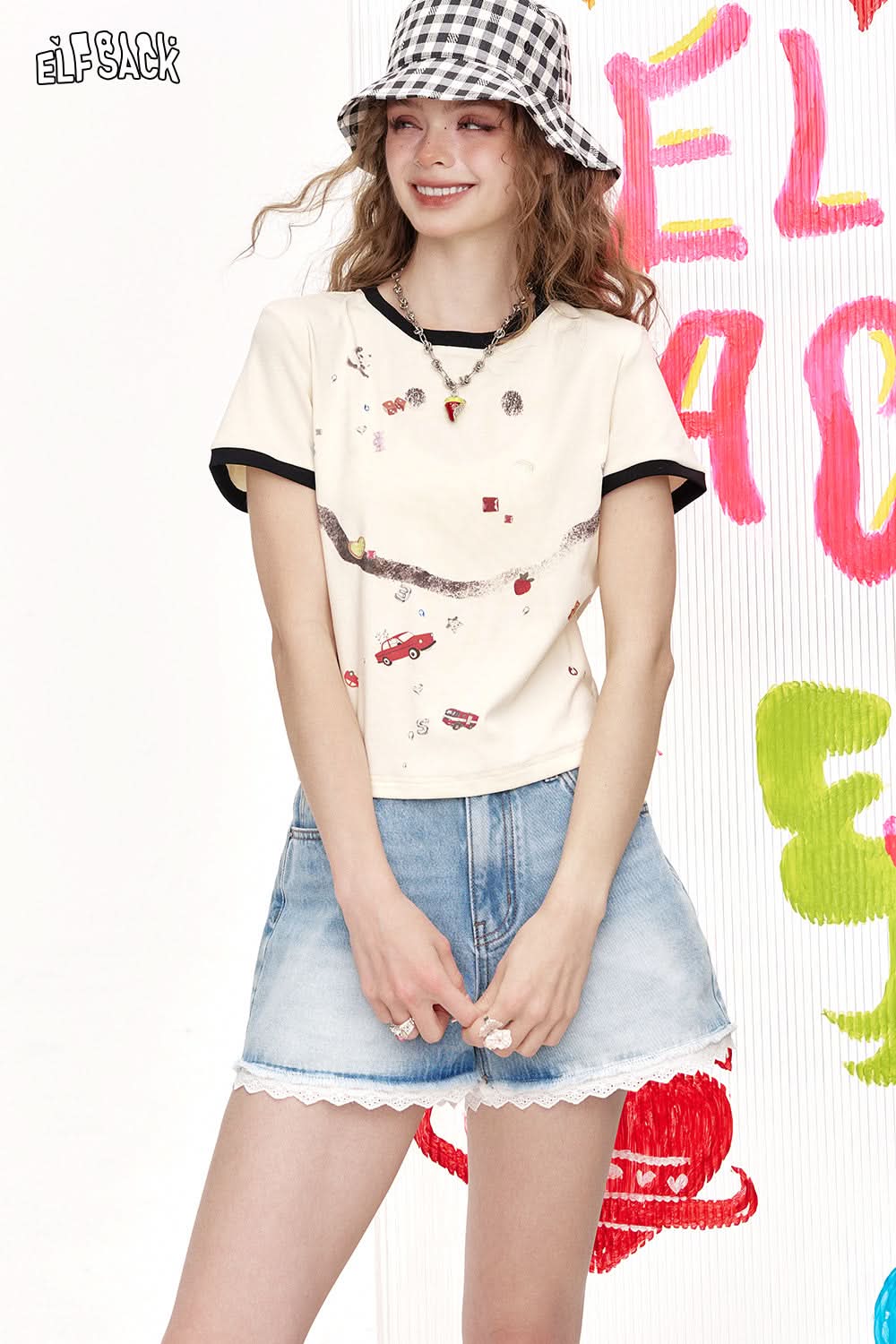 Smiling Printed Short Sleeved Chic T-Shirt
