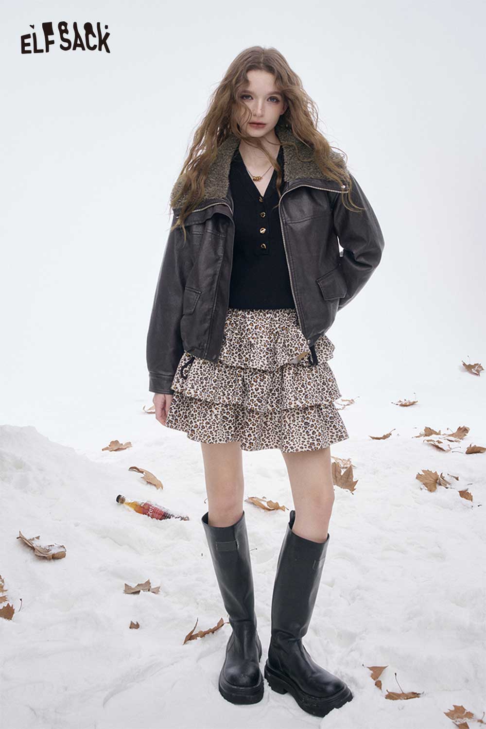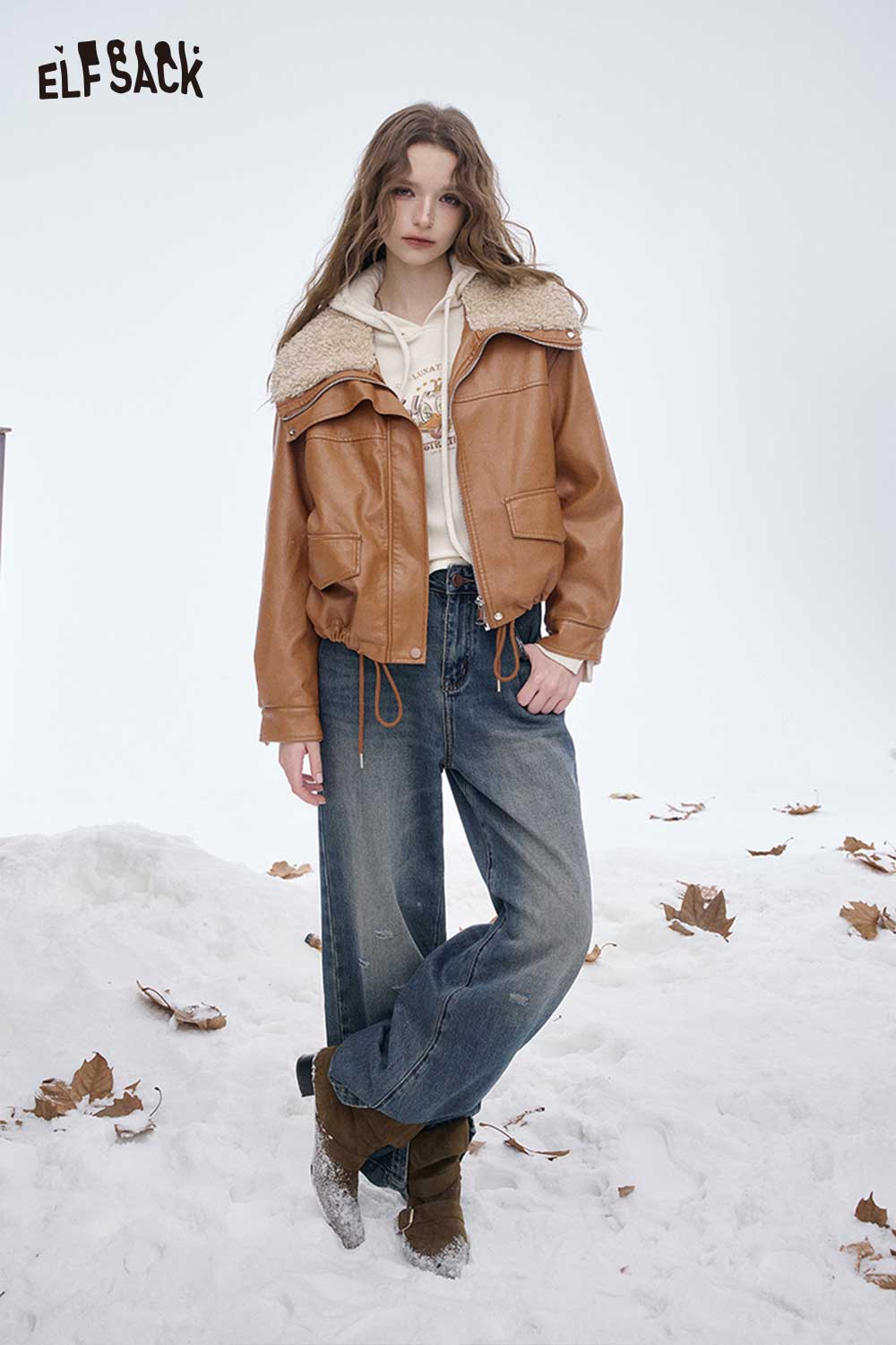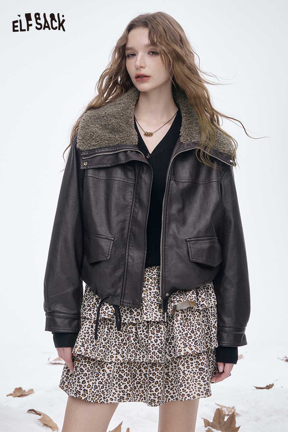 Light Plush Lining Lapel Leather Jacket