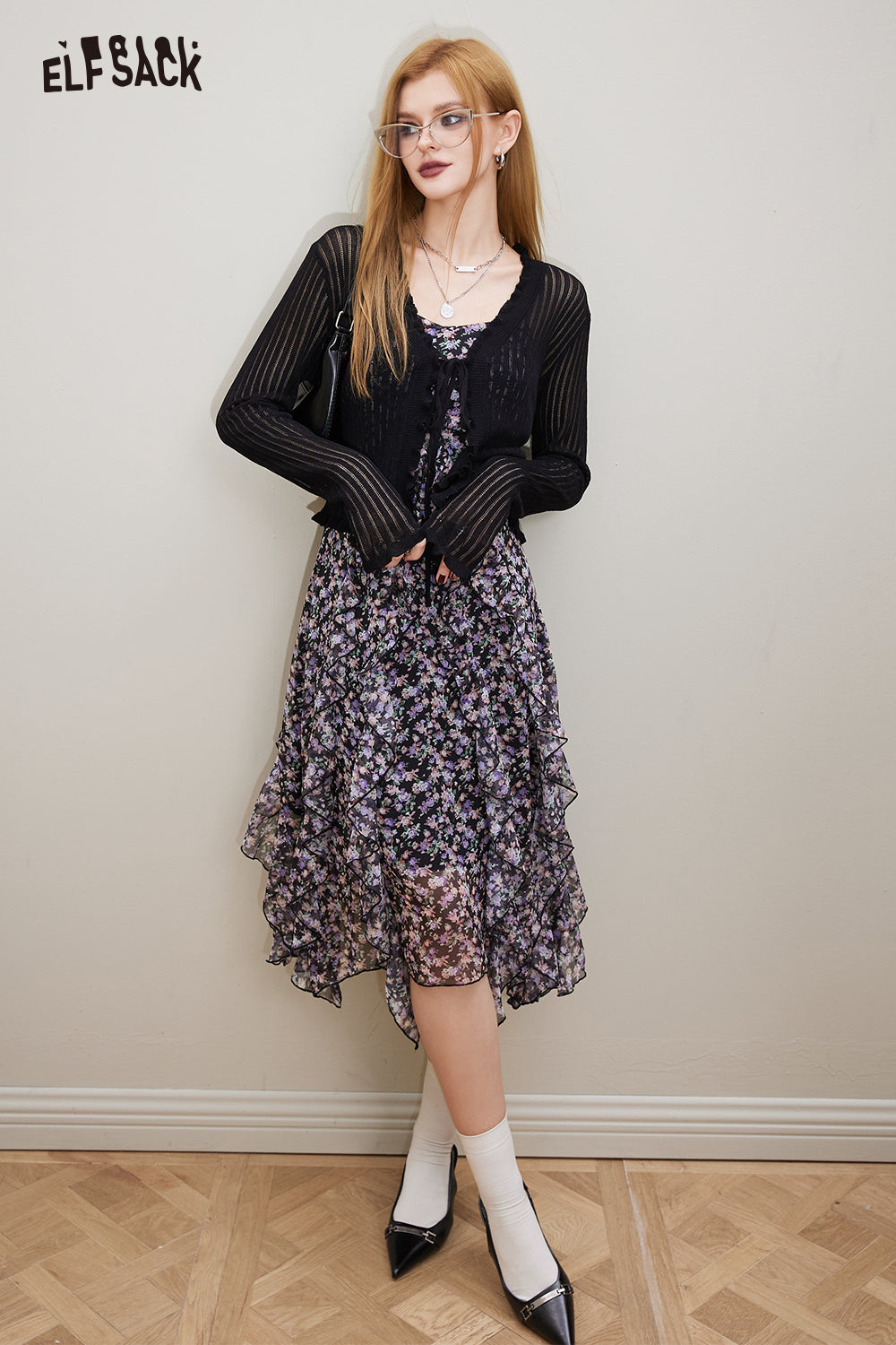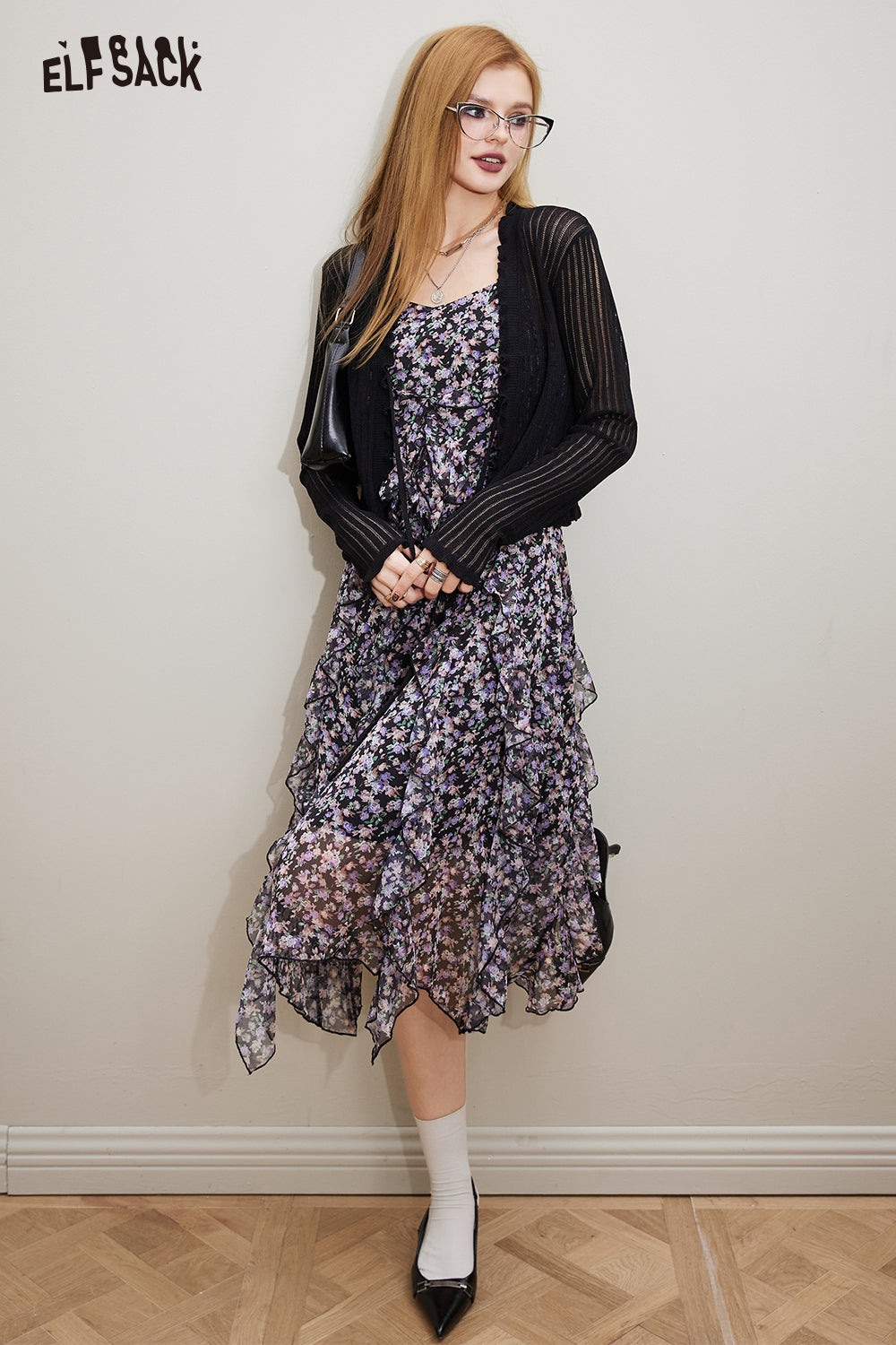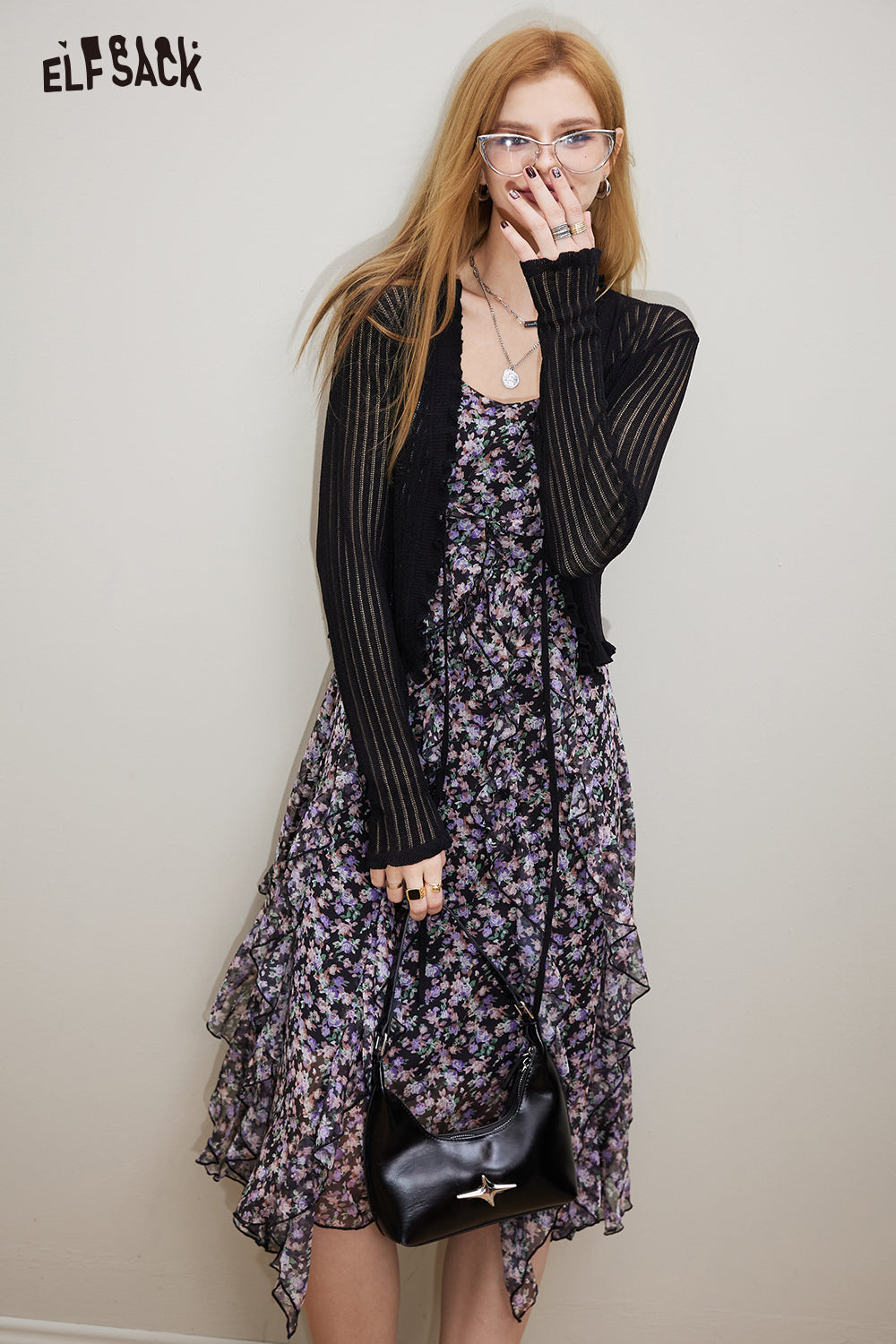 Floral Chiffon Slip Dress Knit Cardigan Set