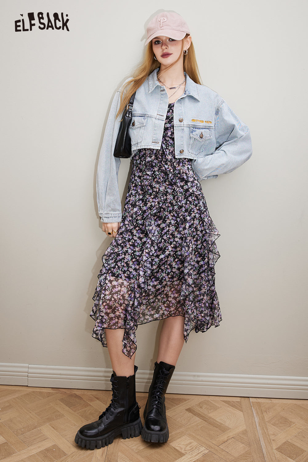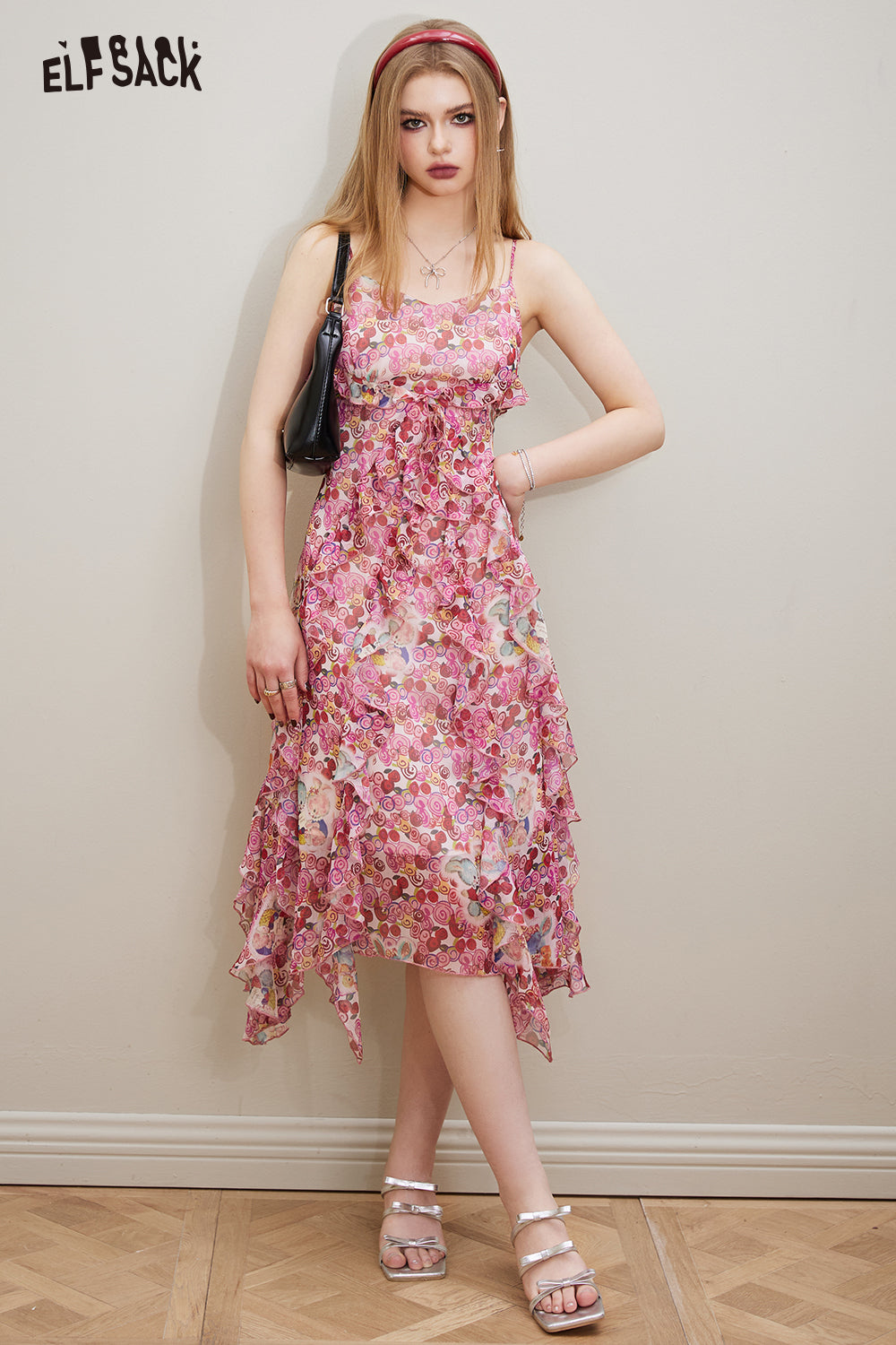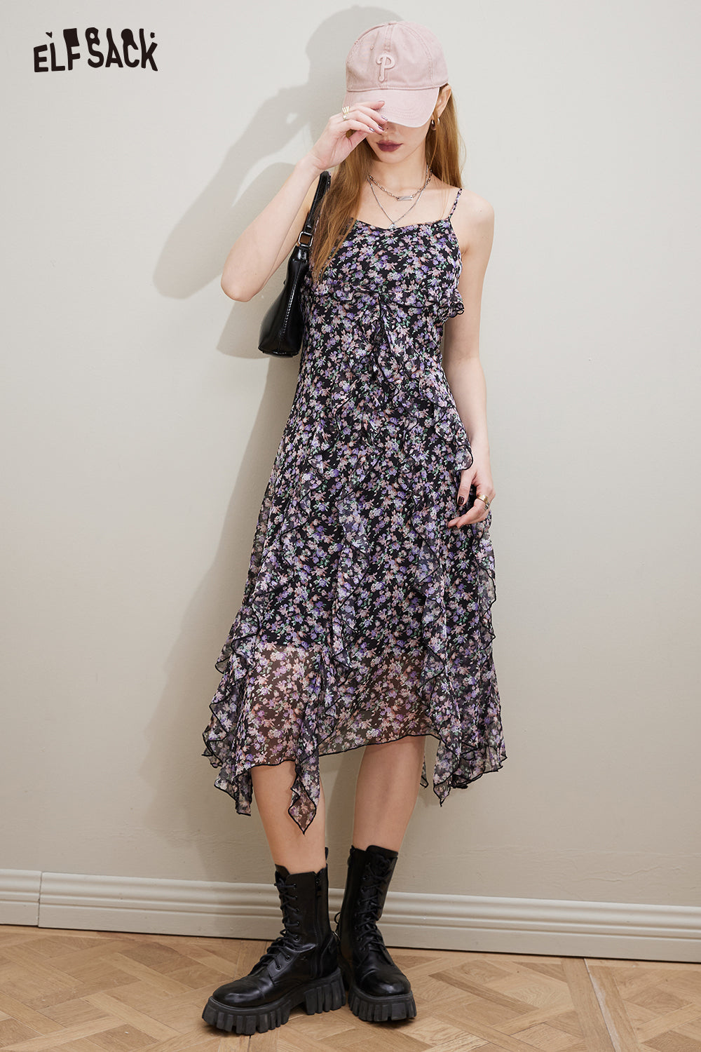 Floral Chiffon Slip Dress Knit Cardigan Set