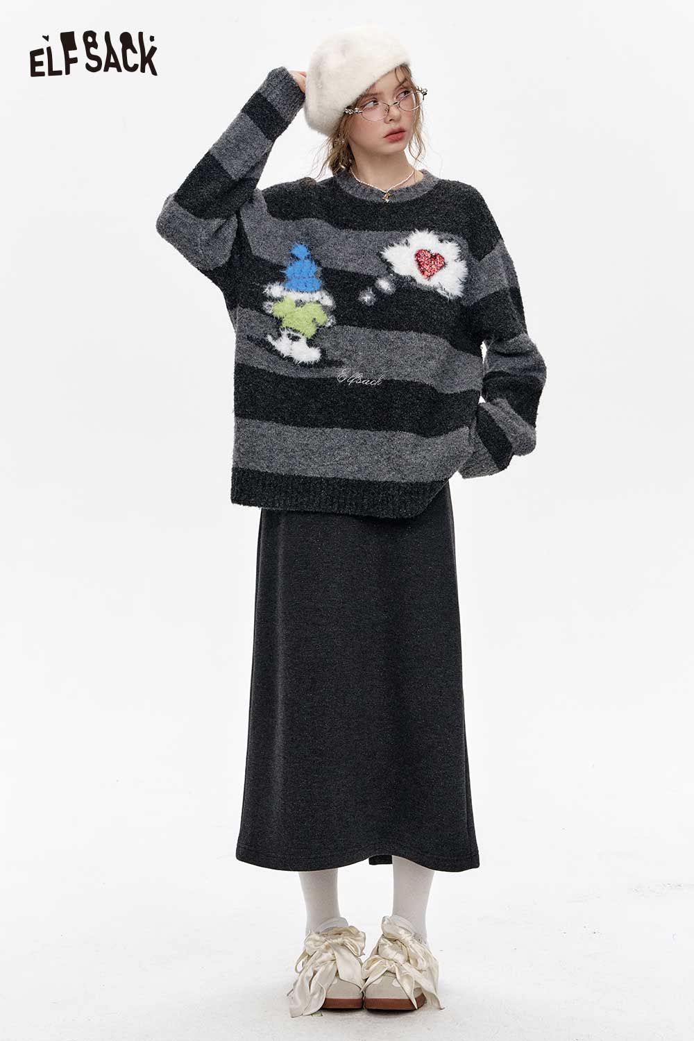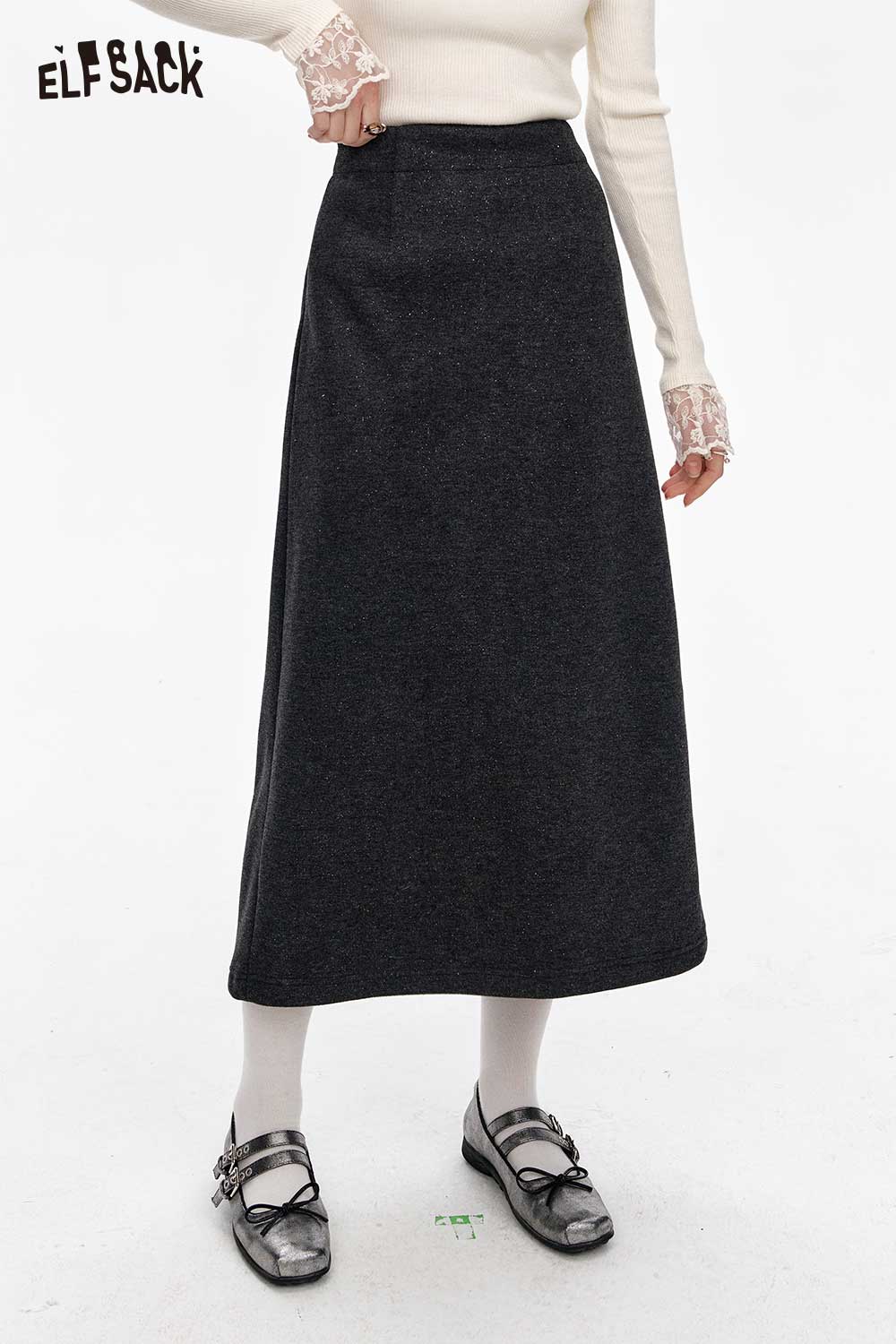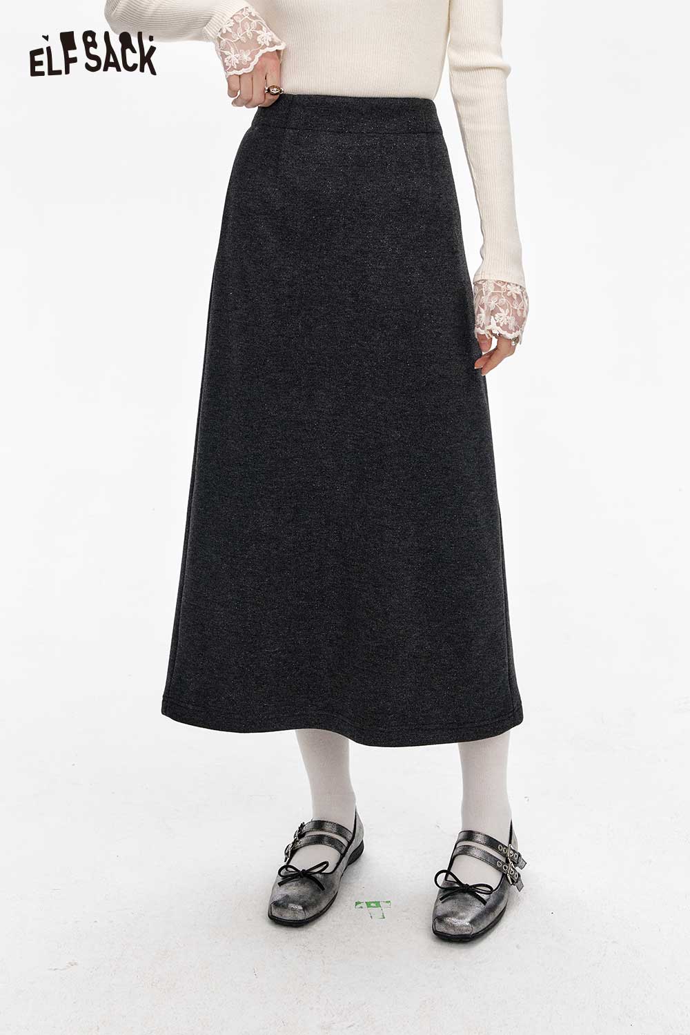 Gray High Waist A Line Versatile Office Split Long Skirt