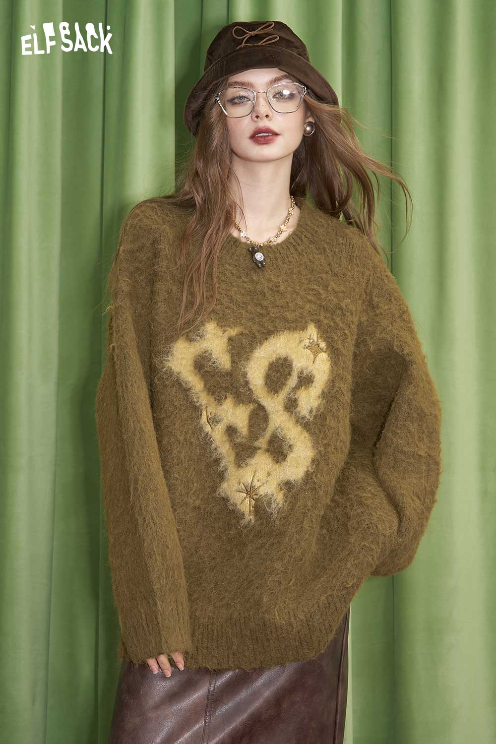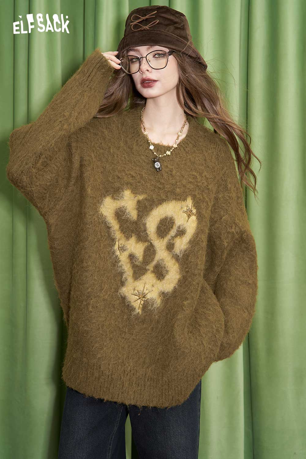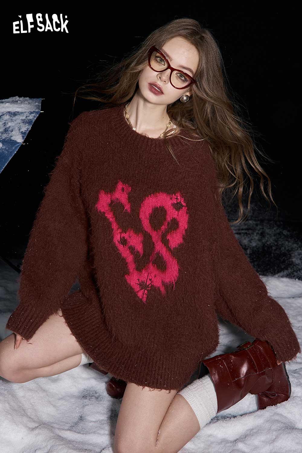 Letter Jacquard Wool Blend Sweater