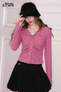 Minimalist Loose Solid Cropped Design Neckline Sparkle Sweater