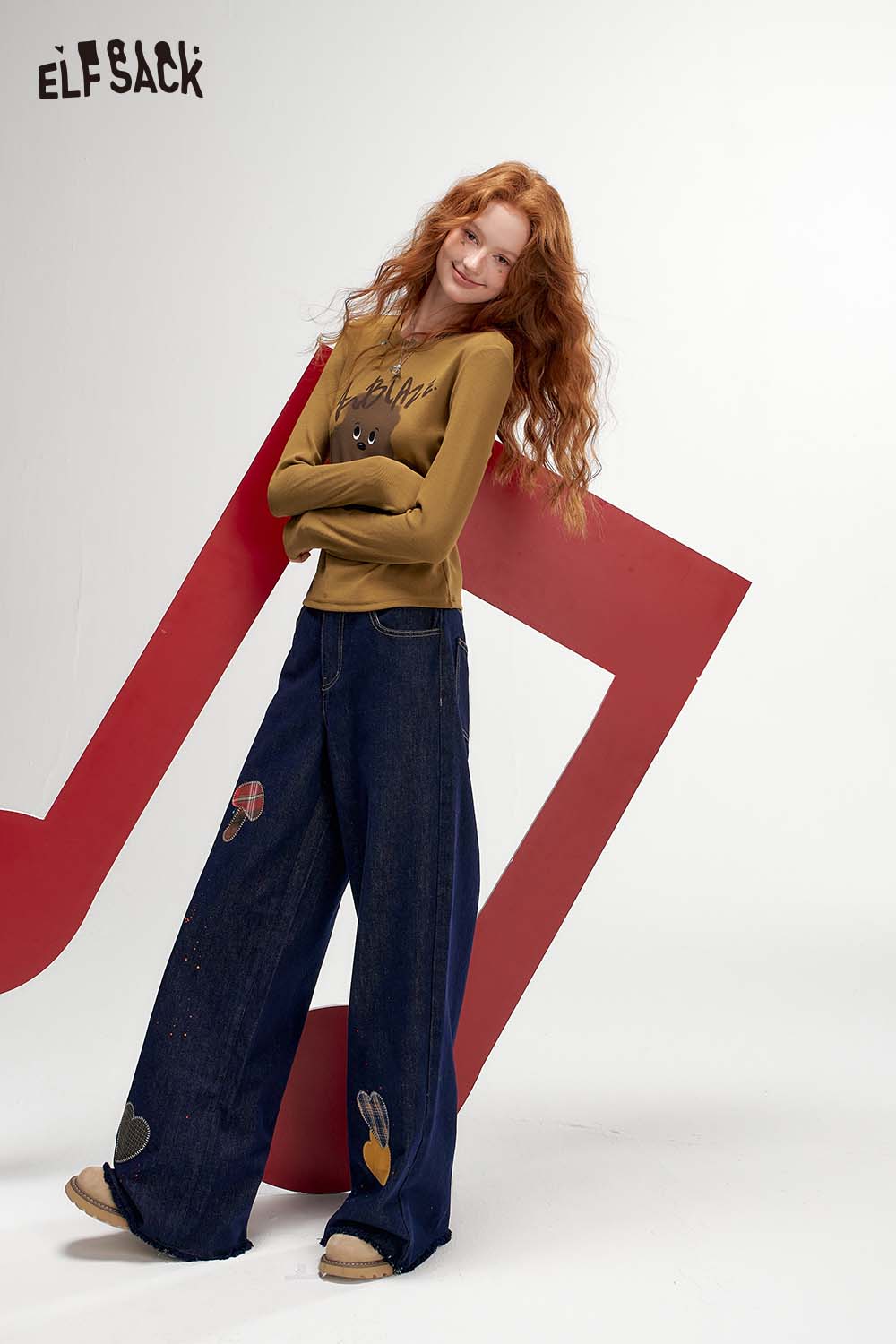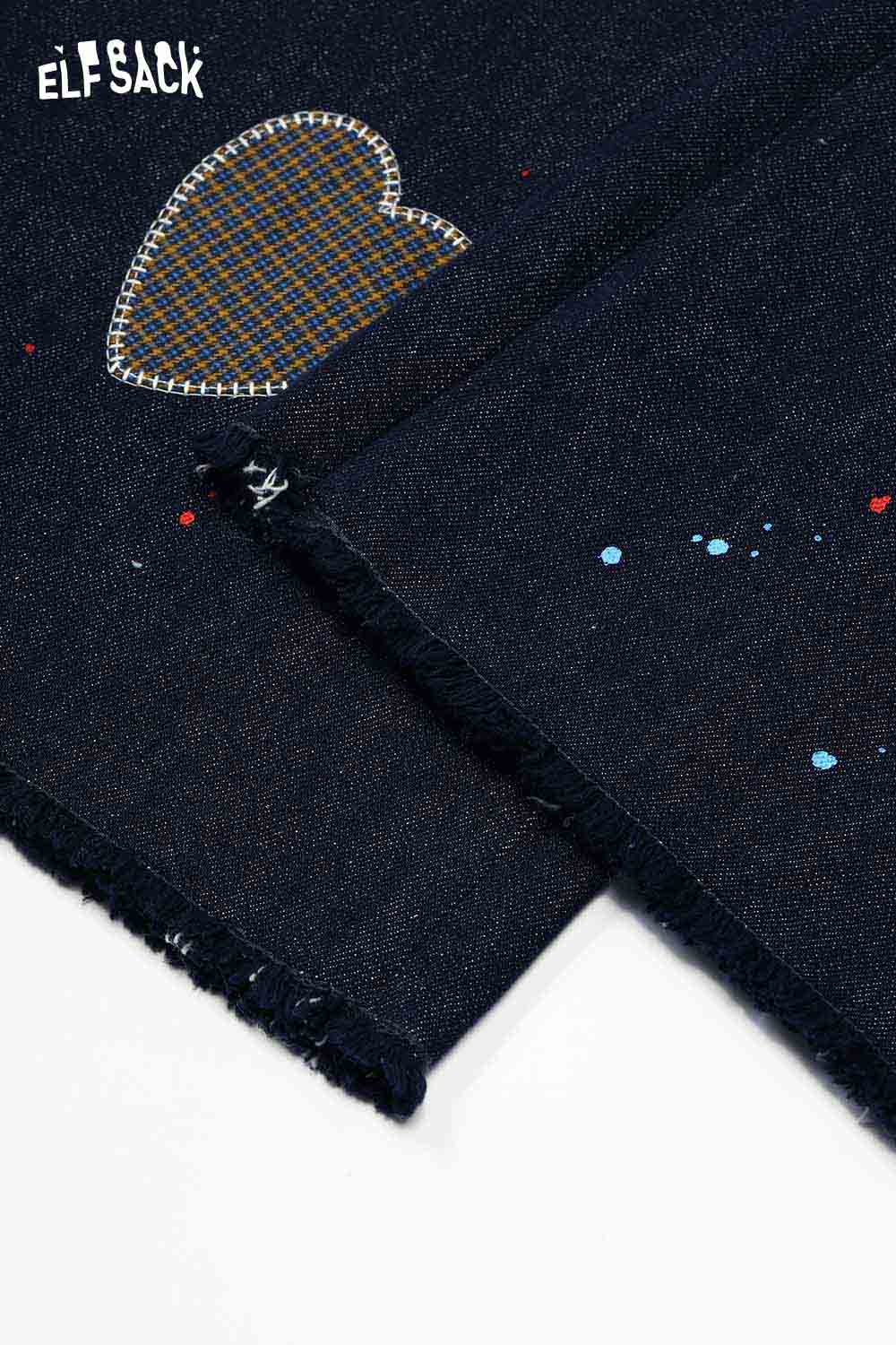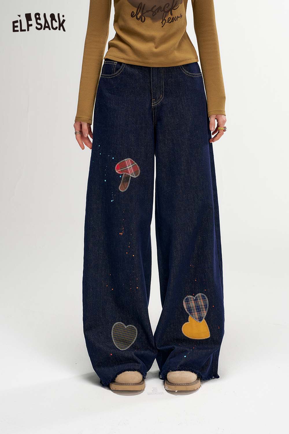 Raw Edge Graphic Wide Leg Straight Floor Length Jeans