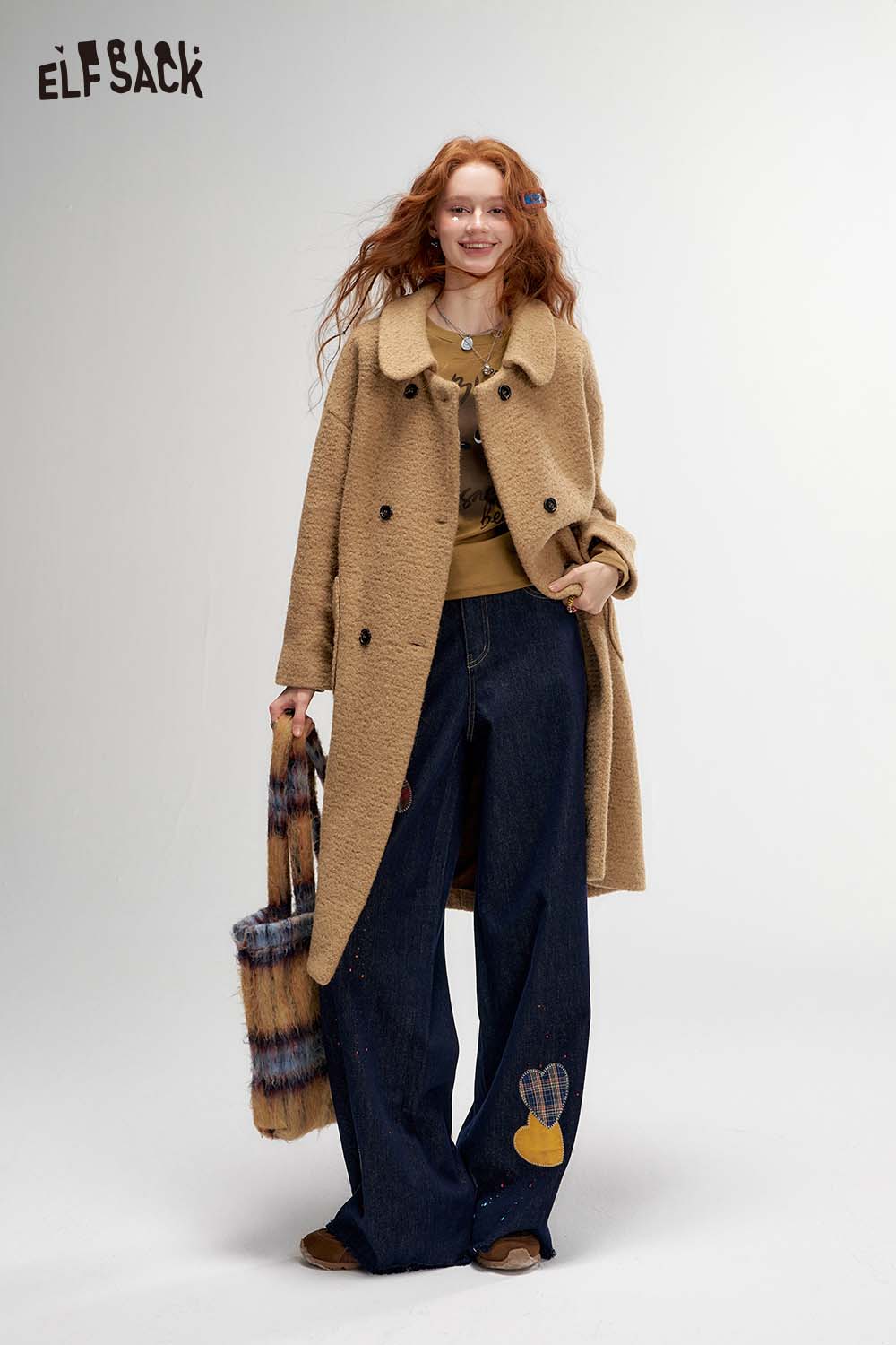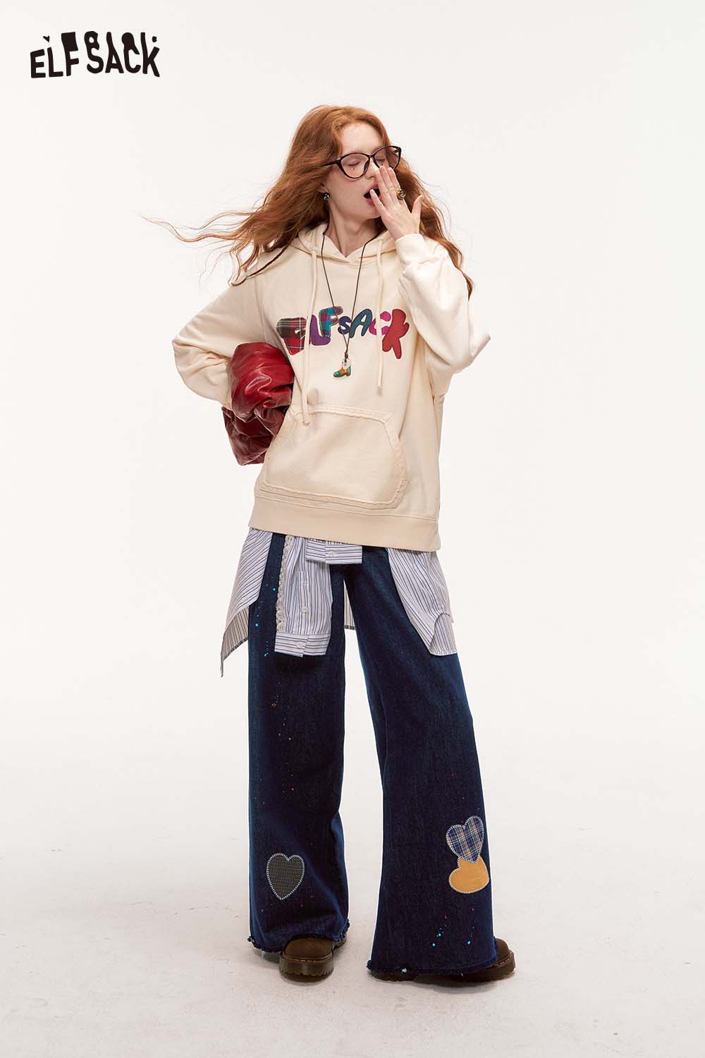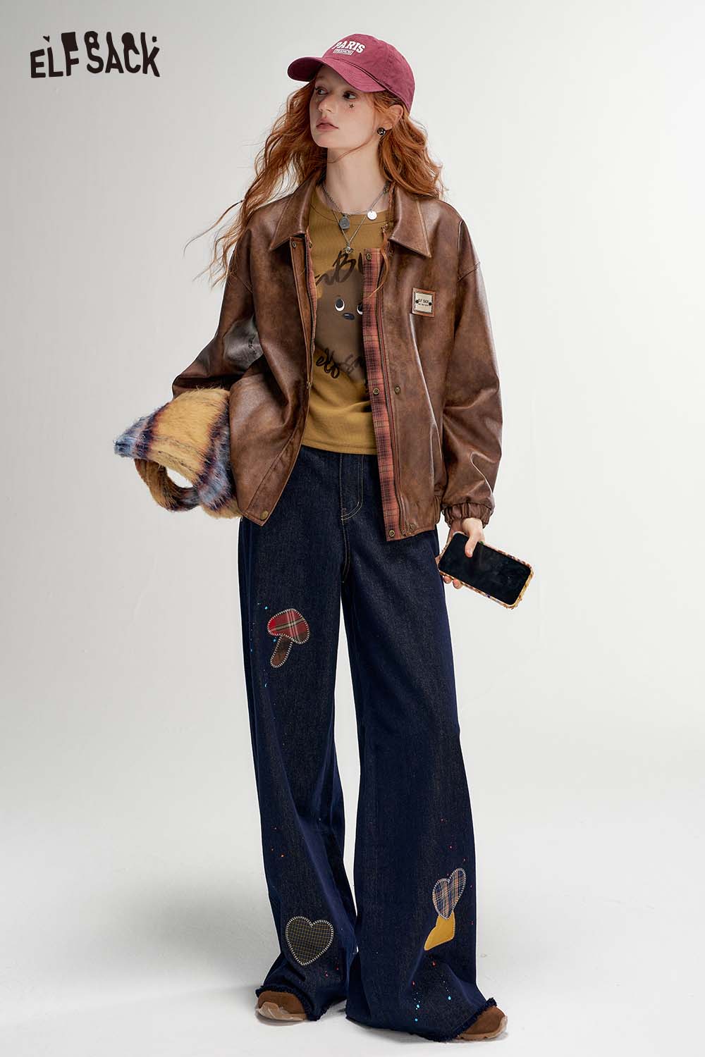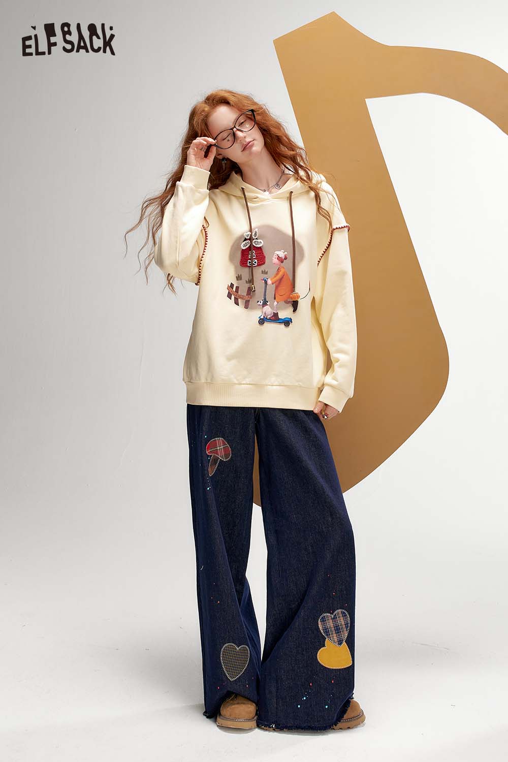 Raw Edge Graphic Wide Leg Straight Floor Length Jeans