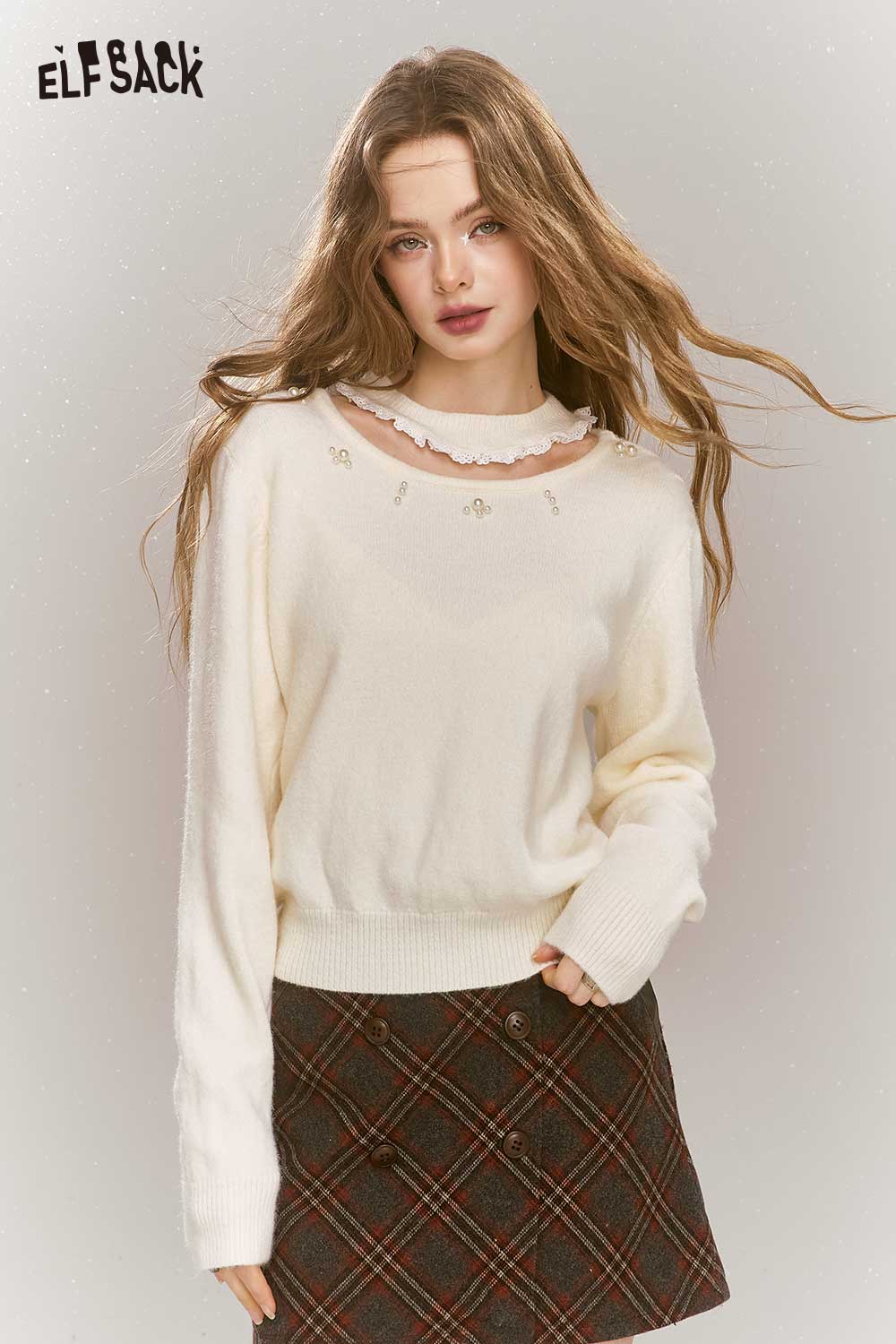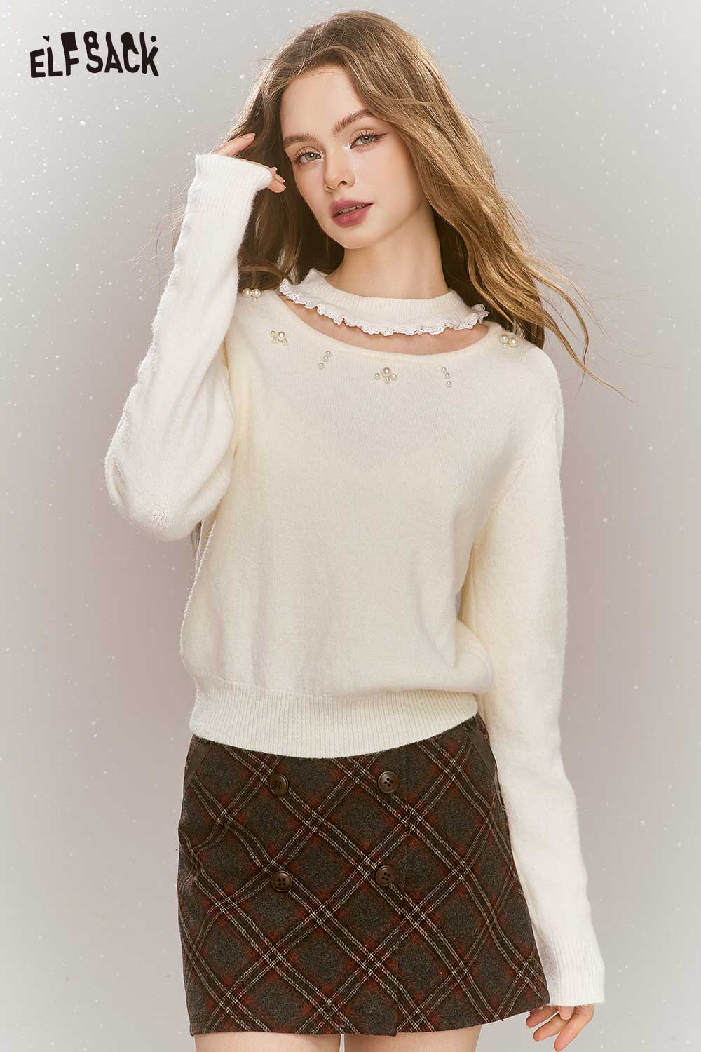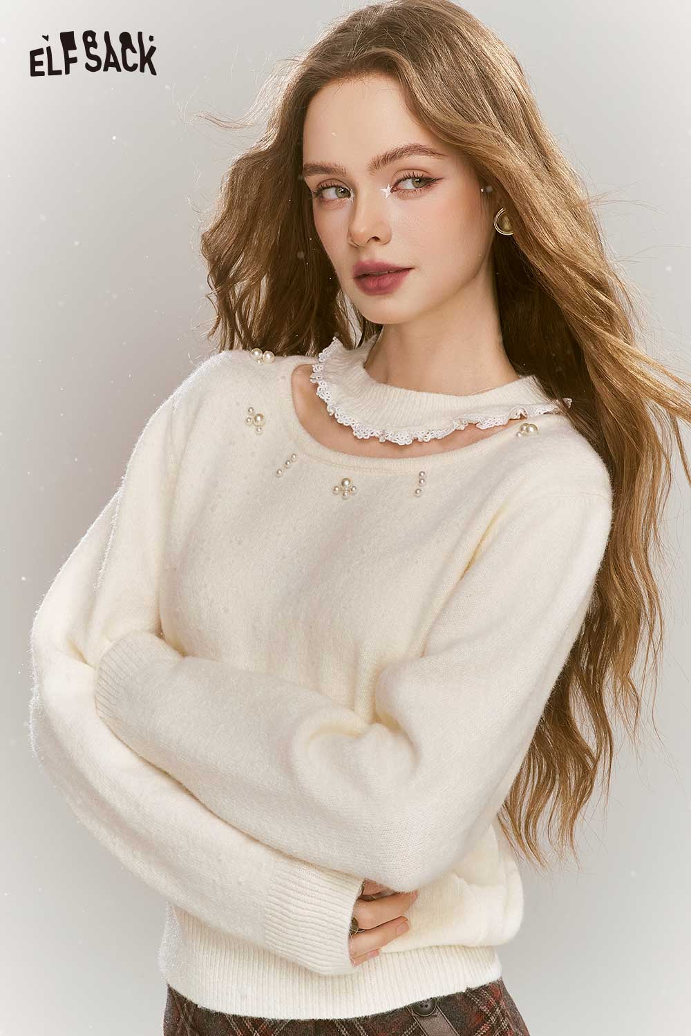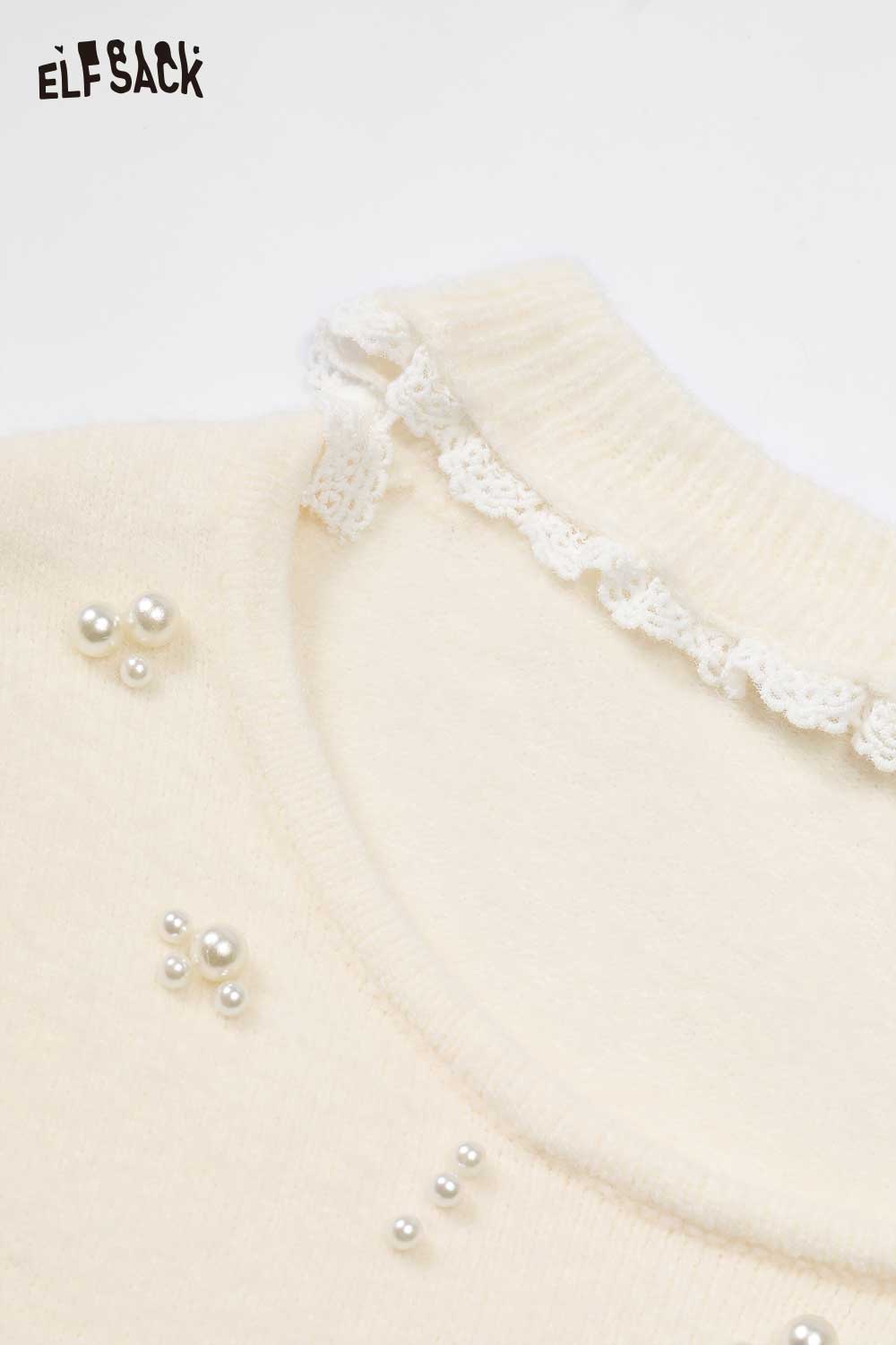 Sweet White Pearl Embellished Sweater